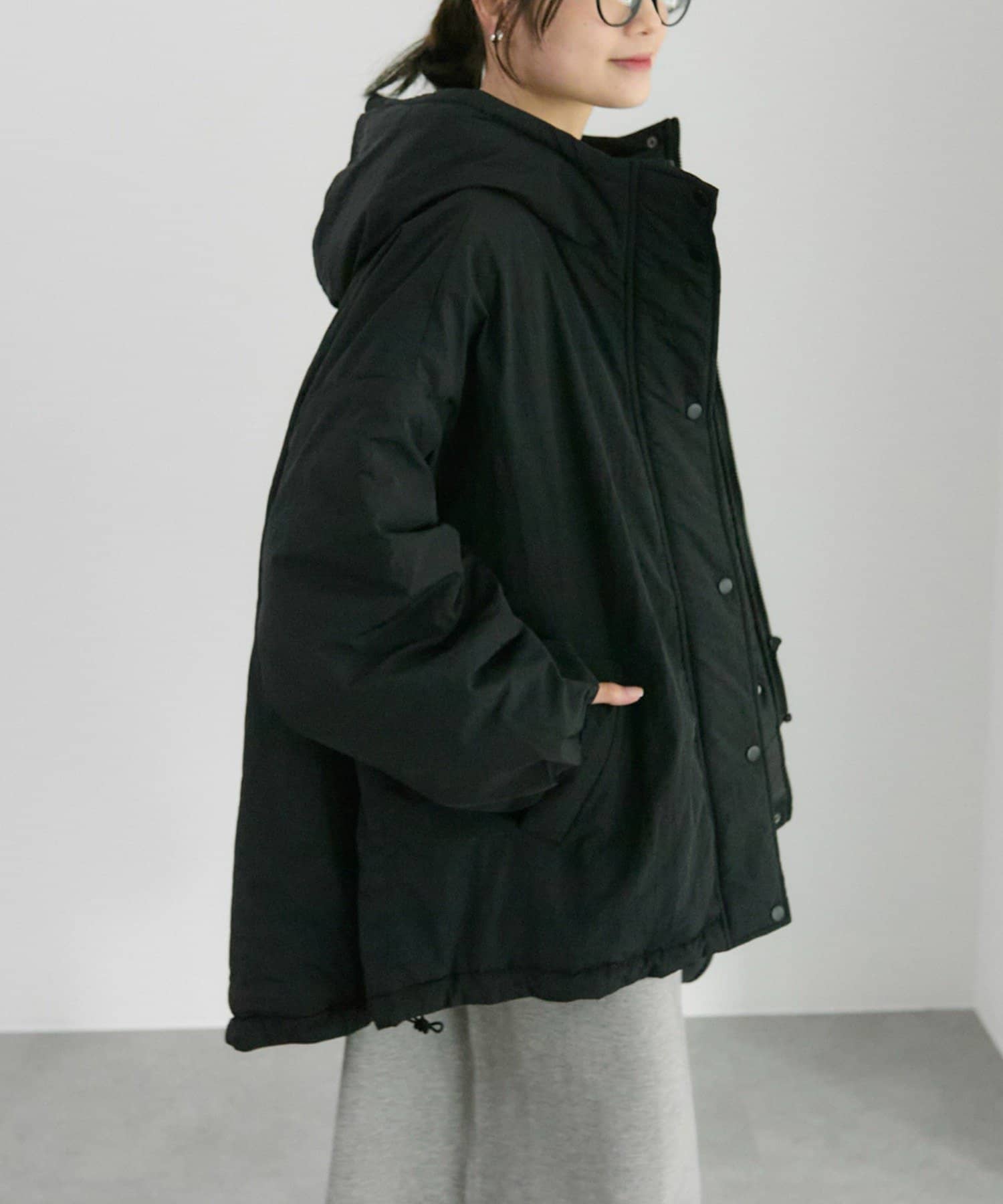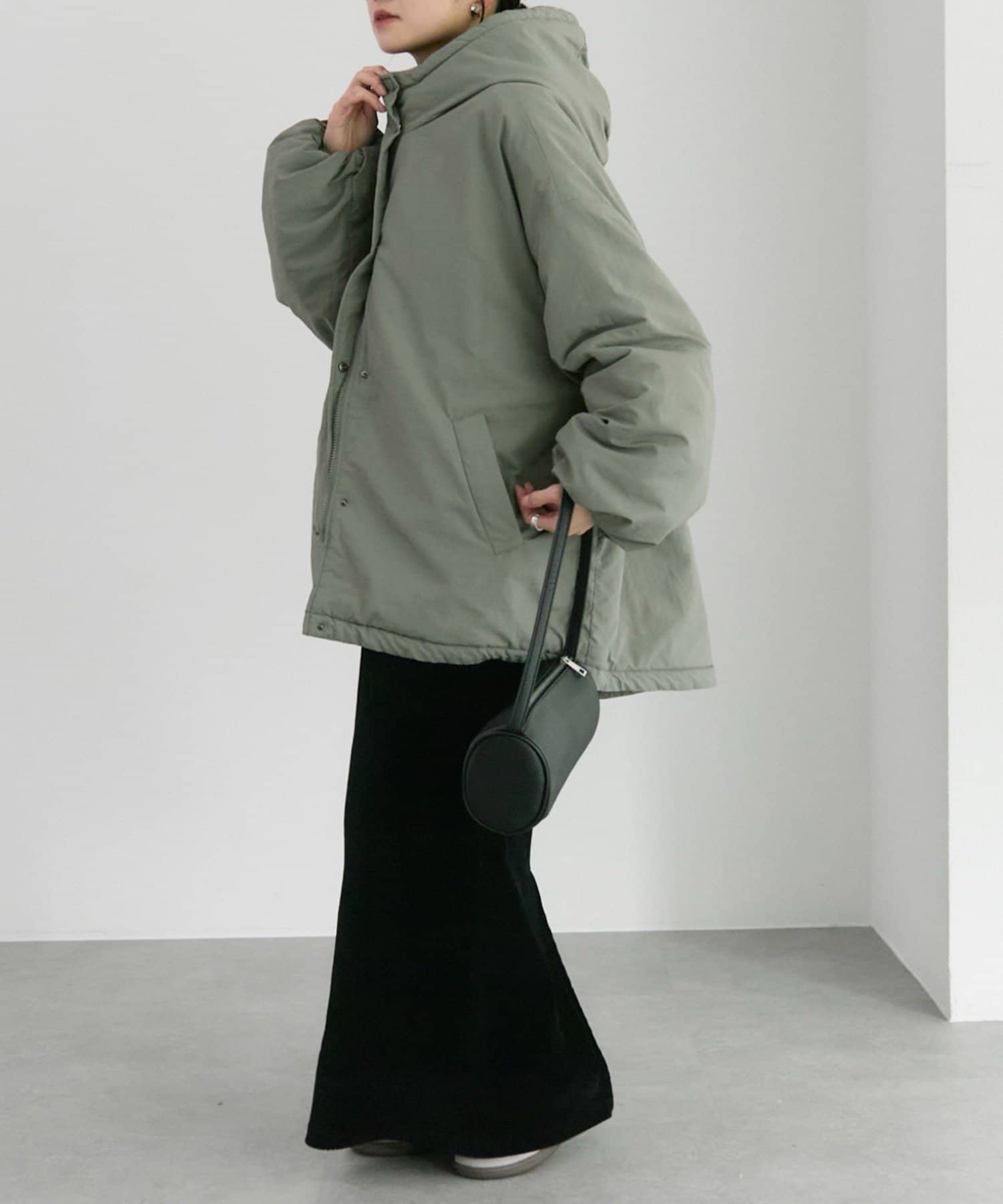 ステンカラー+フードで首元をしっかりカバーでき、マフラー要らずで過ごせます。