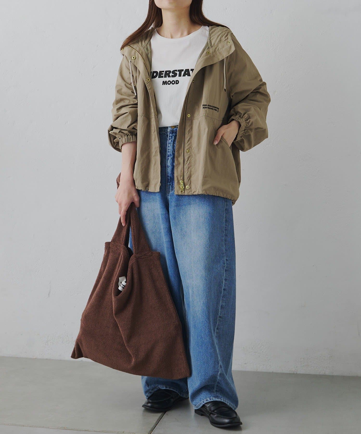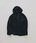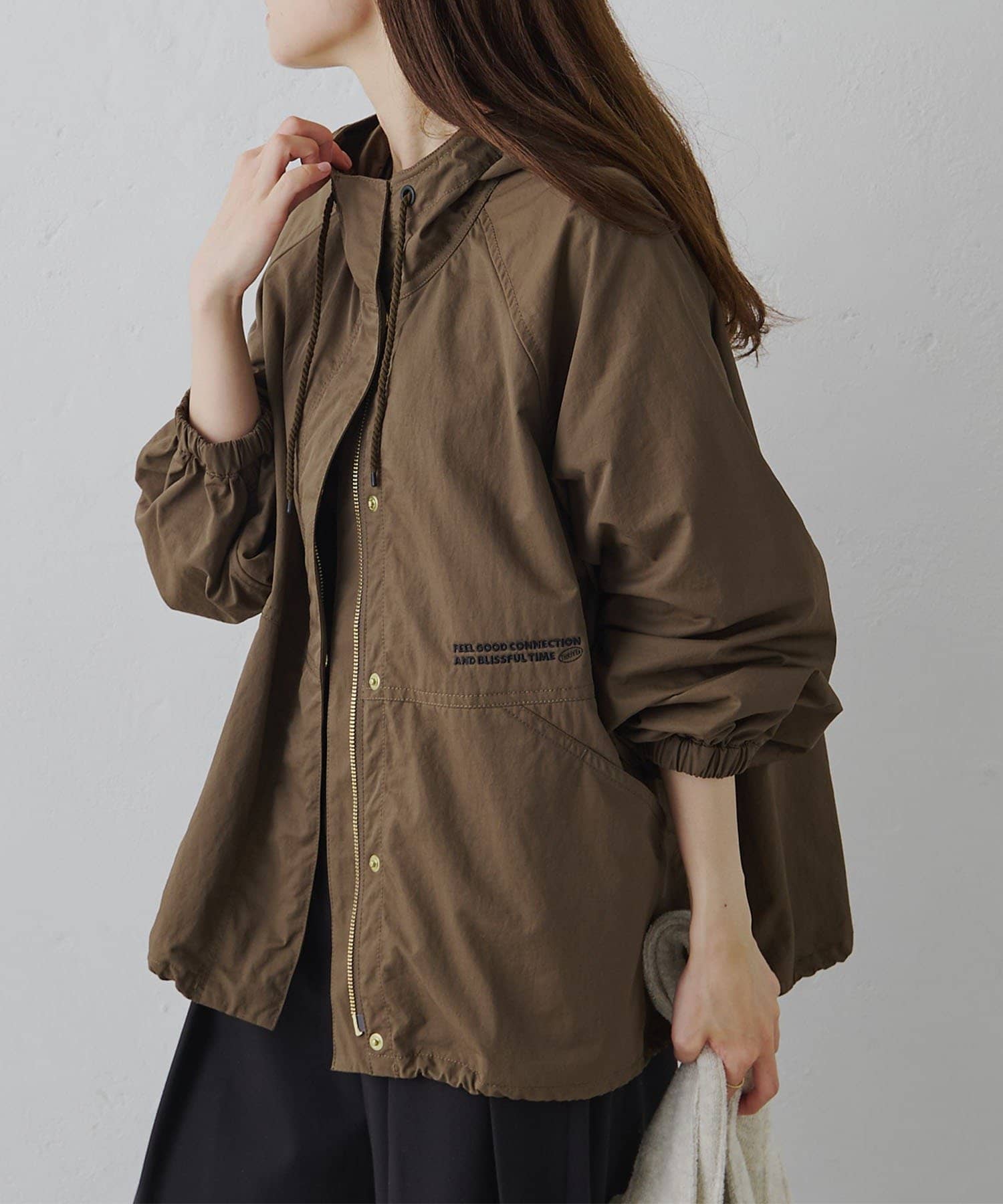 右脇に入った刺繍やフードから伸びるロープ編みの紐が程よくアクセントを効かせています。