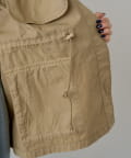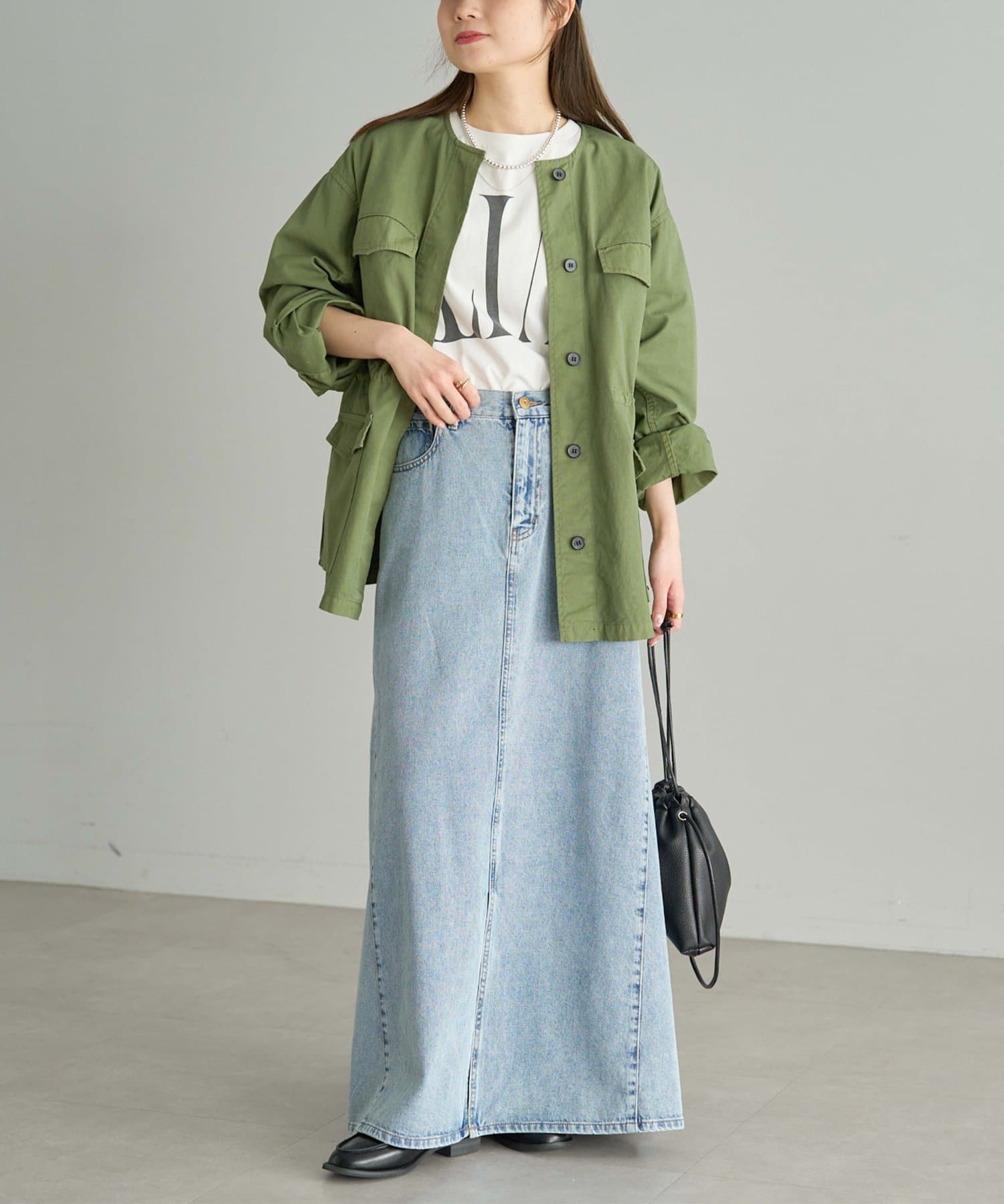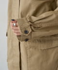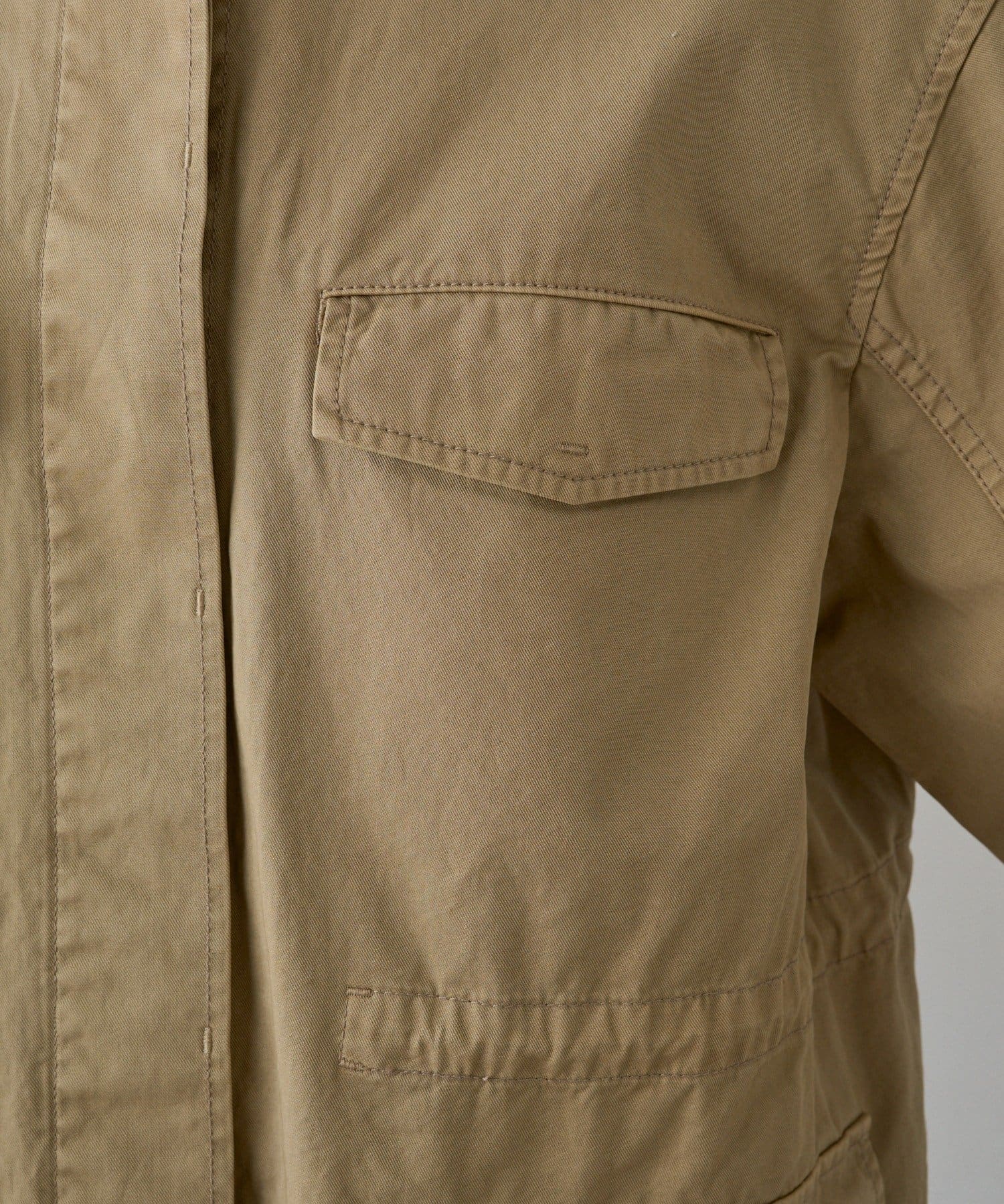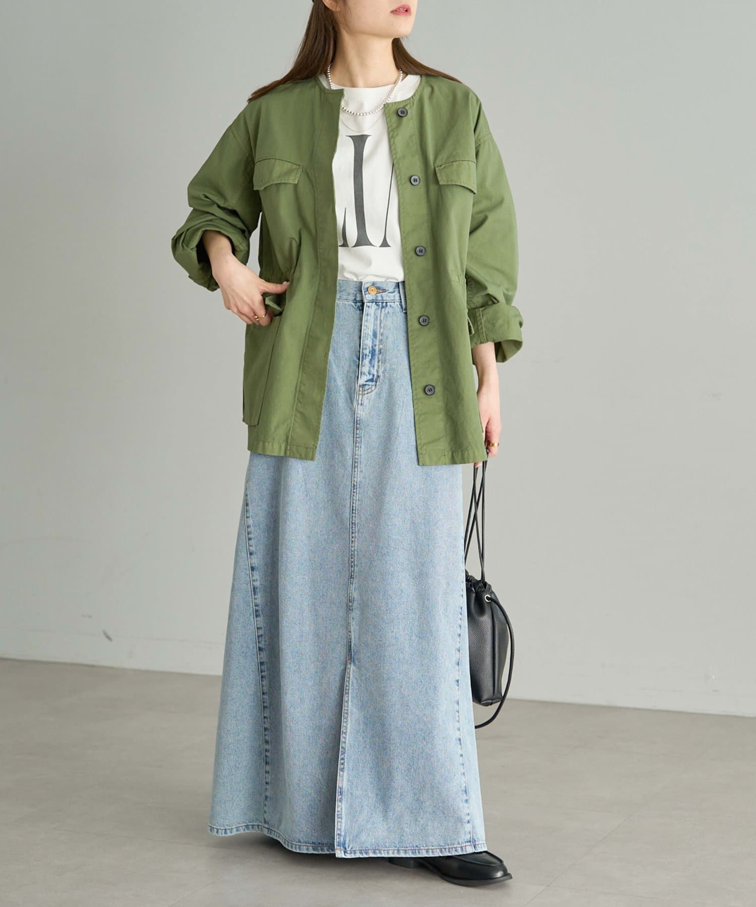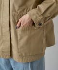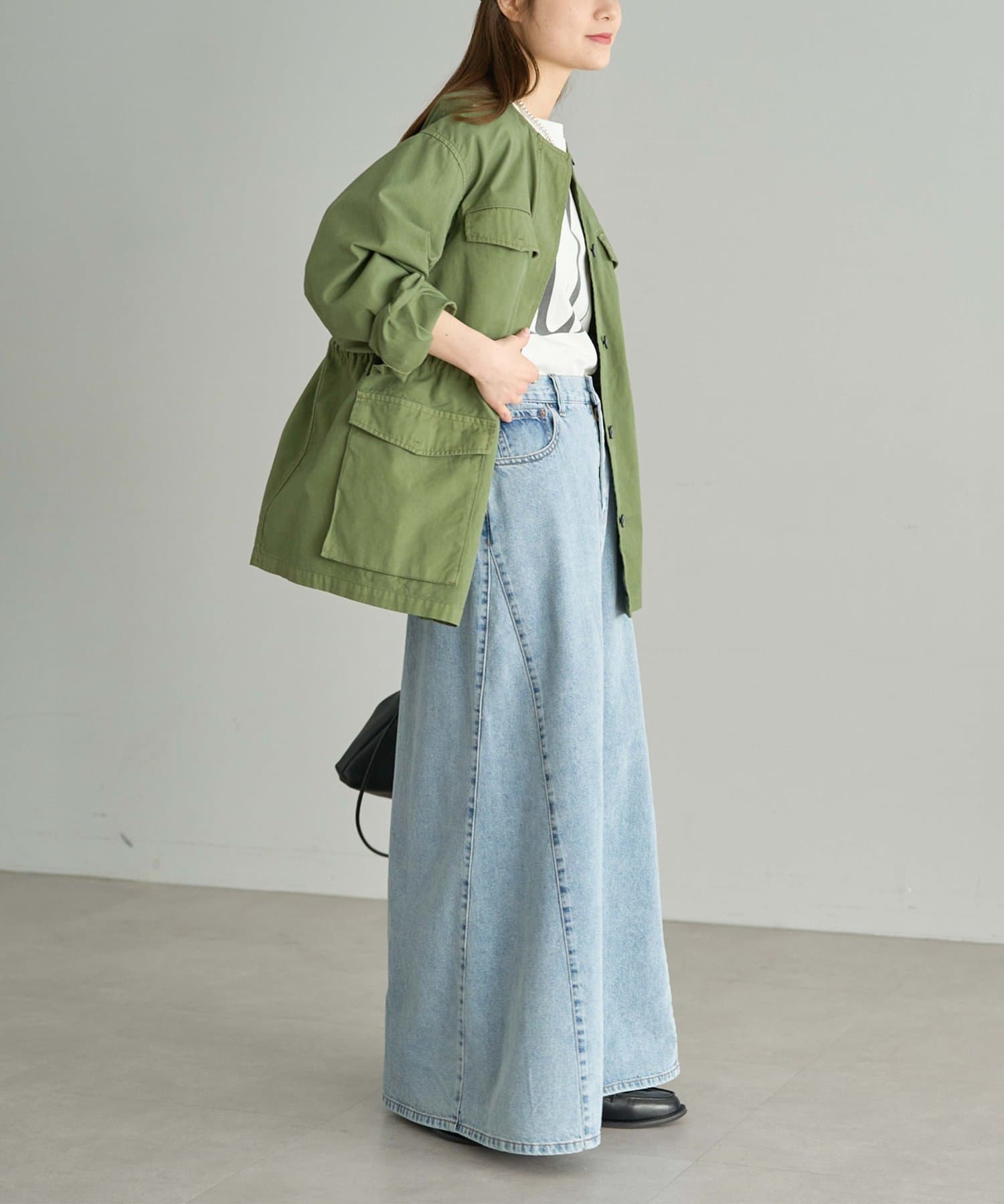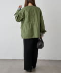 ノーカラーで、堅い印象が和らぎ女性らしいミリタリージャケット。