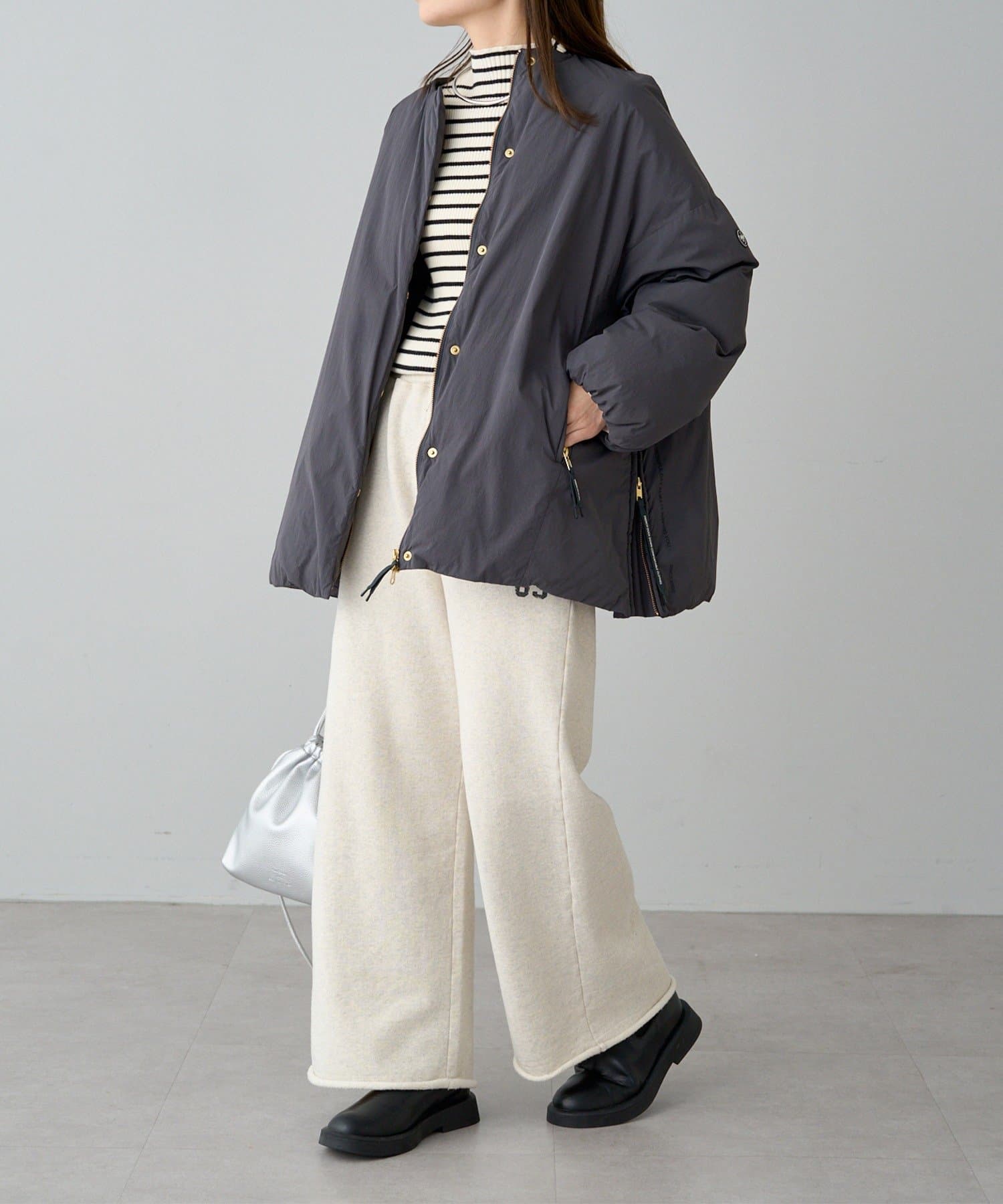 素材感:マットでカジュアルな印象。裏地のおかげで着脱しやすいです。