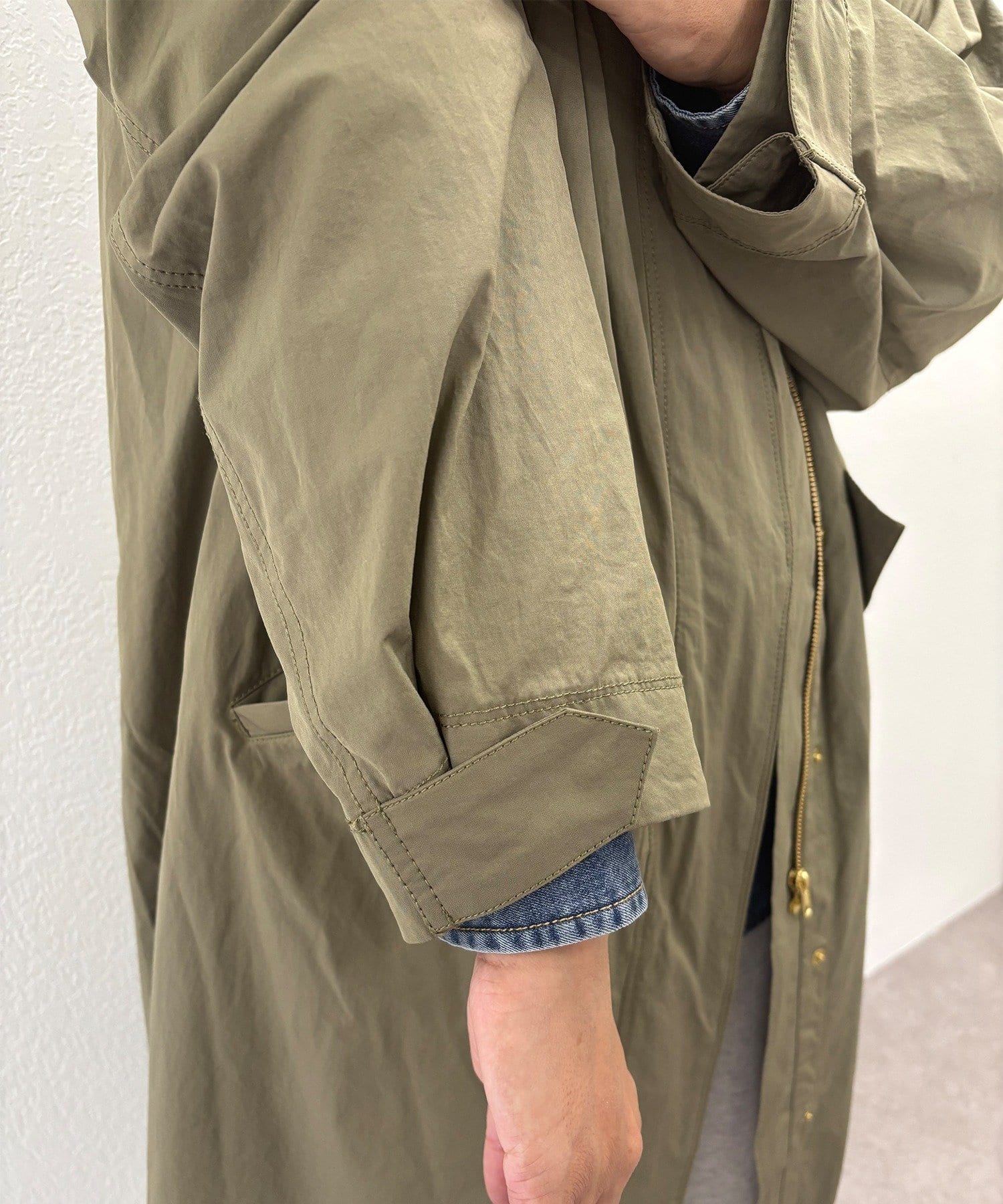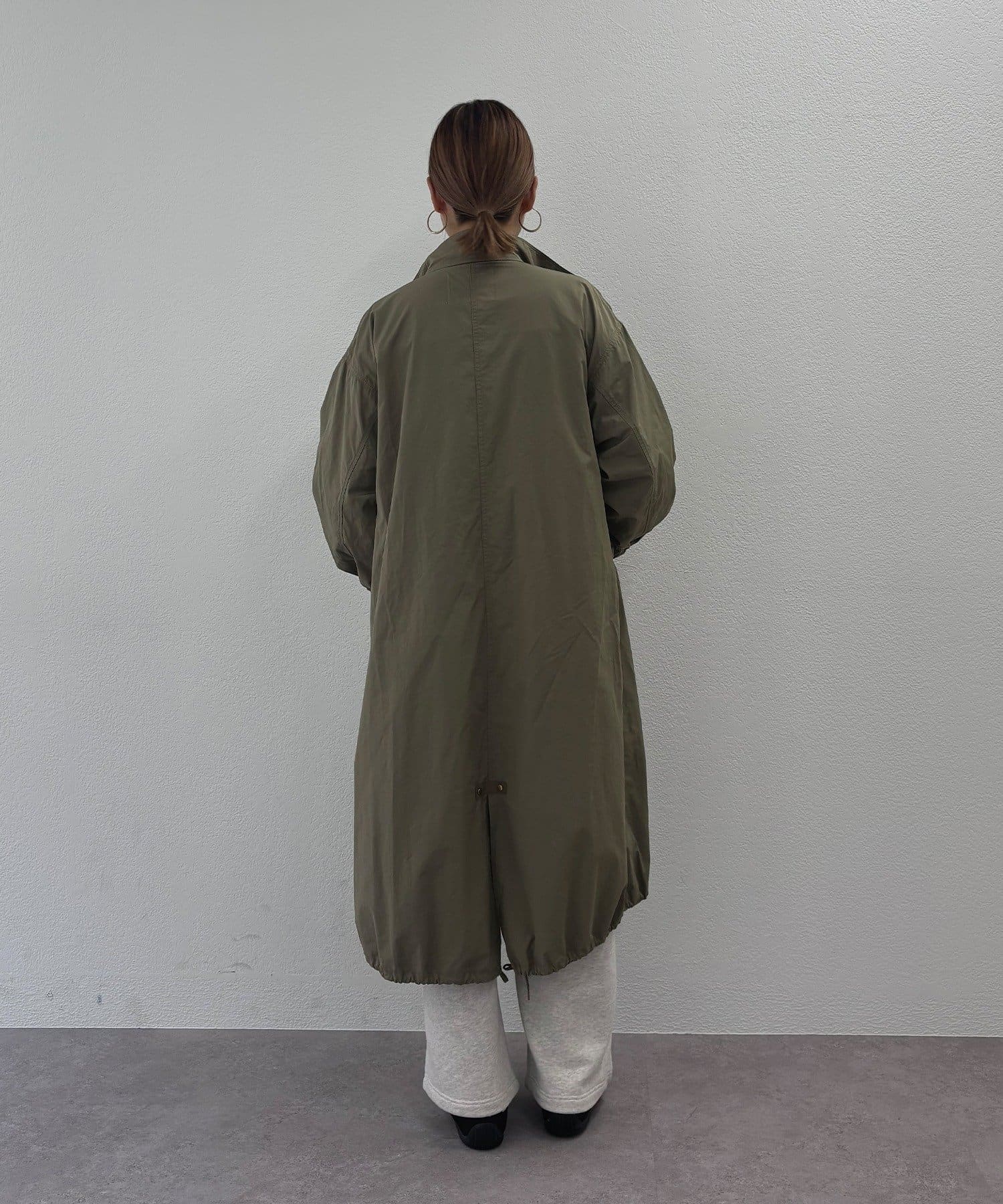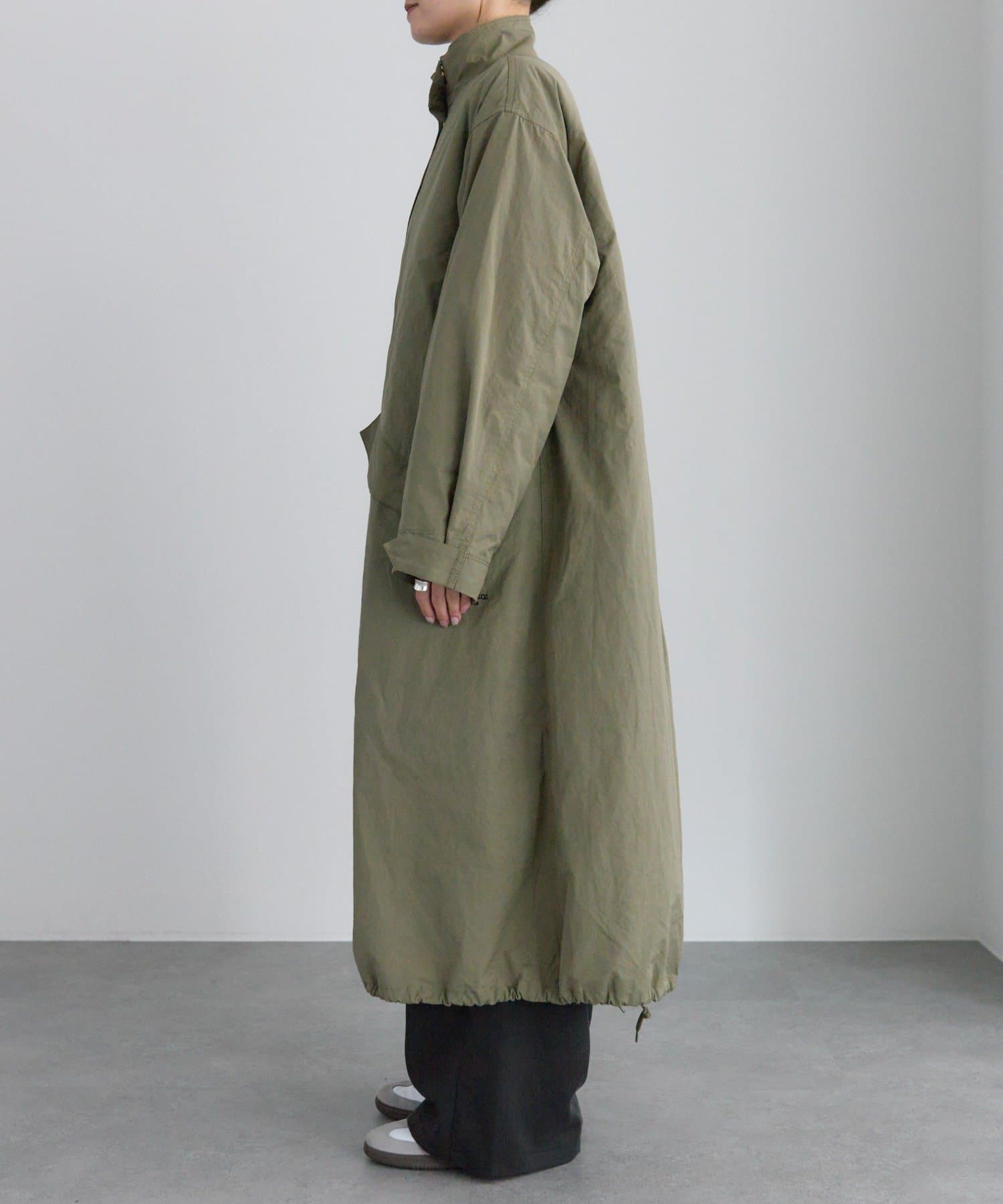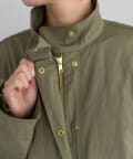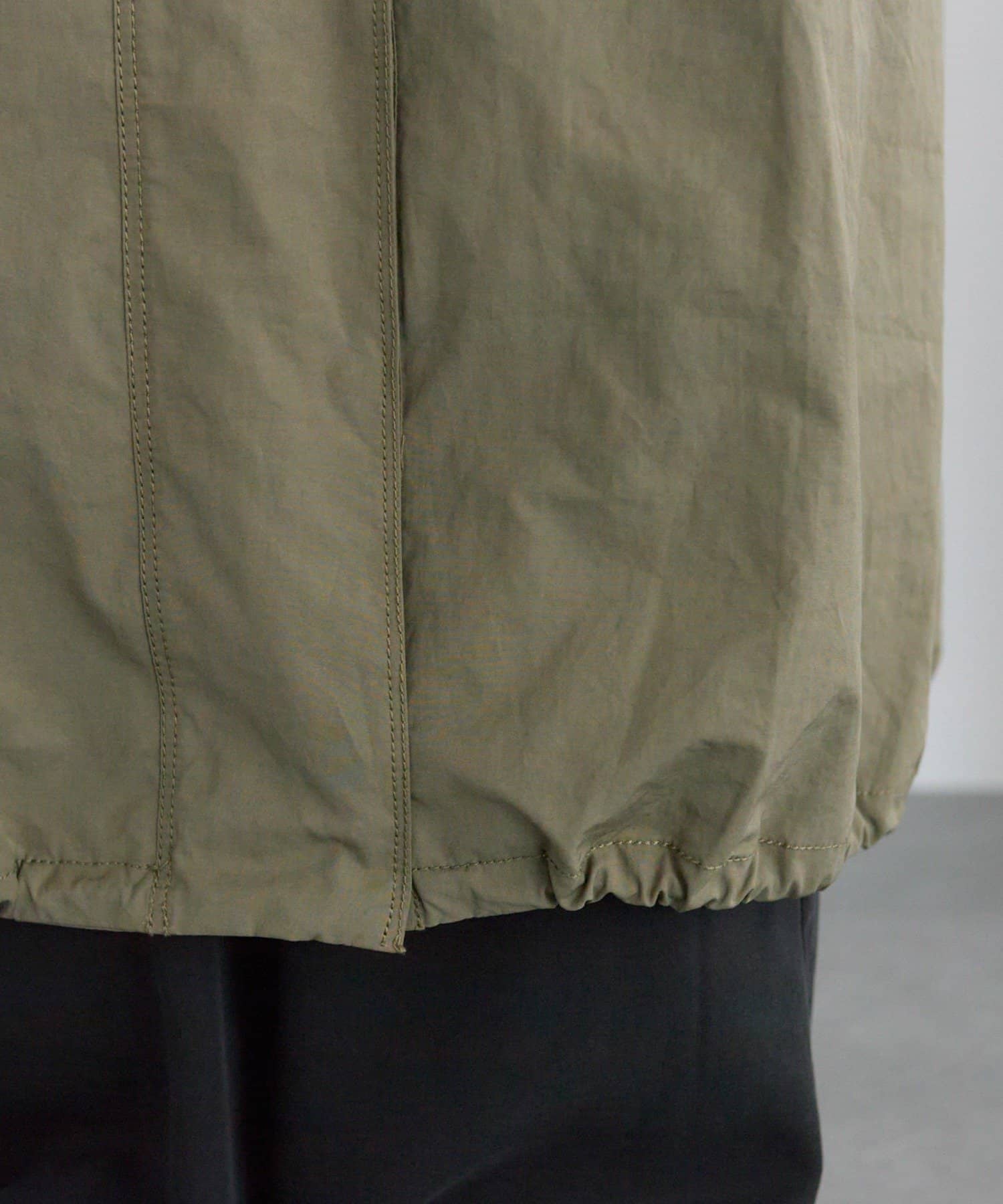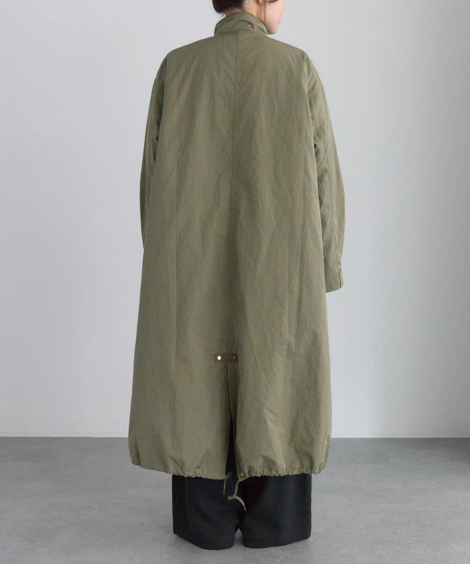 フロントは風を通しにくい比翼仕立て+ジップ仕様、後ろの裾にはフィッシュテールデザインを施しこなれ感を演出。