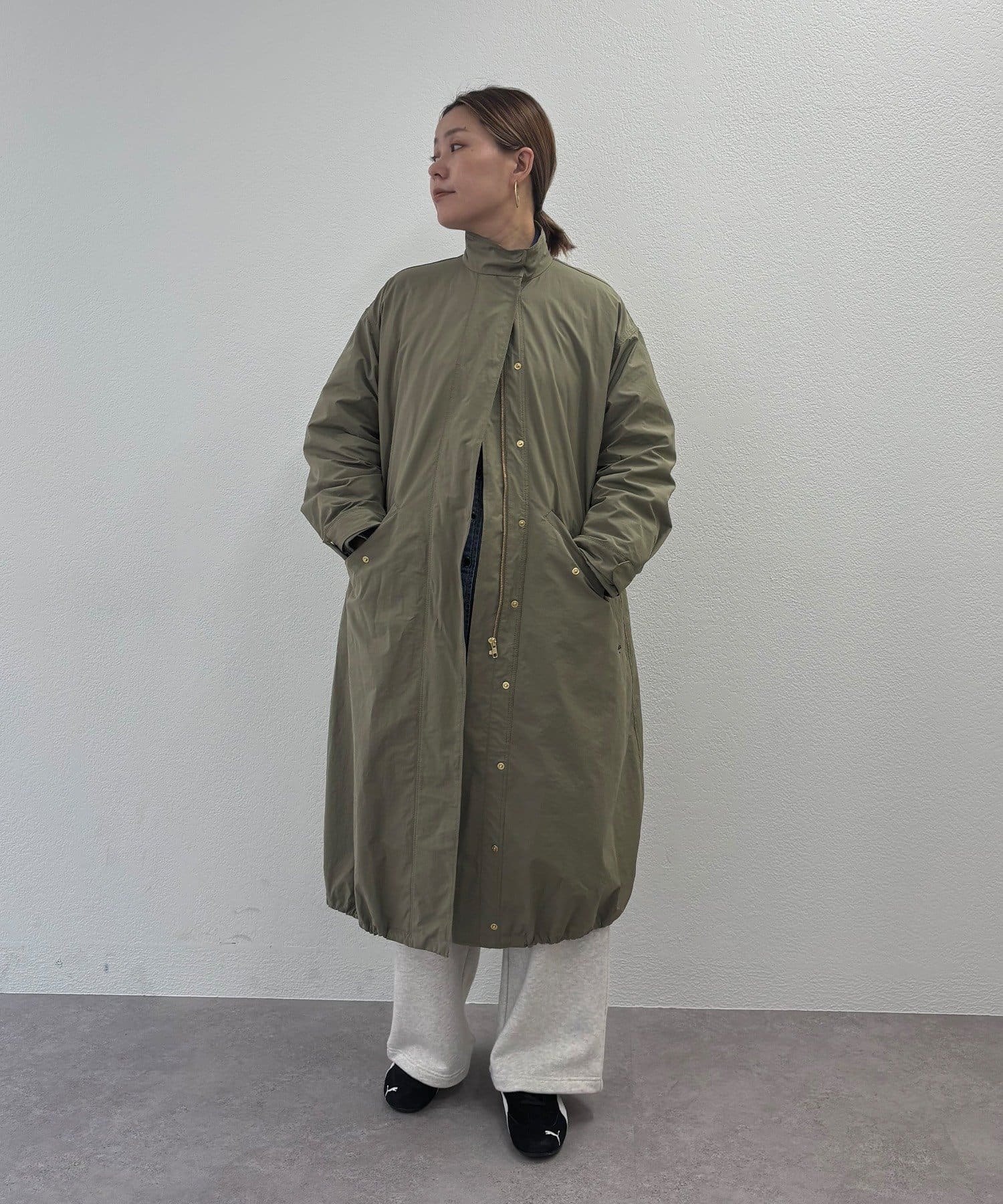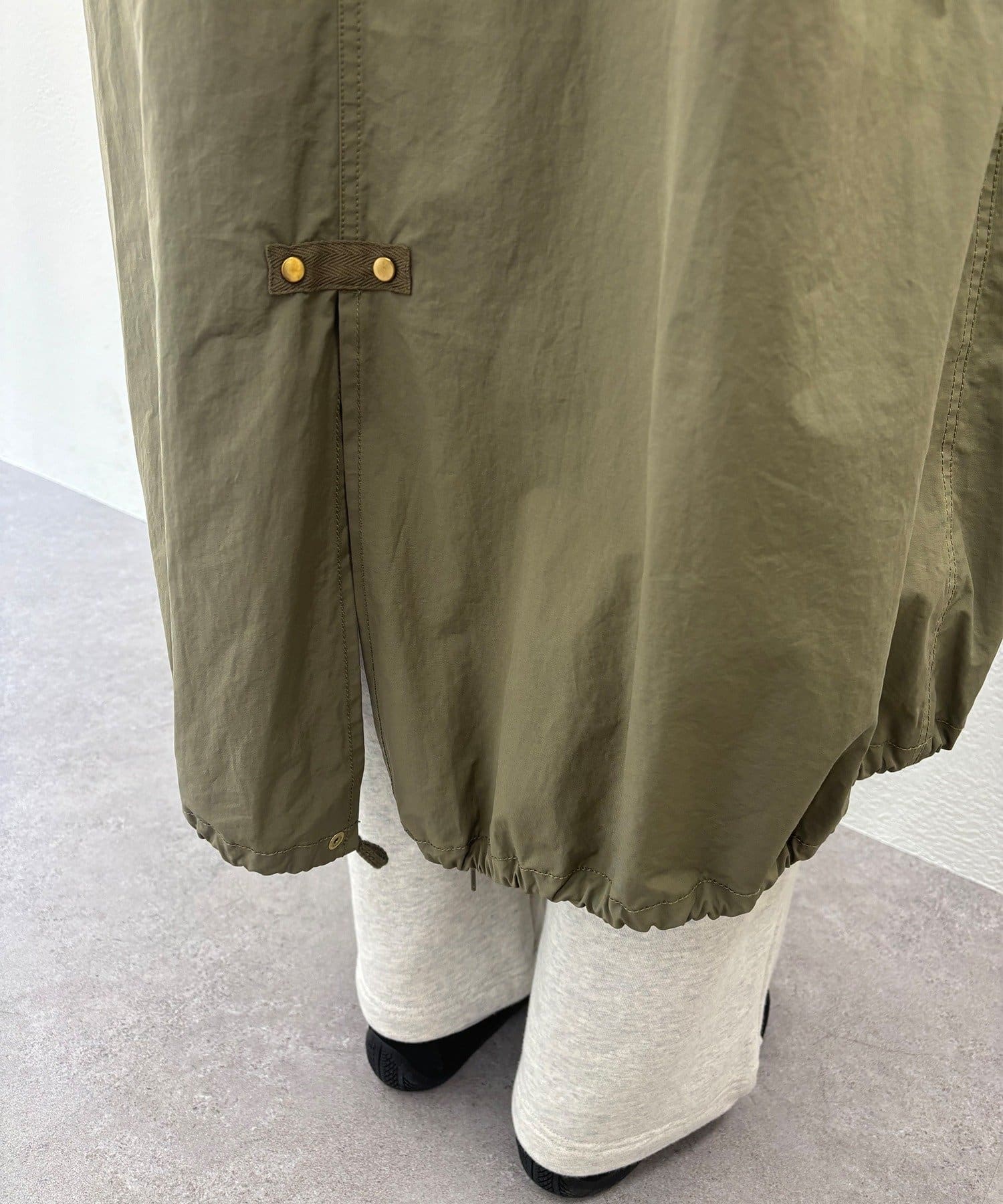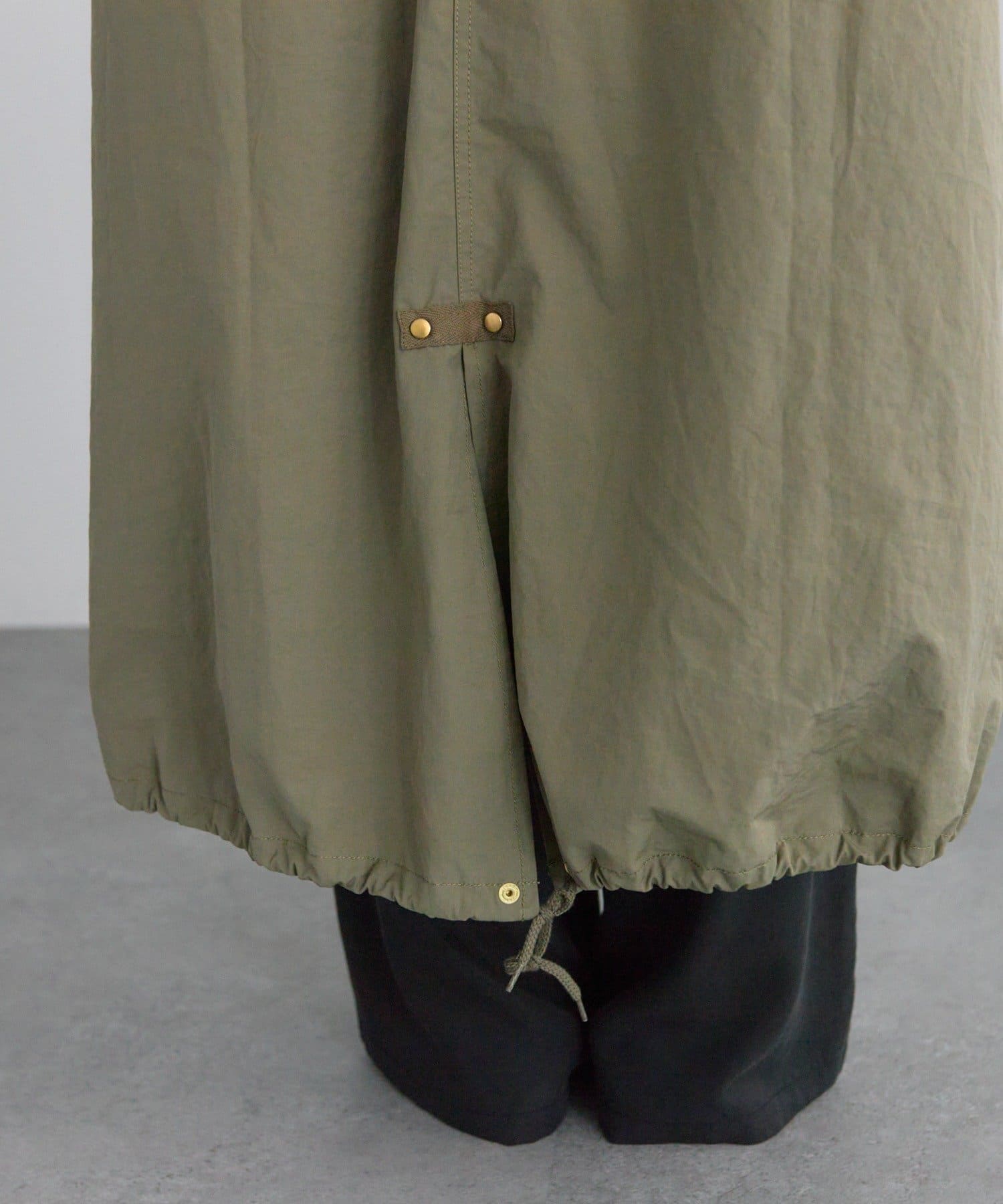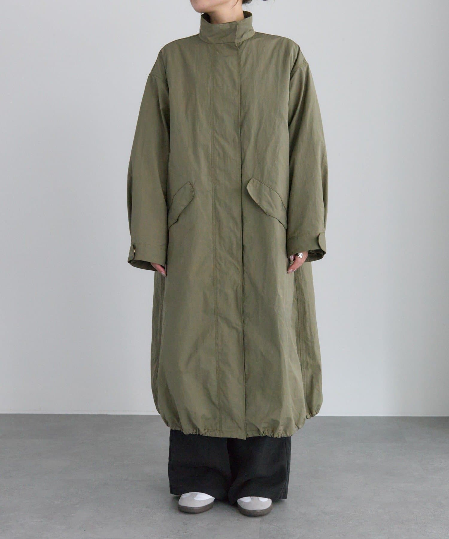 ウエスト部分と裾にドローコードを配し、シルエットを自在に変えられます。