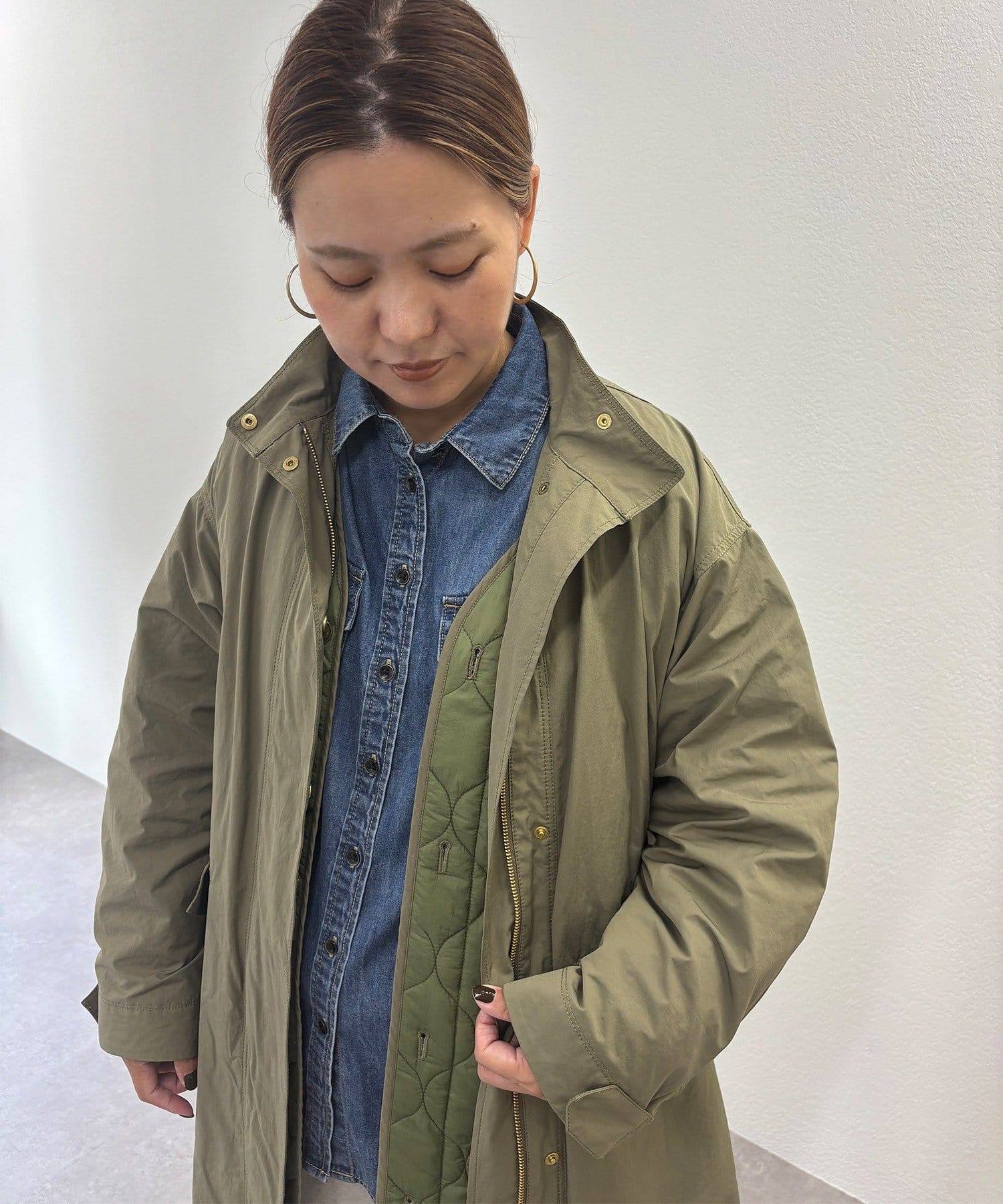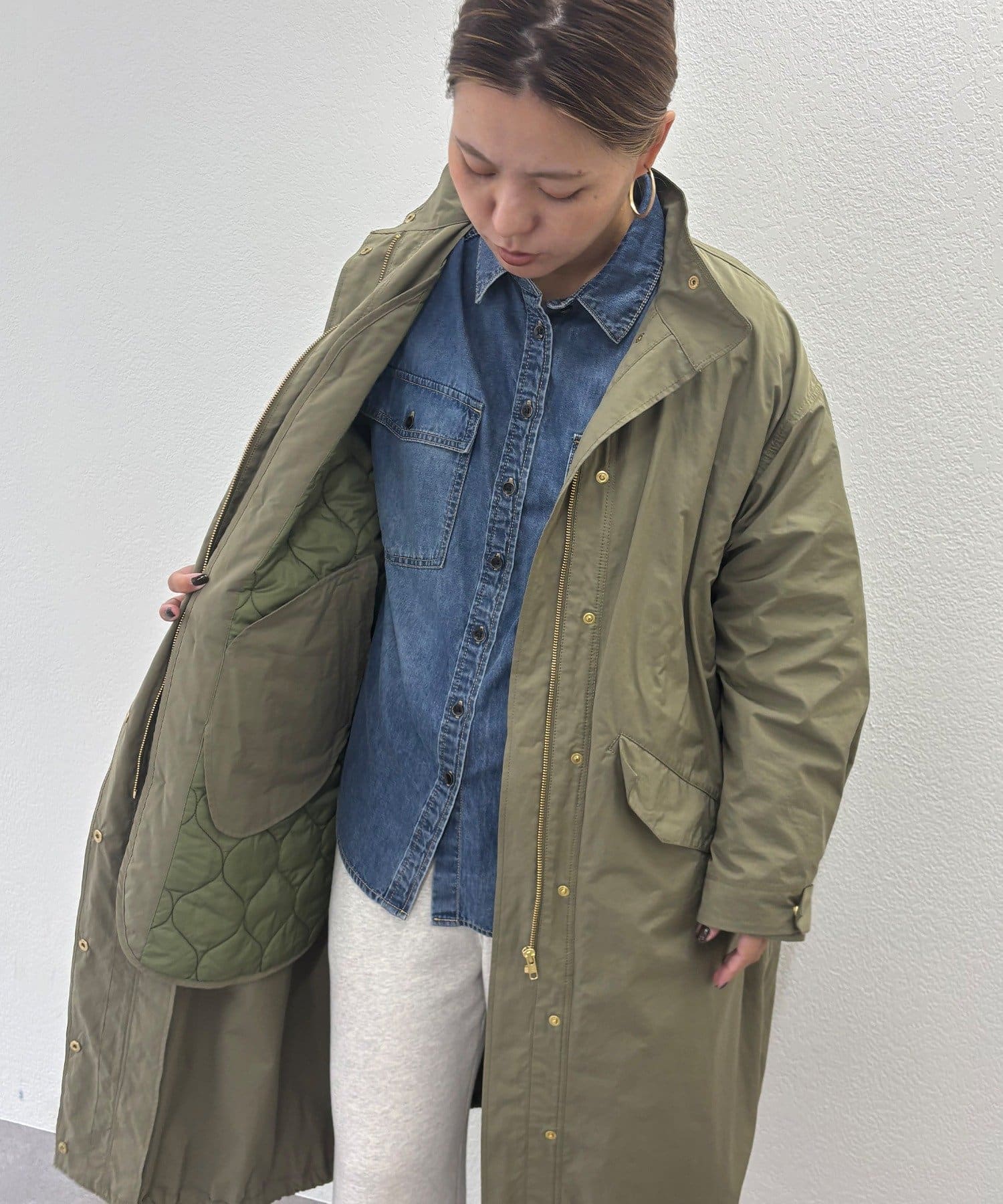薄手のミリタリーコートとキルティングコートがセットになったアイテム。