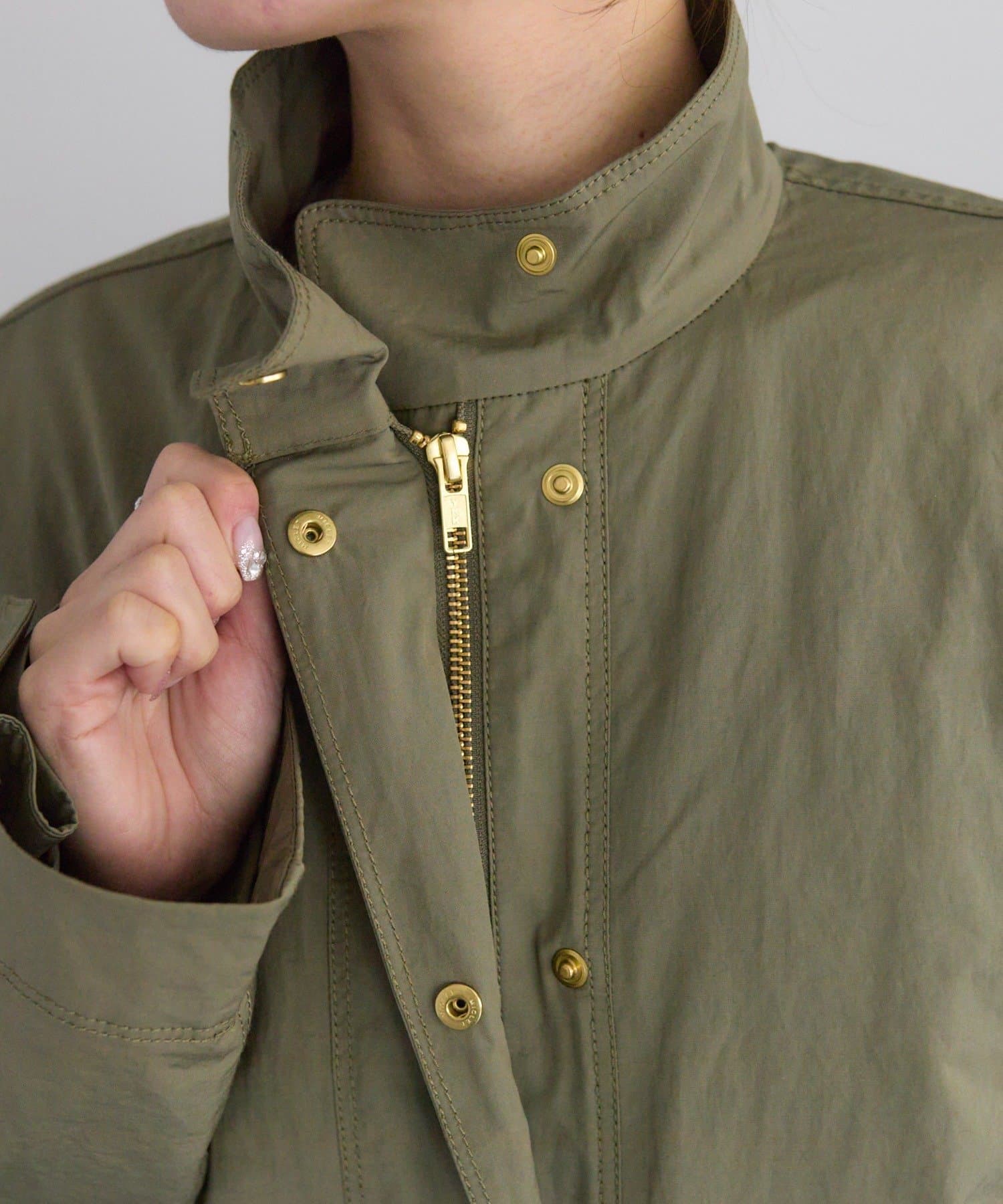 スタンドカラーで洗練された印象が漂いタウンユースに溶け込みます。