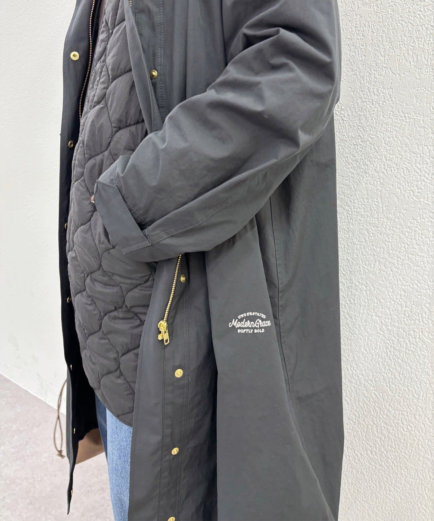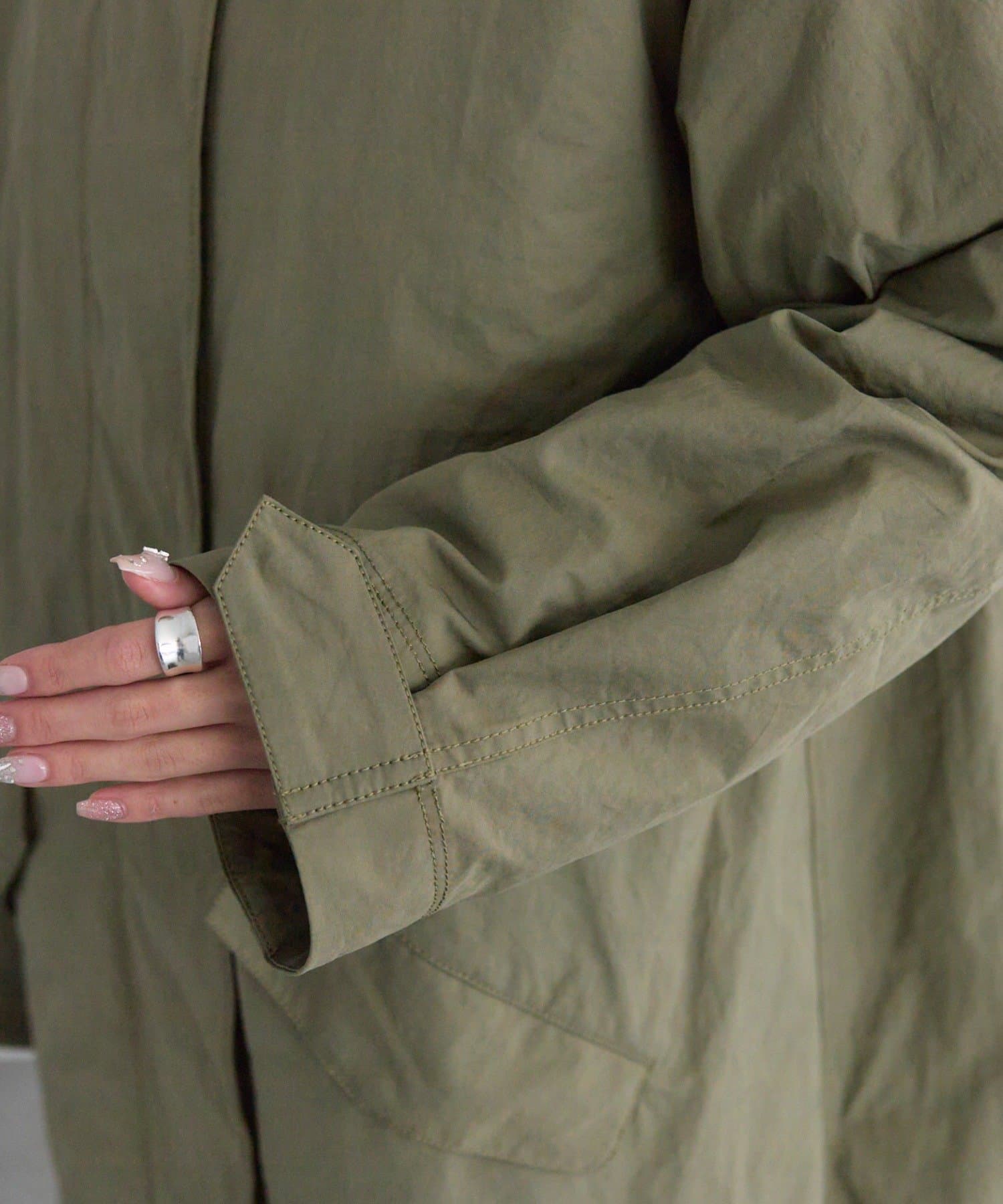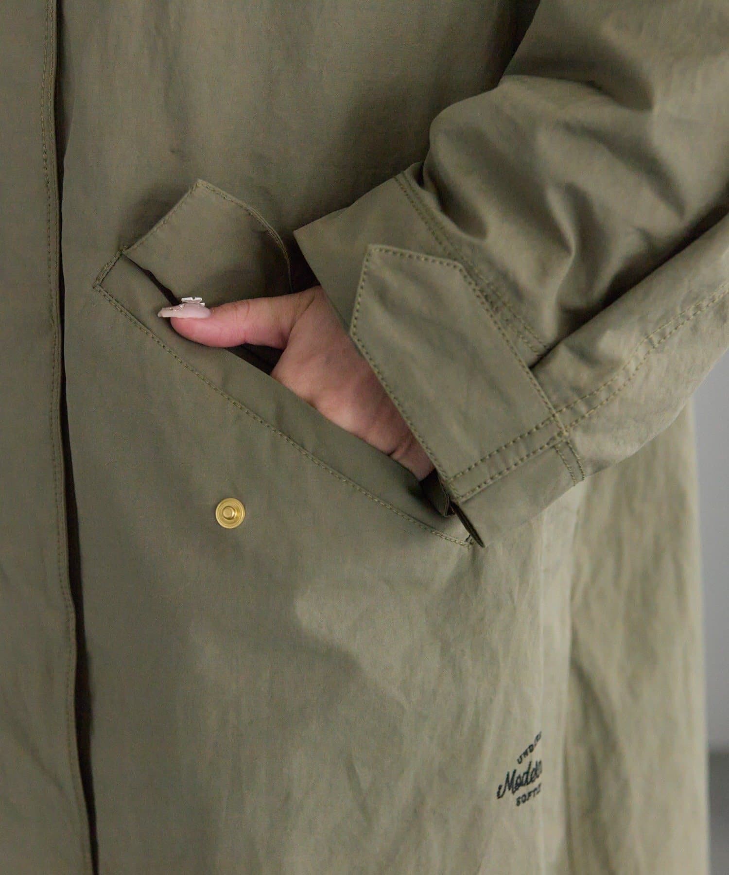 単体使いもでき、コート同士をフロント・袖・首後ろのボタンでドッキングすればモッズコートになるマルチウェイ仕様。