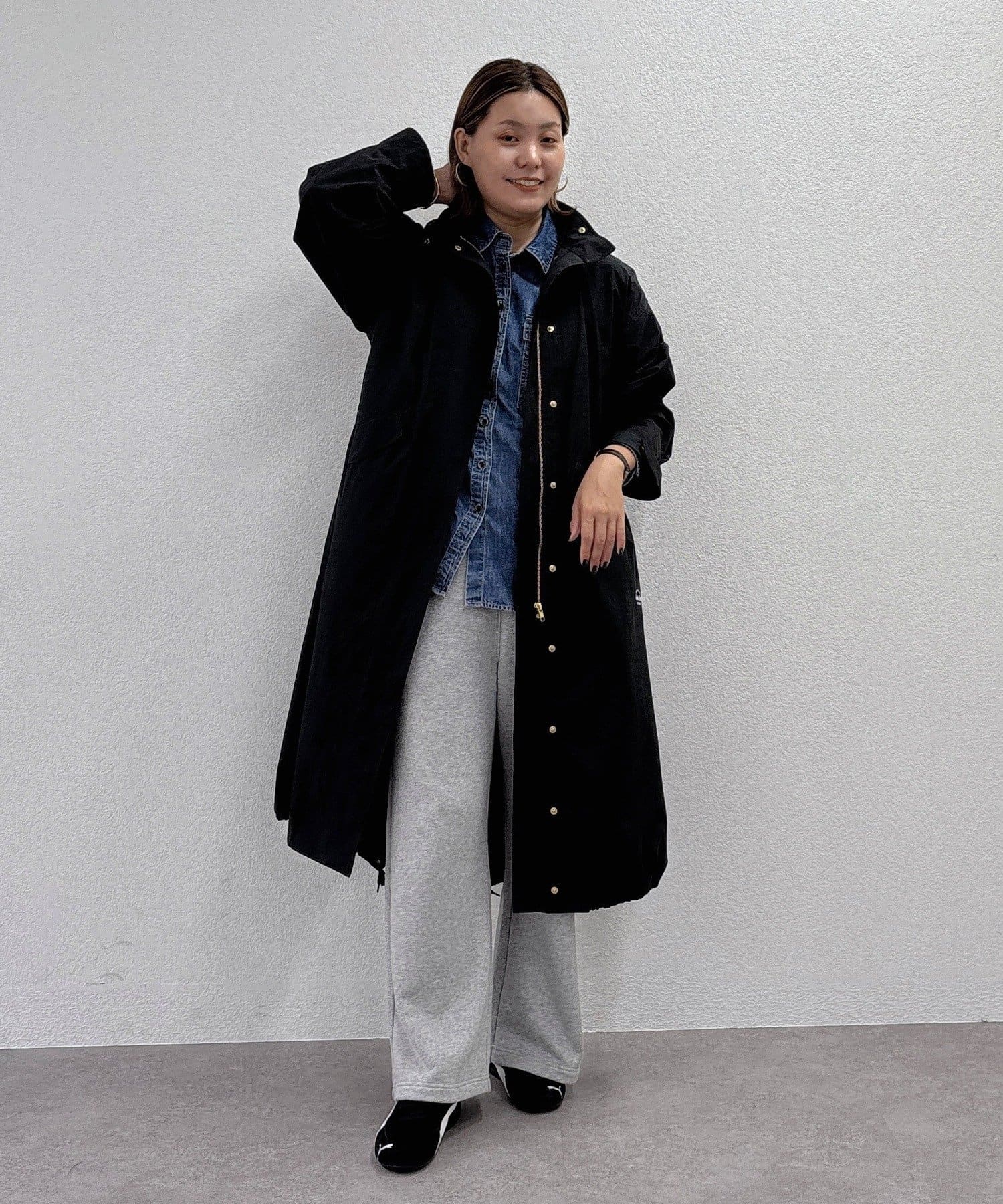 着用感:153cmで全身をすっぽりと覆う着丈。