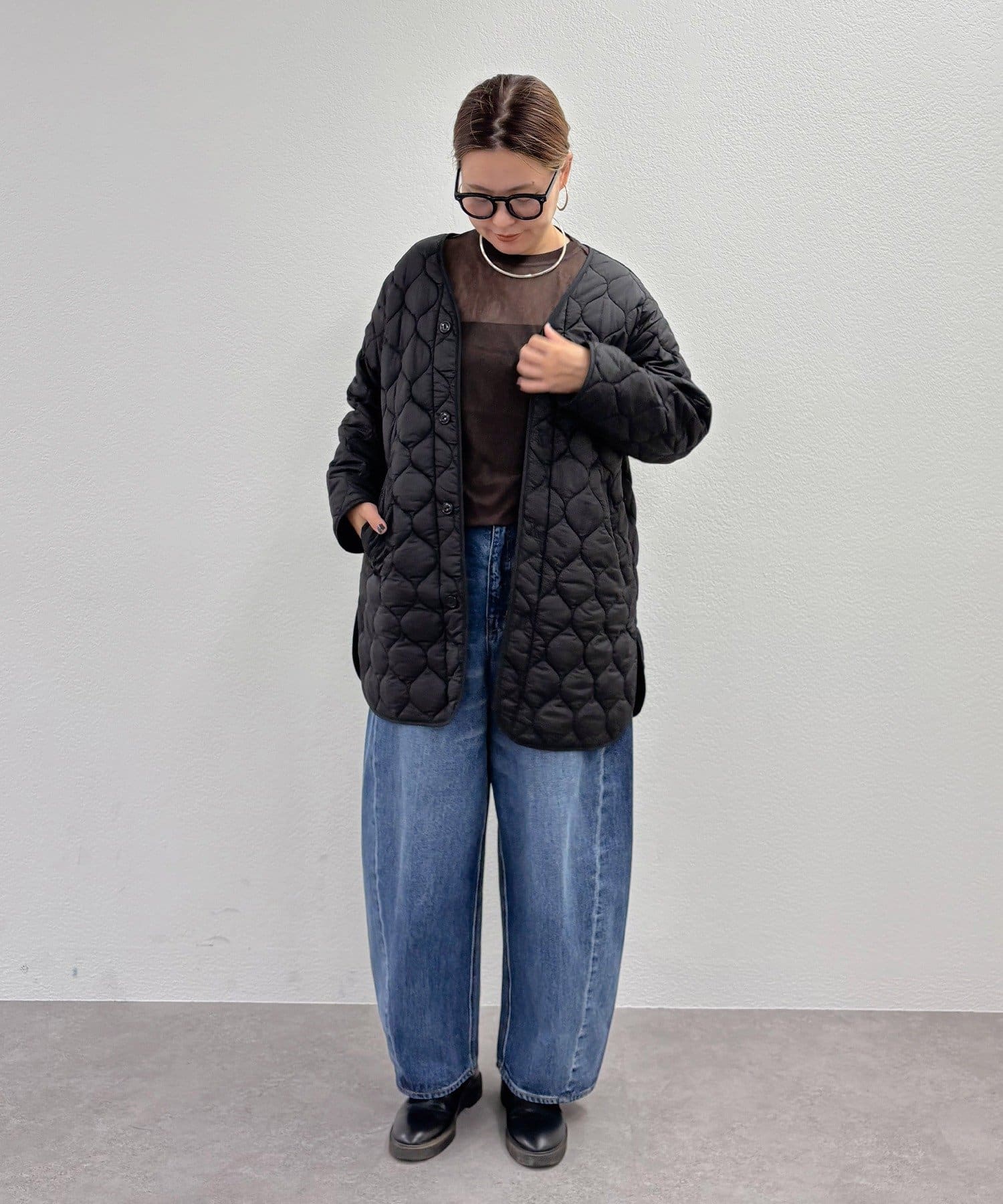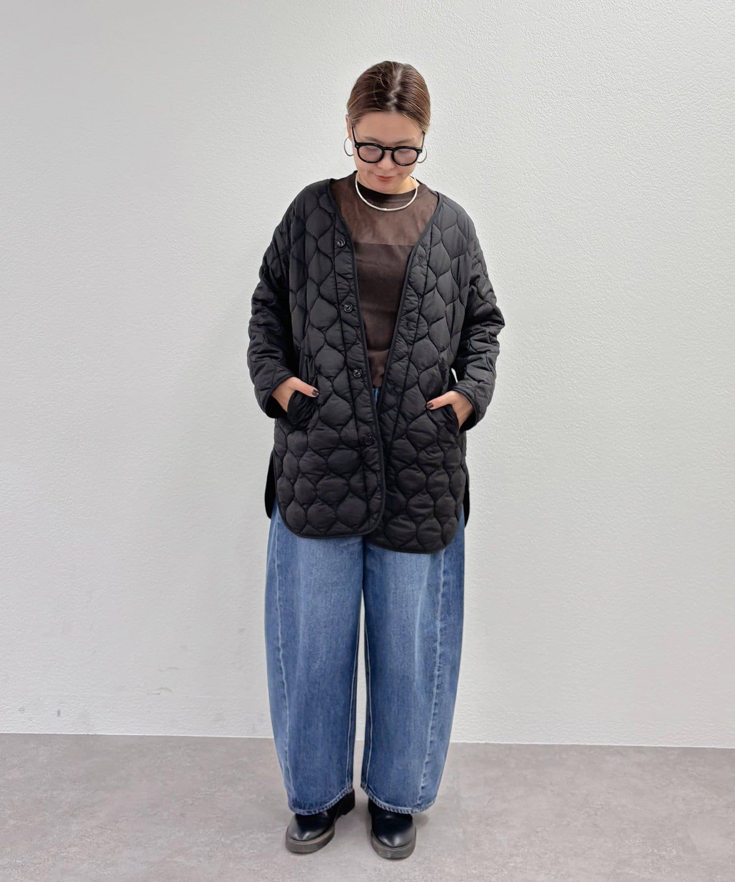 キルティングの中綿が程よい分量なので着ぶくれて見えず、