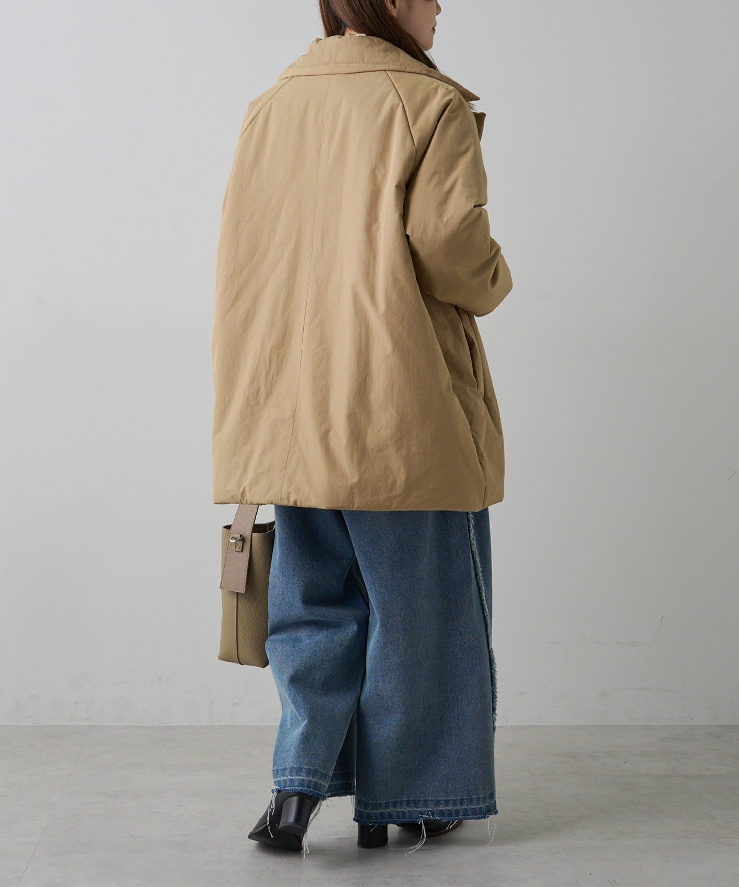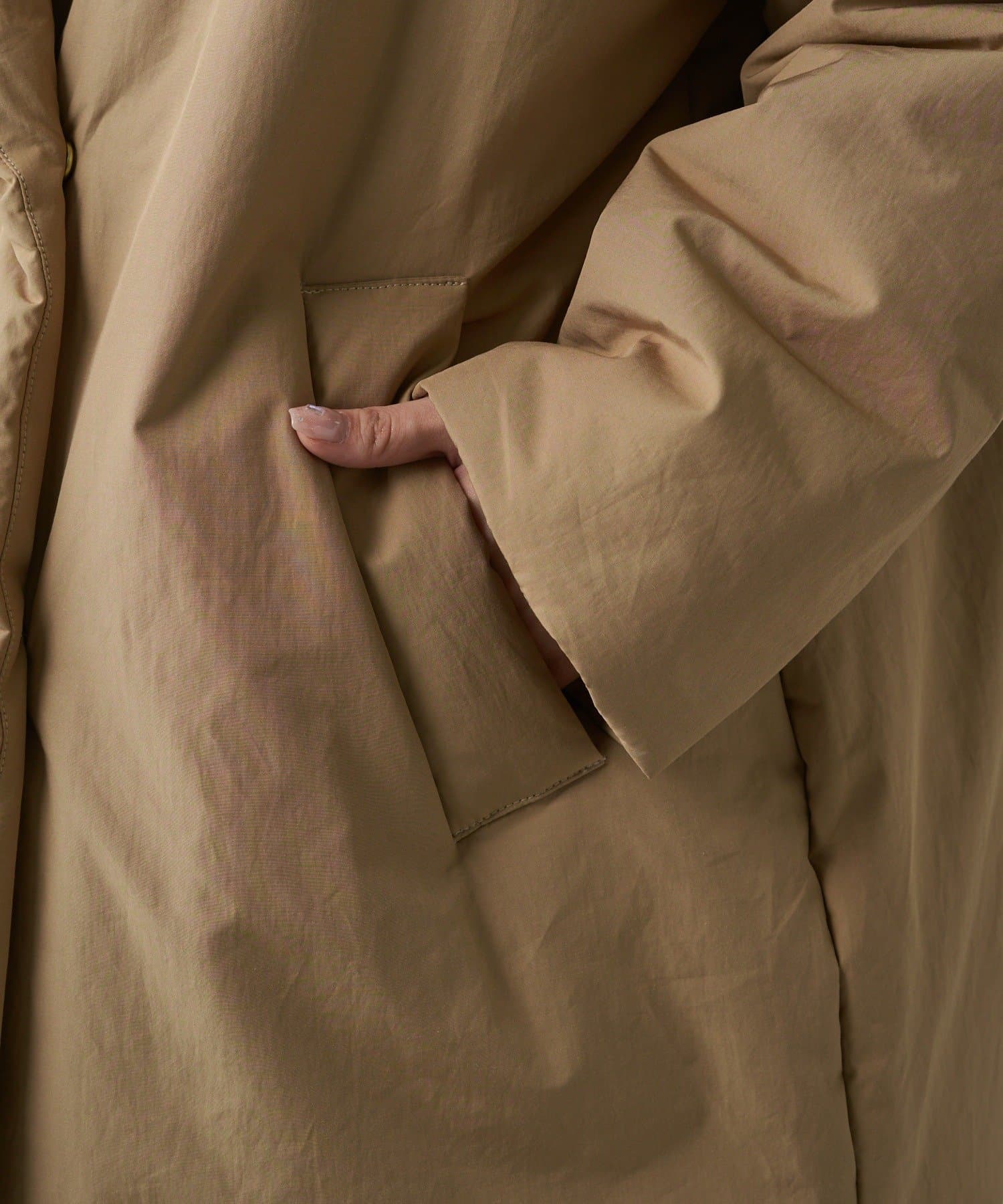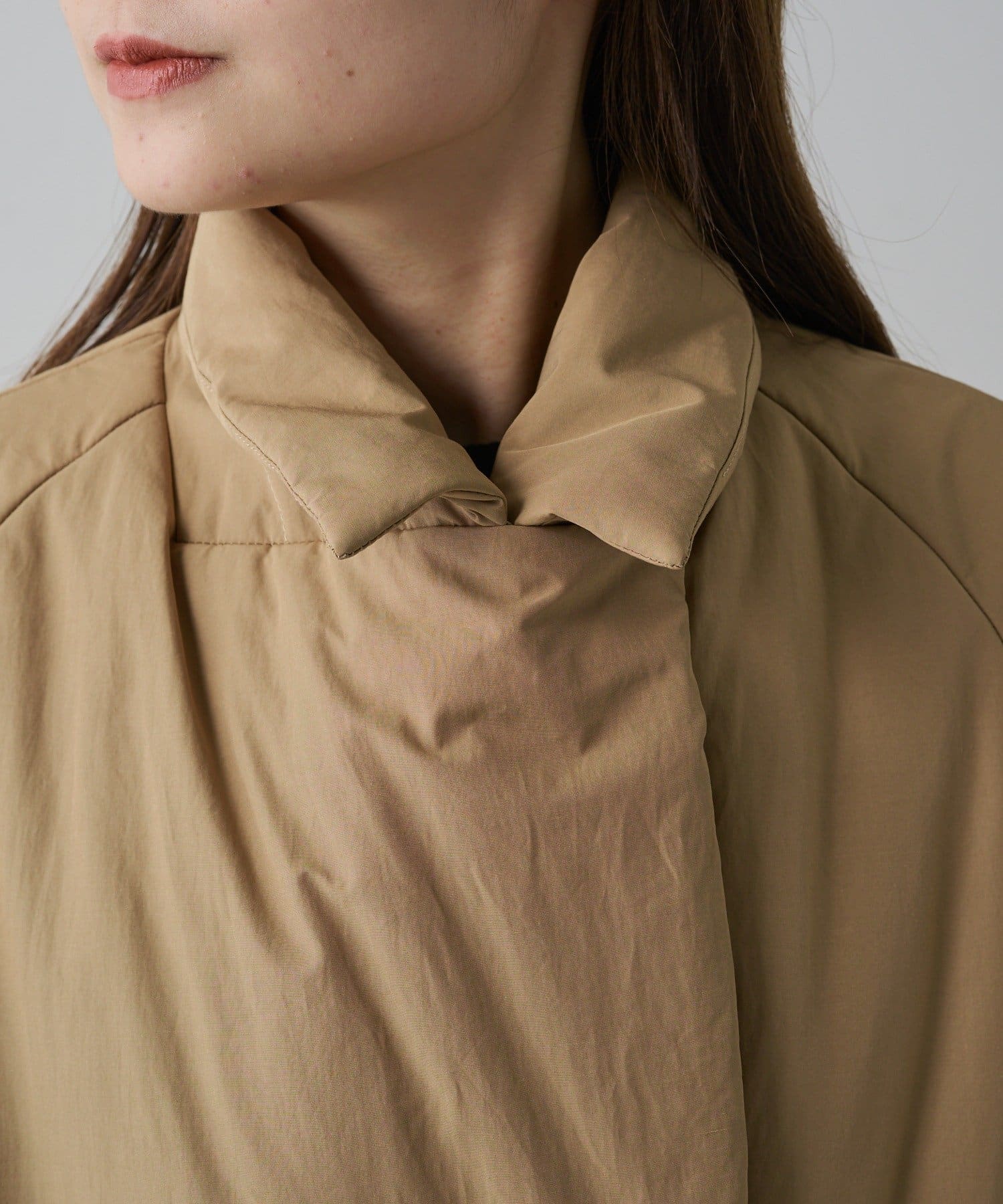 ビックカラーで小顔効果を発揮。首元まで隠れるステンカラーデザインでの着用も可能です。