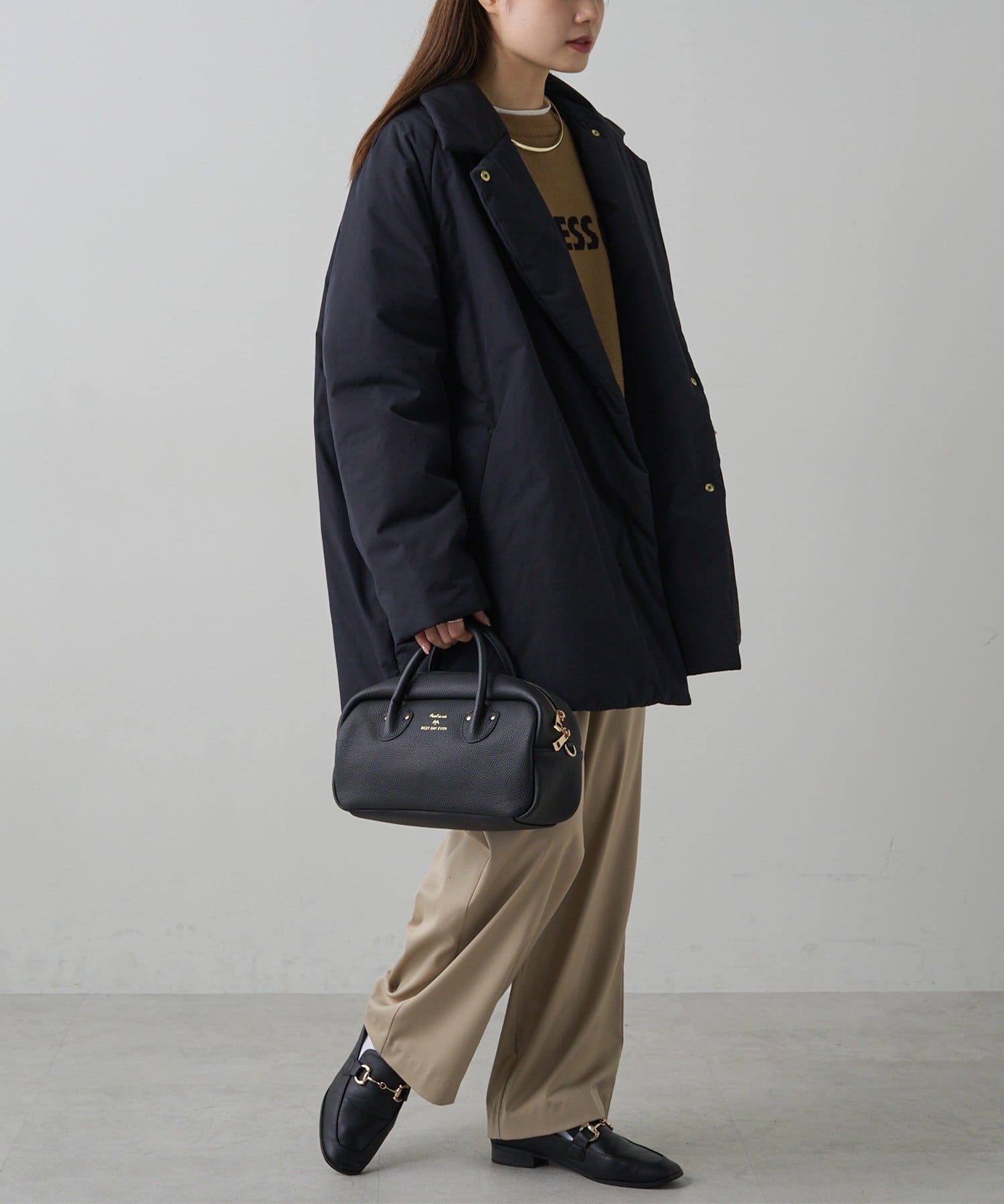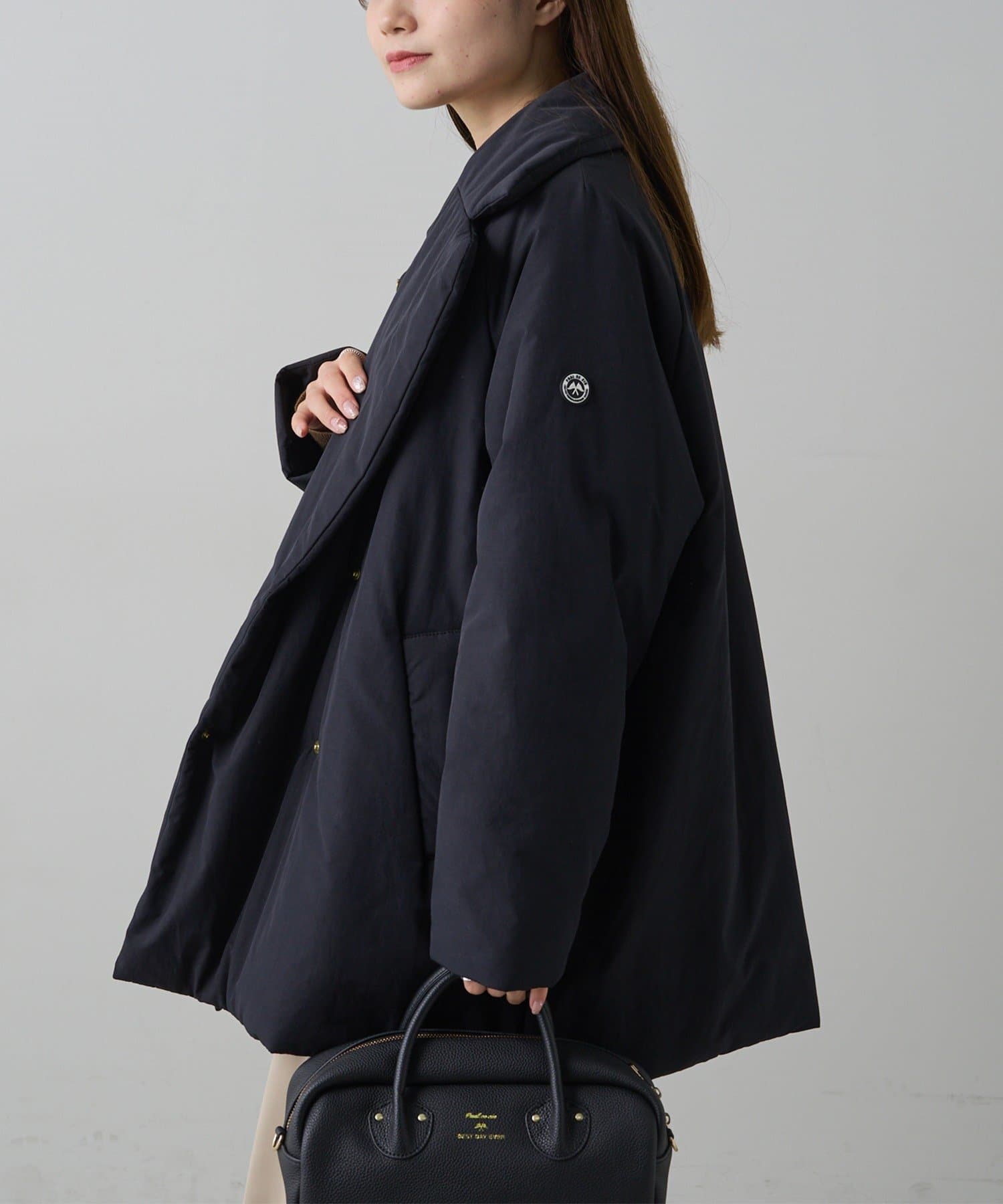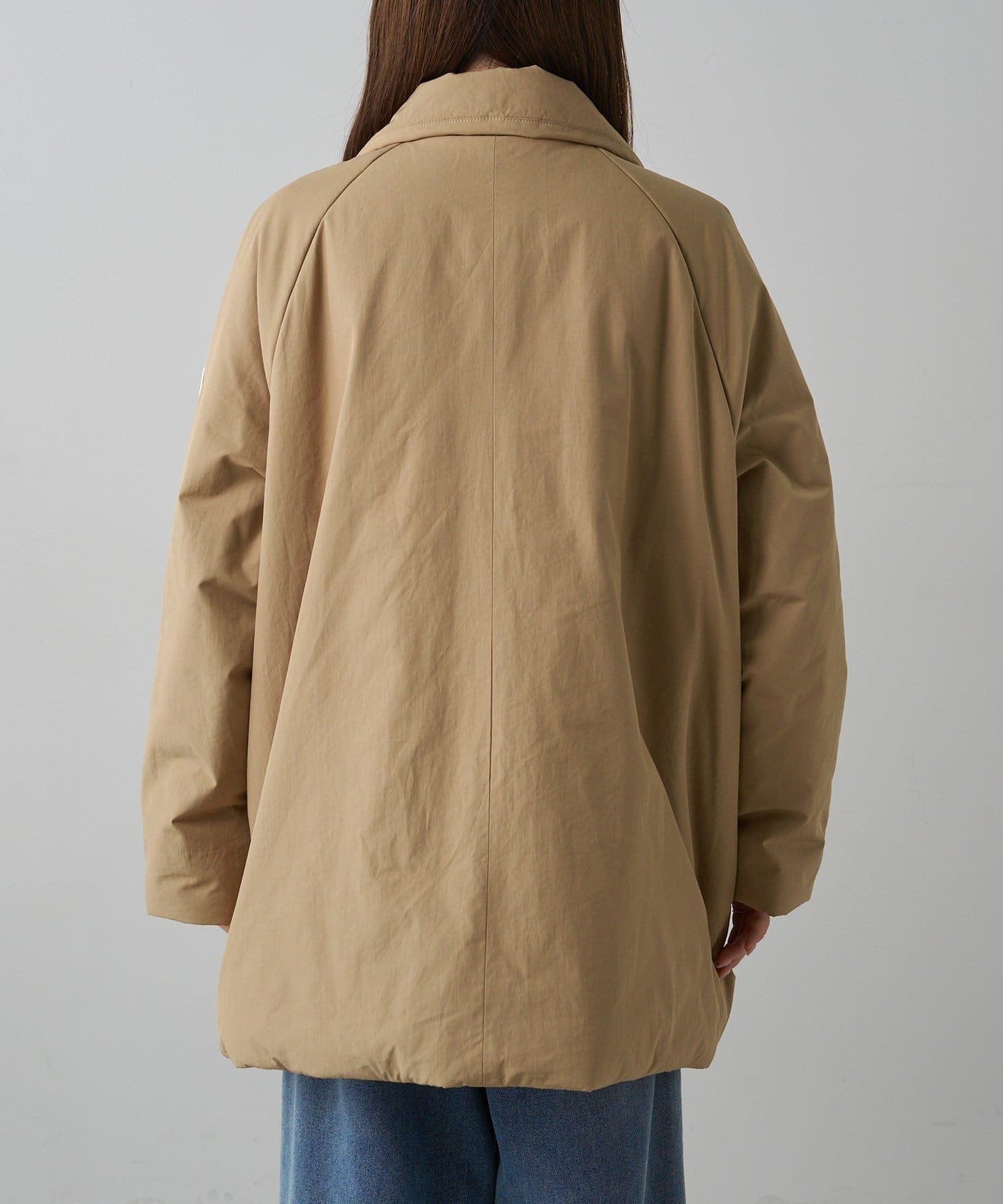 ビックカラーで小顔効果を発揮。首元まで隠れるステンカラーデザインでの着用も可能です。