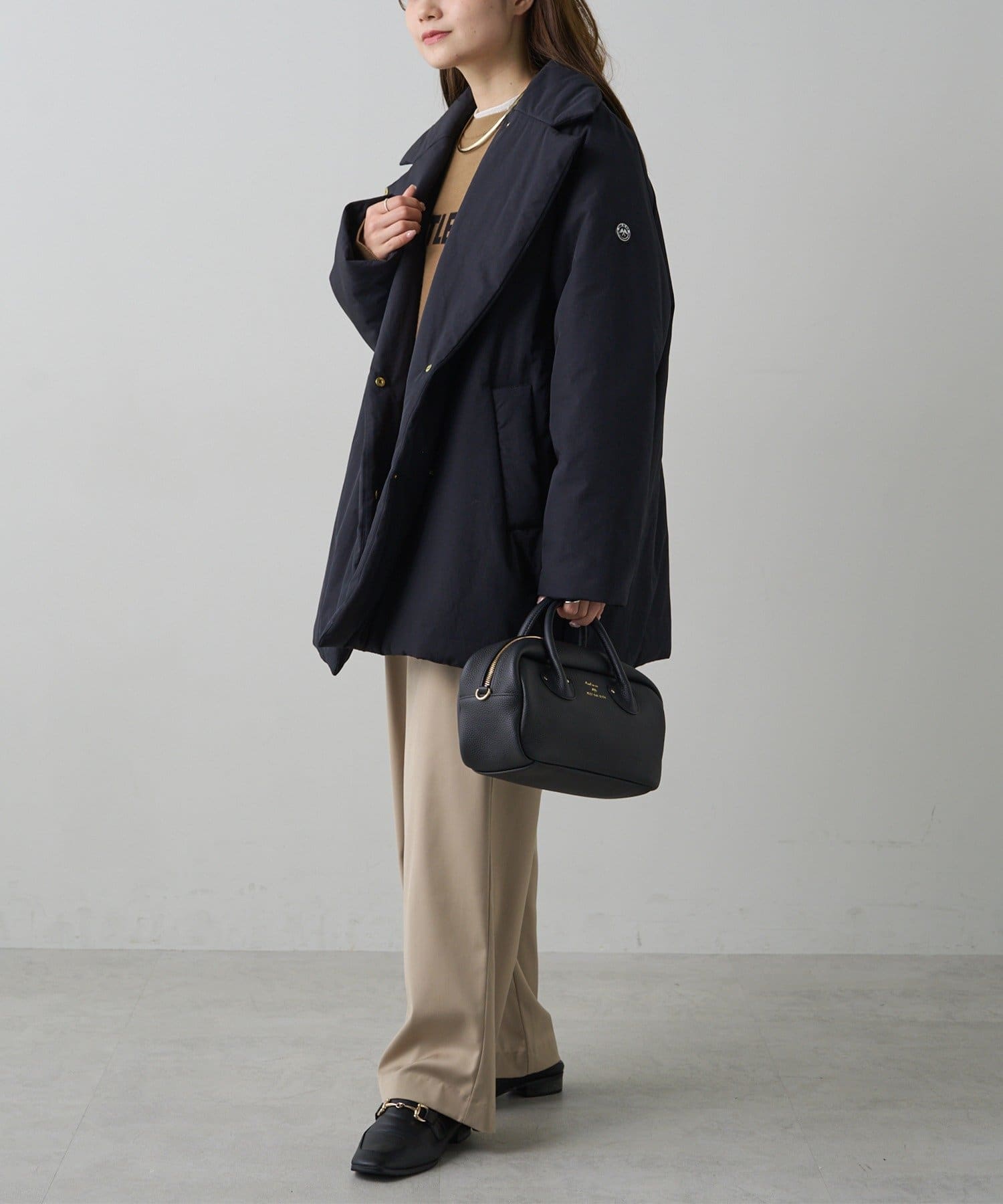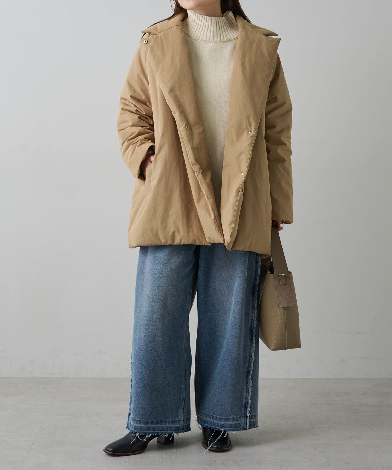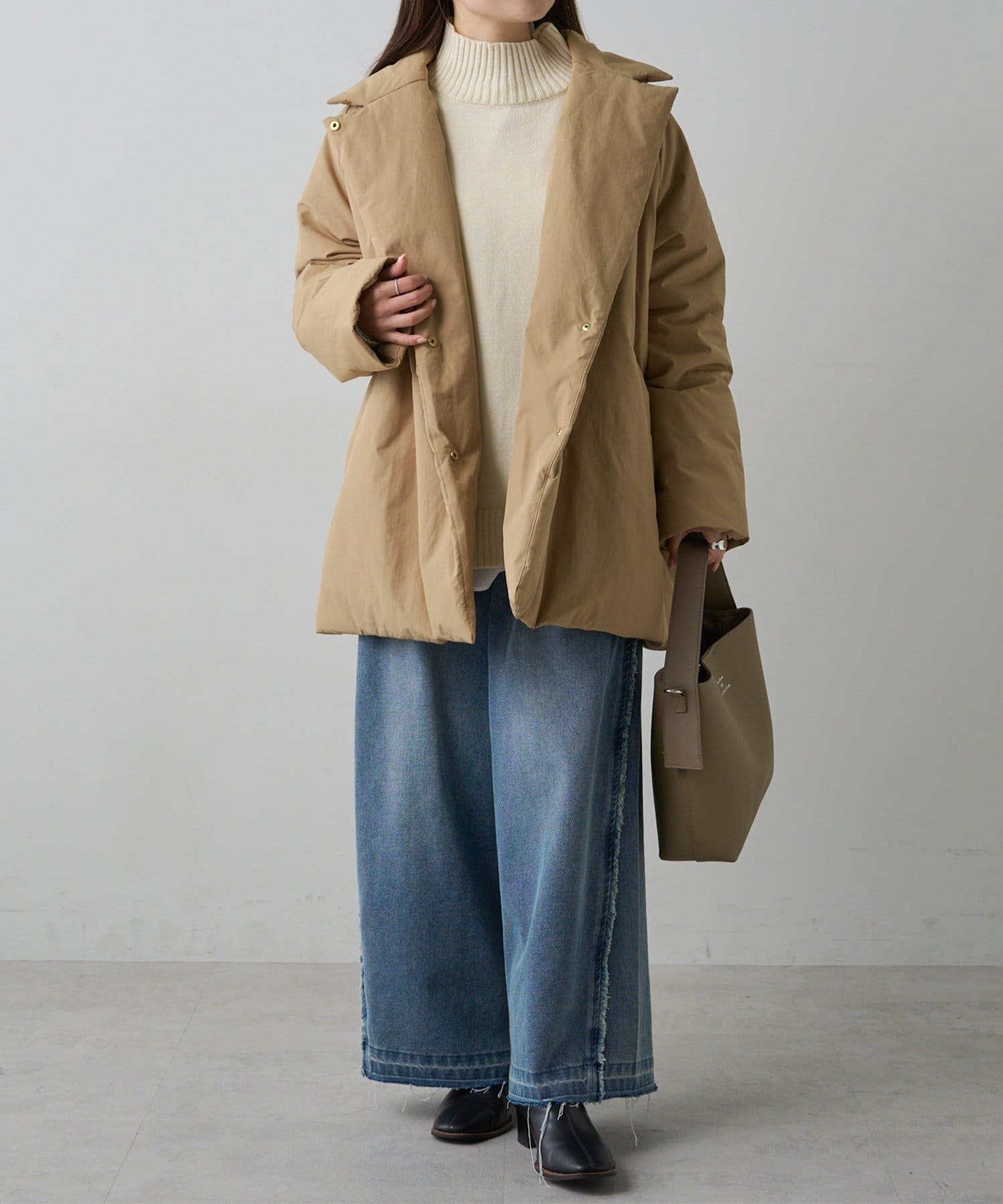 カジュアルに見えがちな中綿ジャケットをテーラードシルエットできれいめな印象に仕上げました。
