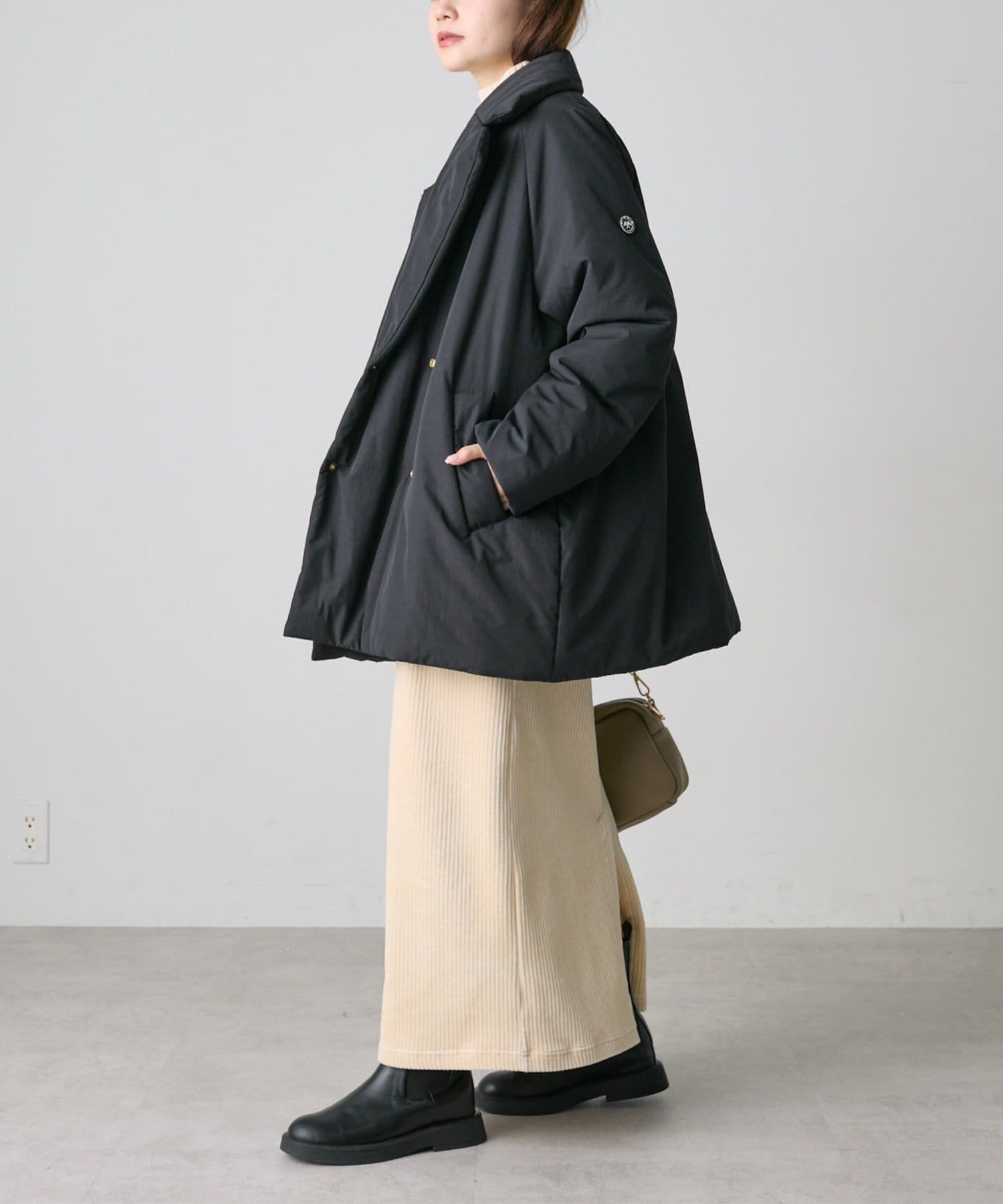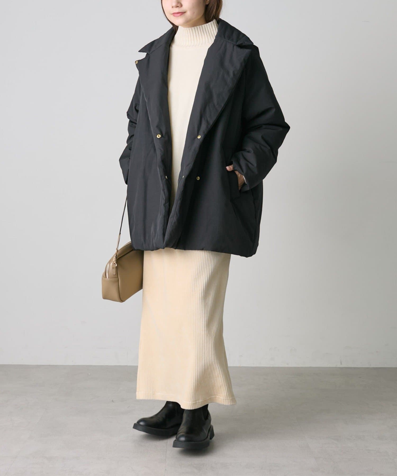 着用感:保温性に優れ中綿でも暖かい着心地です。154cmだと体を覆うオーバーサイズ。ニットを着こんでも窮屈感なく着用できます。