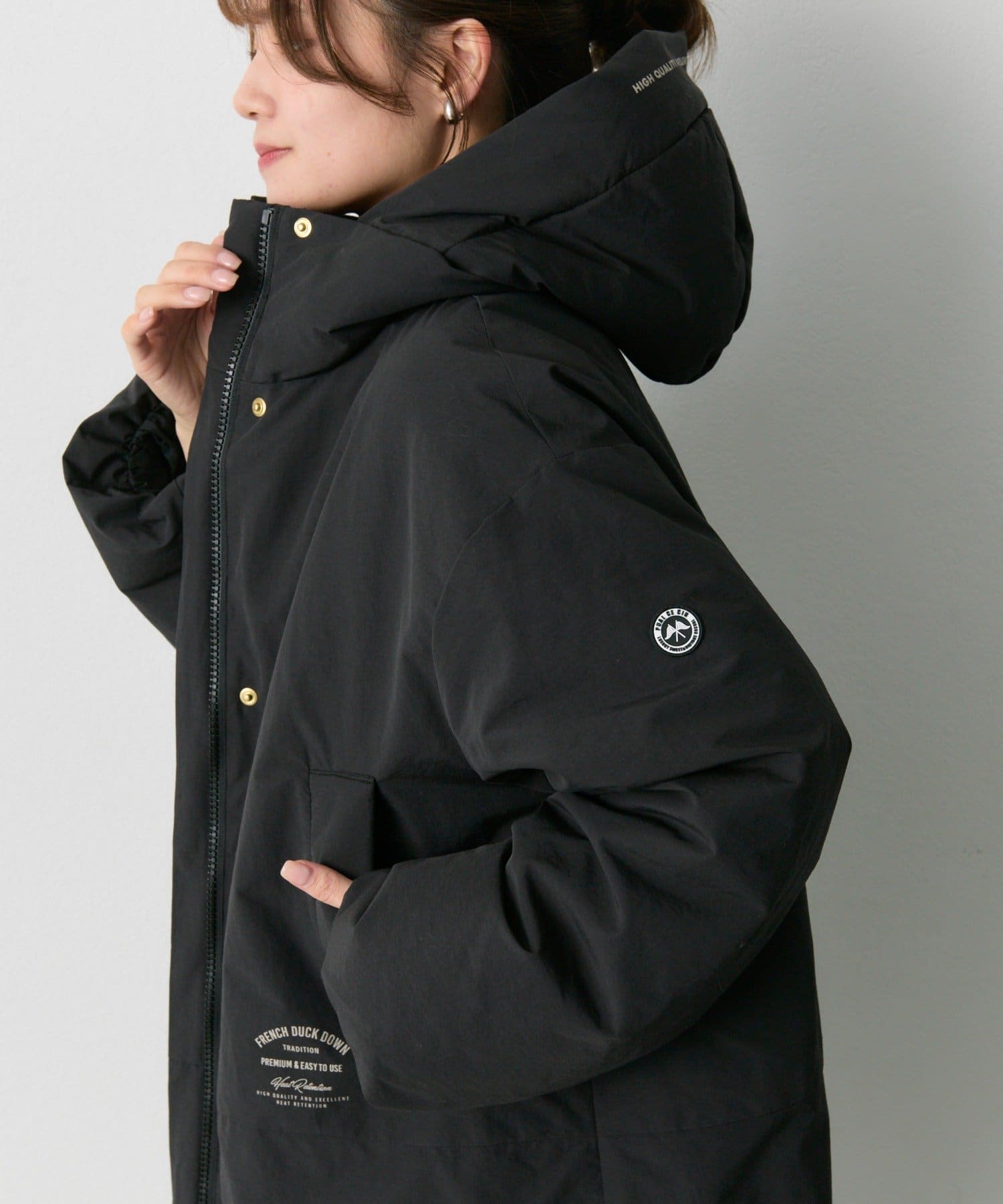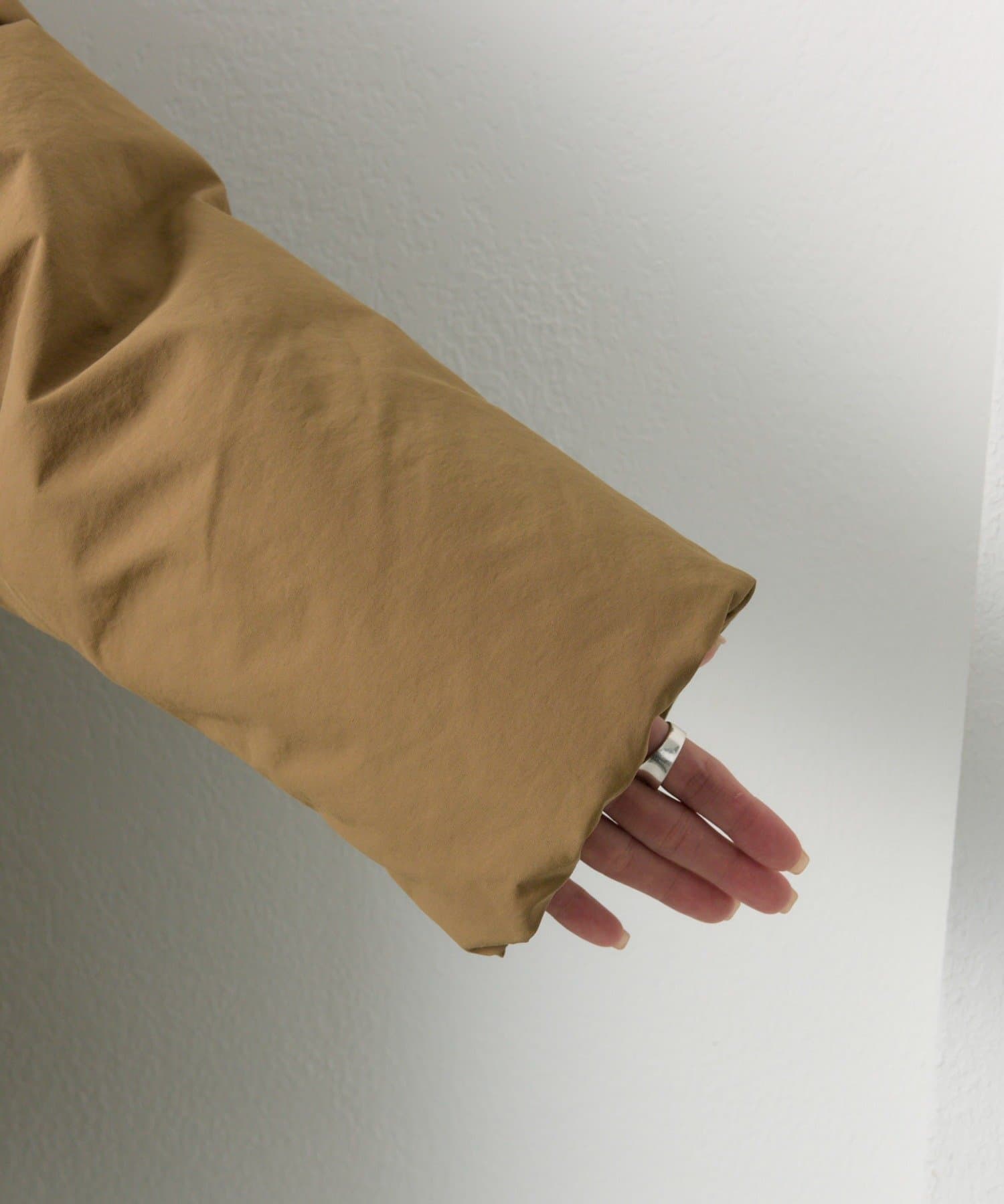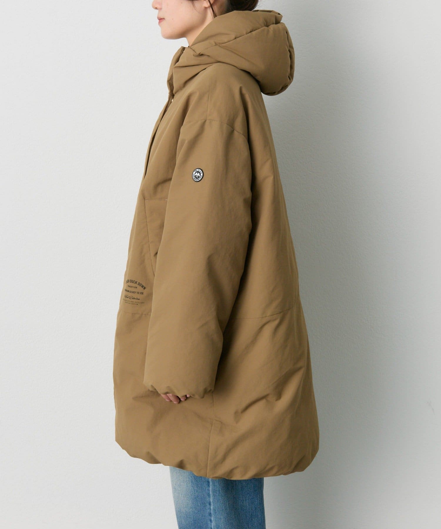 ゆとりのあるサイズ感ながら、袖、肩周りがすっきりと見えるようにパターンやダウンの分量感などを緻密に計算。