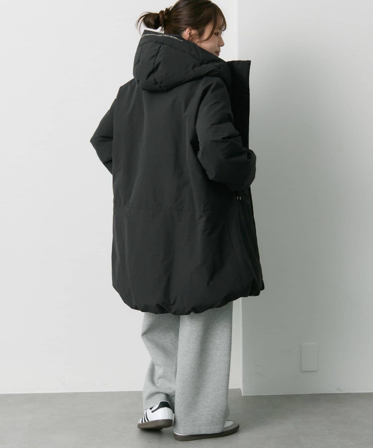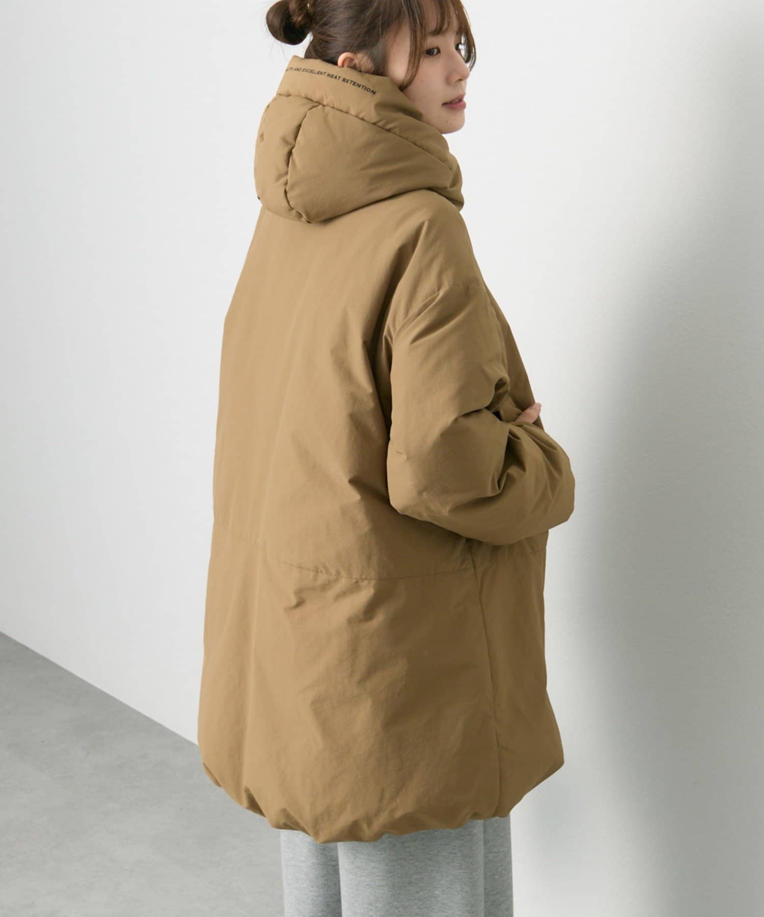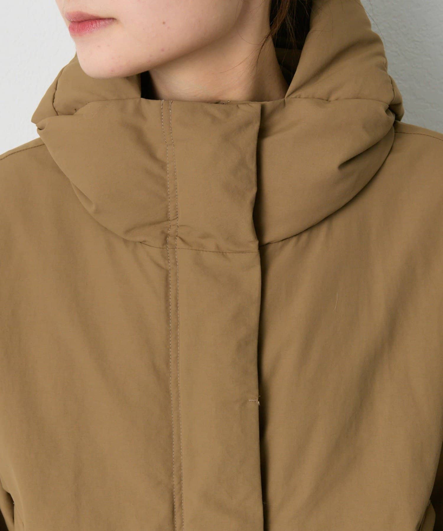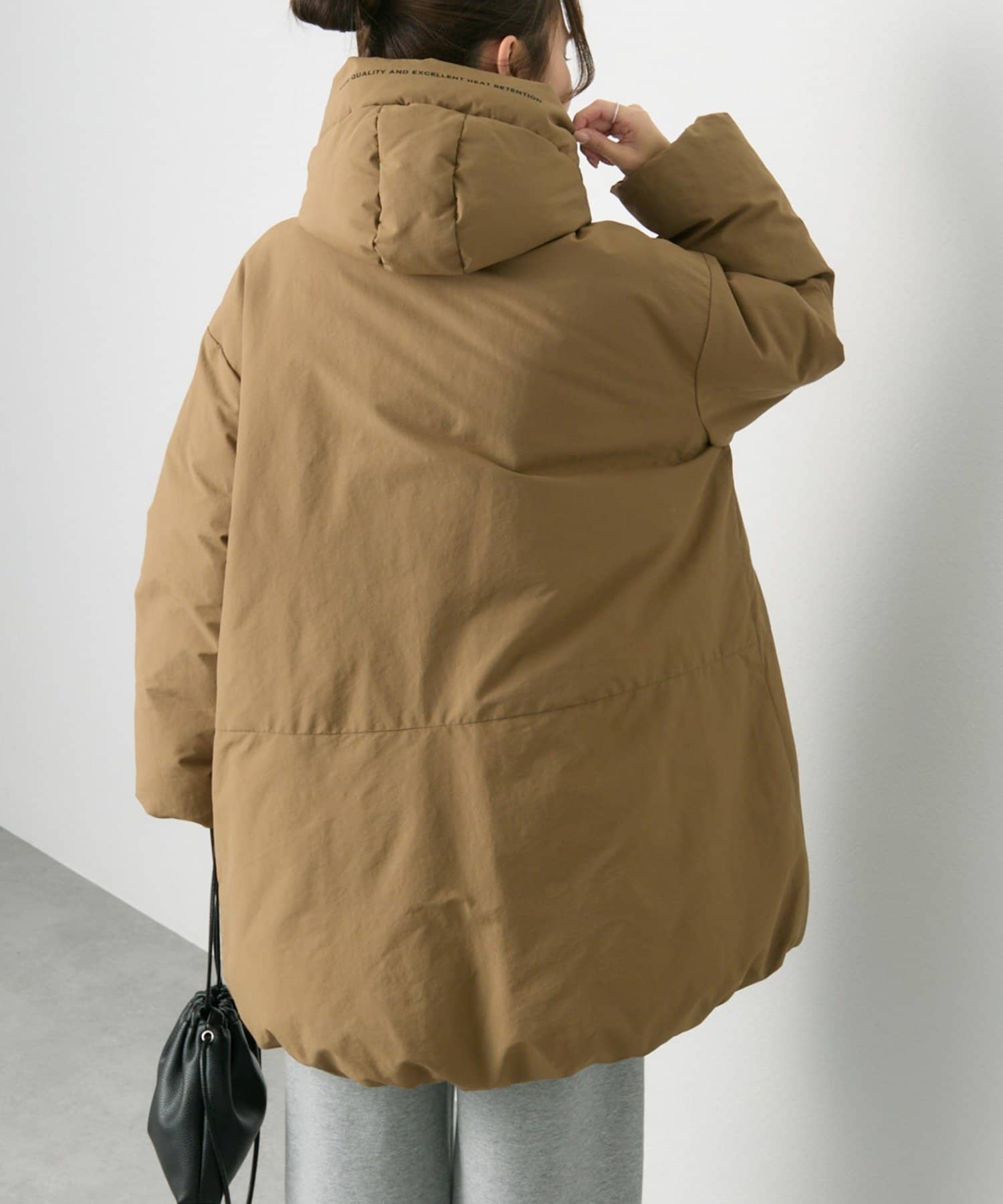 ゆとりのあるサイズ感ながら、袖、肩周りがすっきりと見えるようにパターンやダウンの分量感などを緻密に計算。