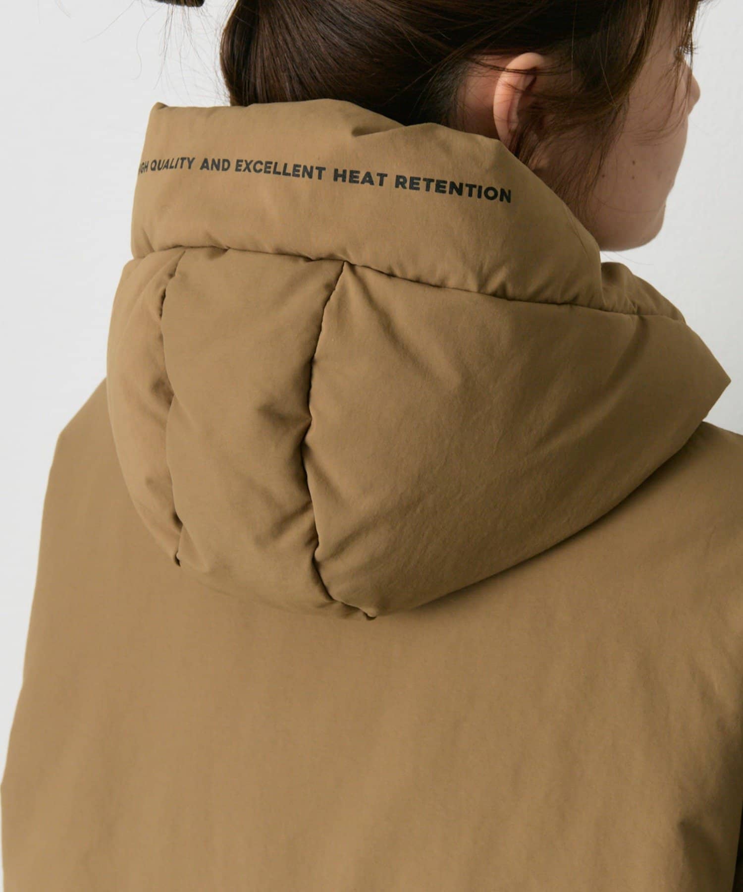 立体感のあるフードデザインで包み込まれるような美しいフォルムを実現し