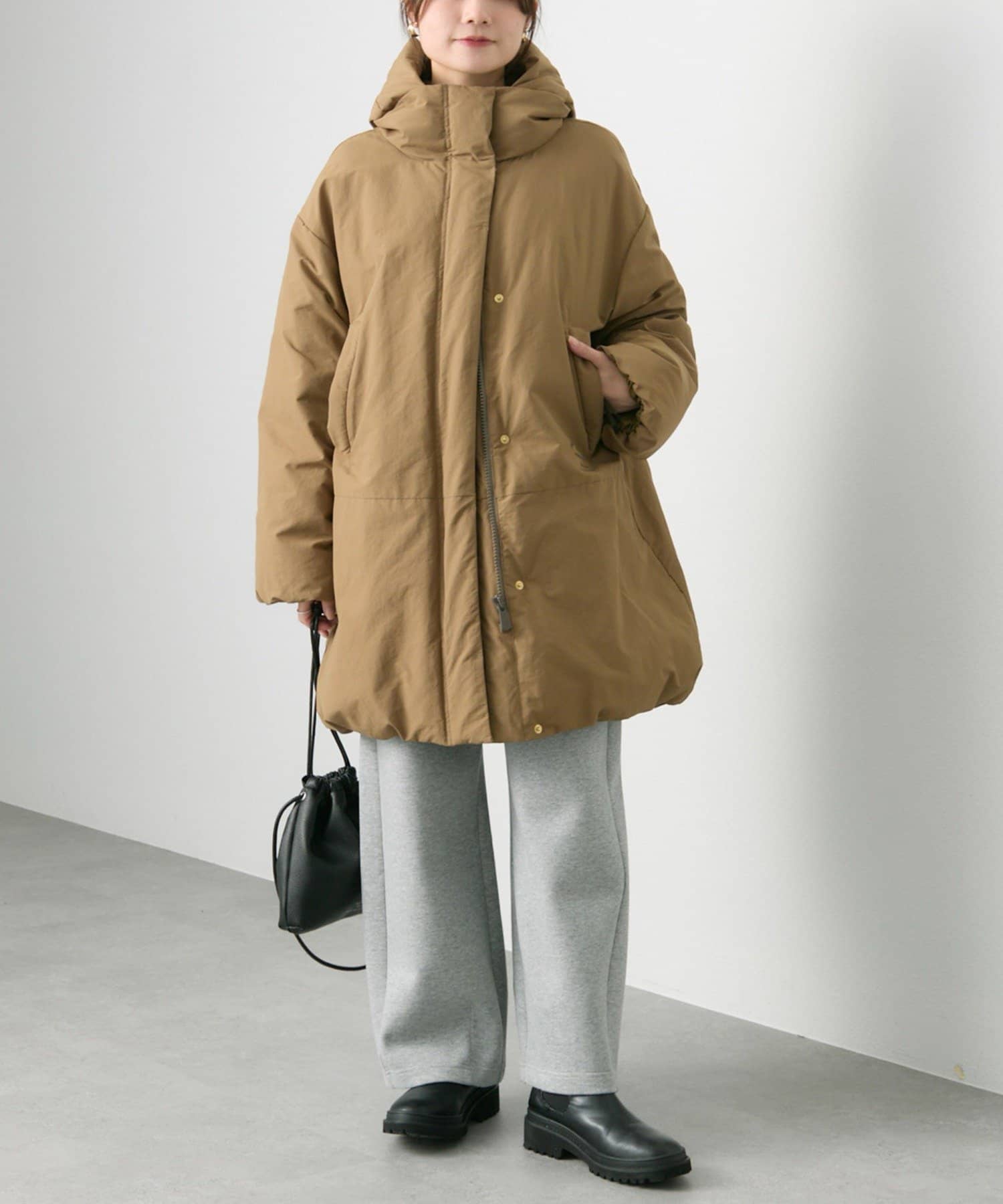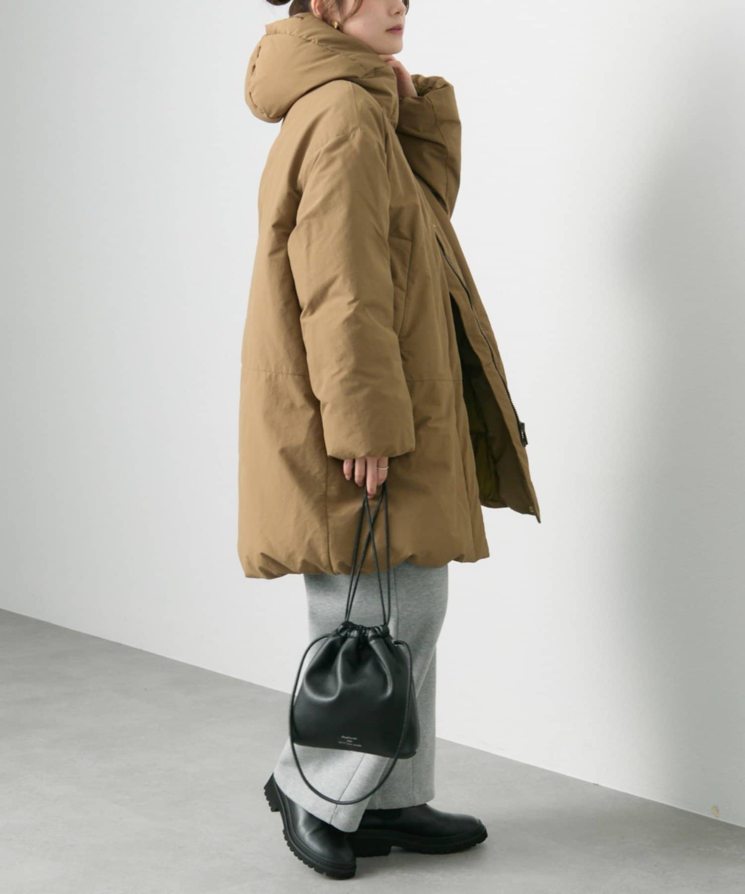 女性らしいコクーンシルエットのミドル丈で防寒性とデザイン性の両方が叶うダウンコートです。