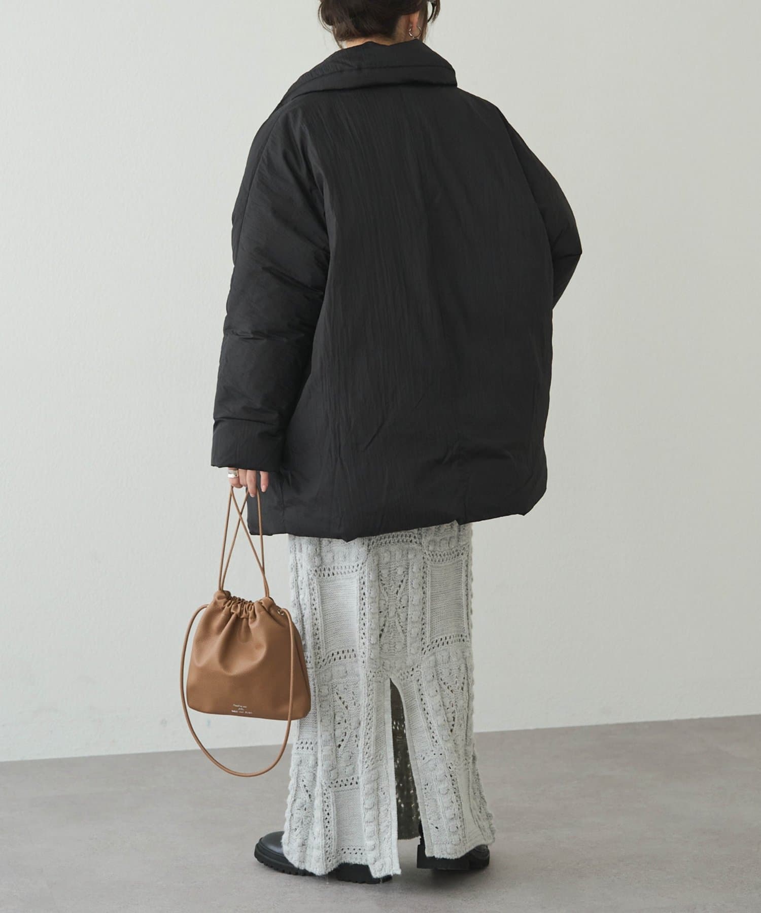 サステナブルなダウンを使用したミドル丈コート。