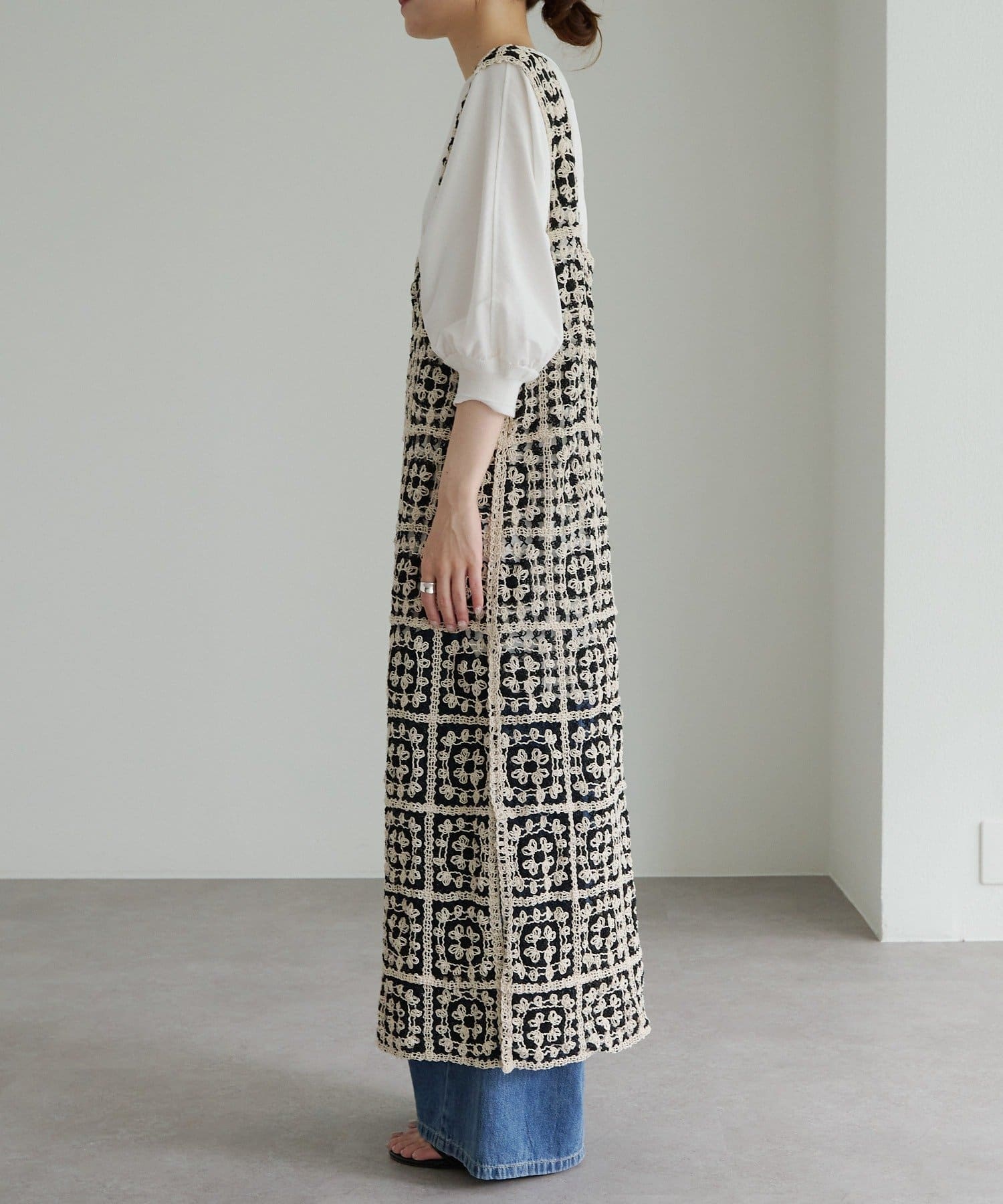 カギ針編みのようなデザインが、シーズンムードを高めるワンピース。