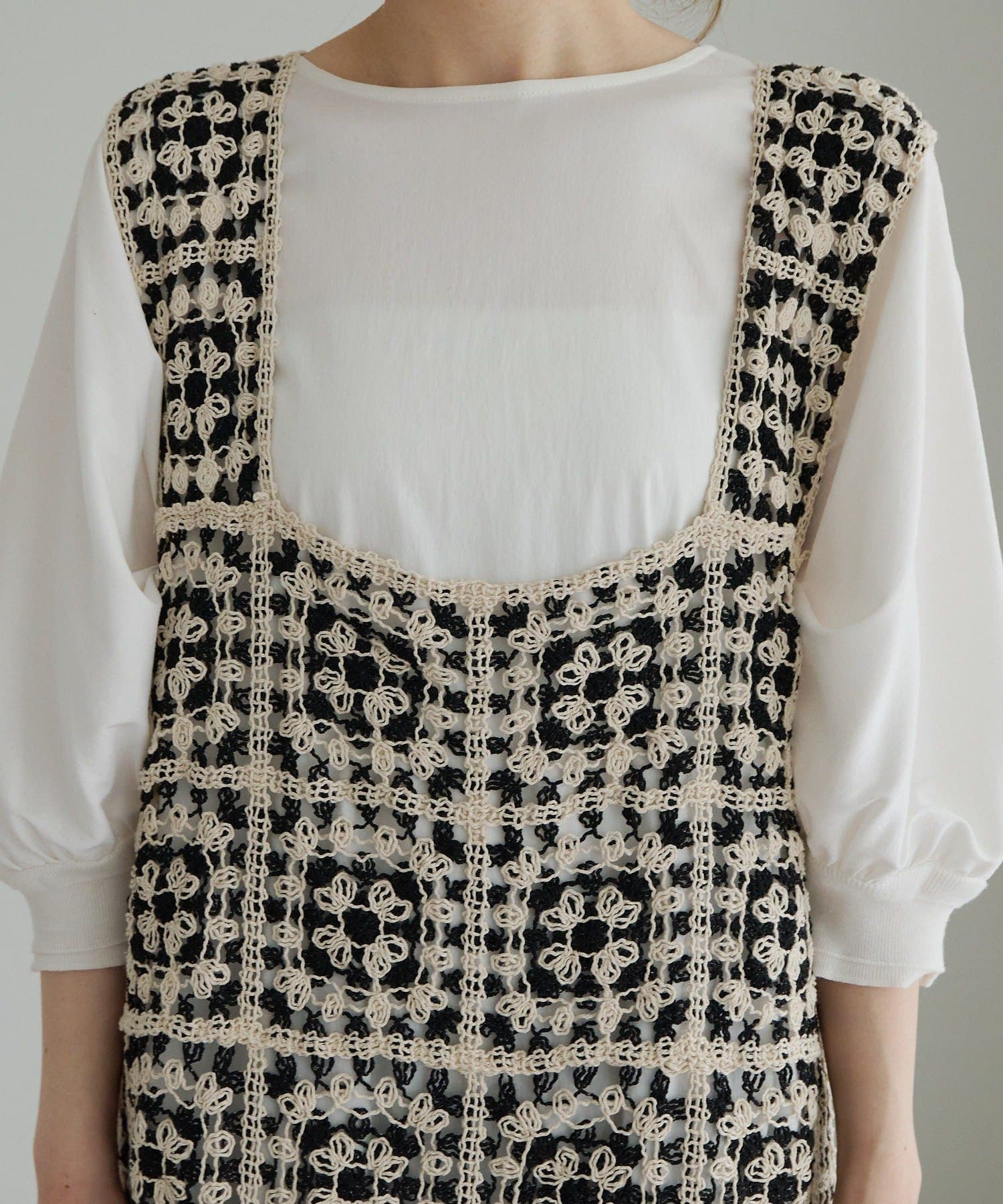 かぎ針編みの立体感を感じられ、暑い時期にも快適に着られるさらりとした肌当たりの素材です。