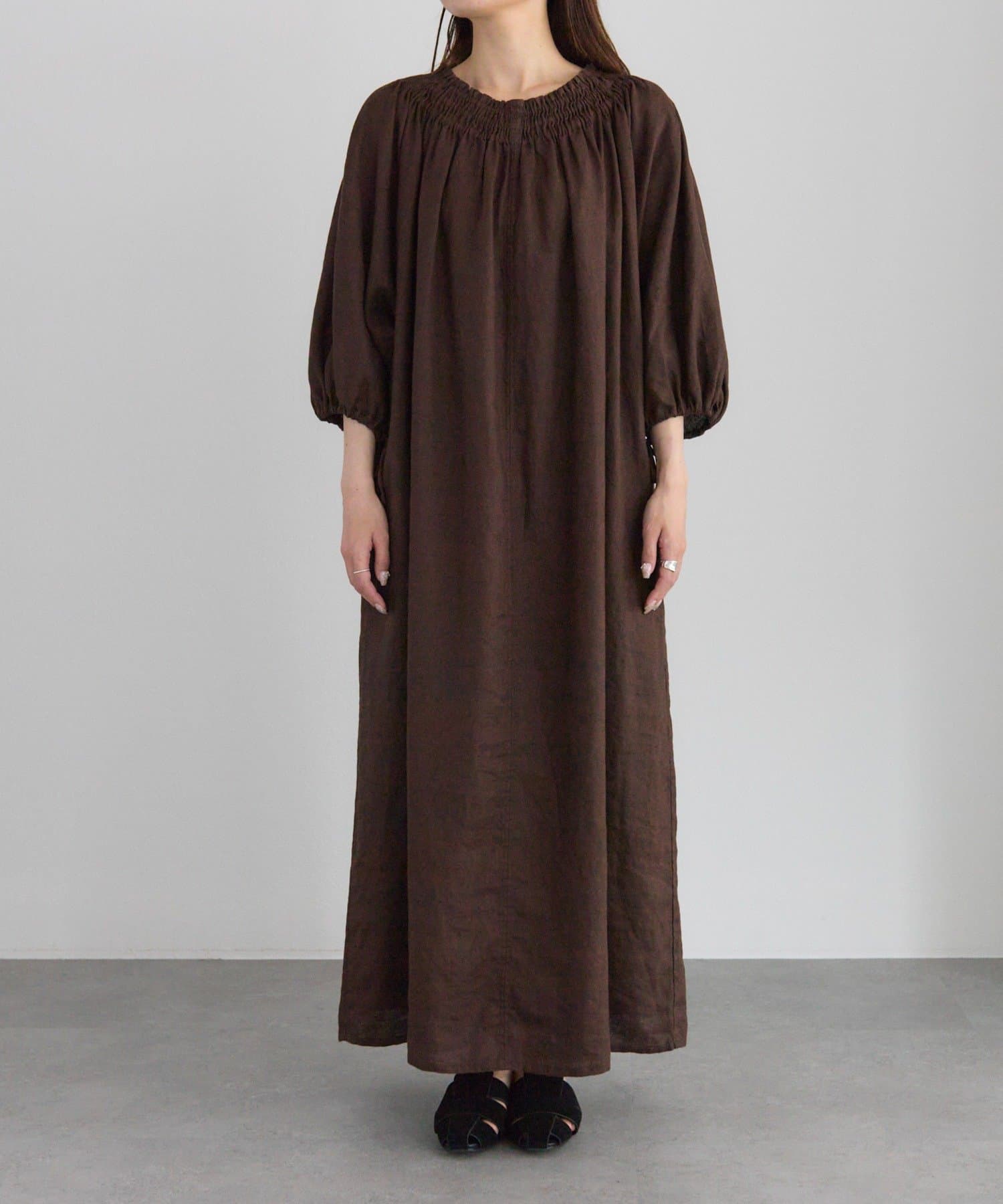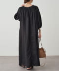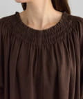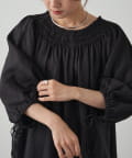 首元のシャーリングとギャザーが表情のあるドレープを作り、ミニマルなデザインも華やかに。