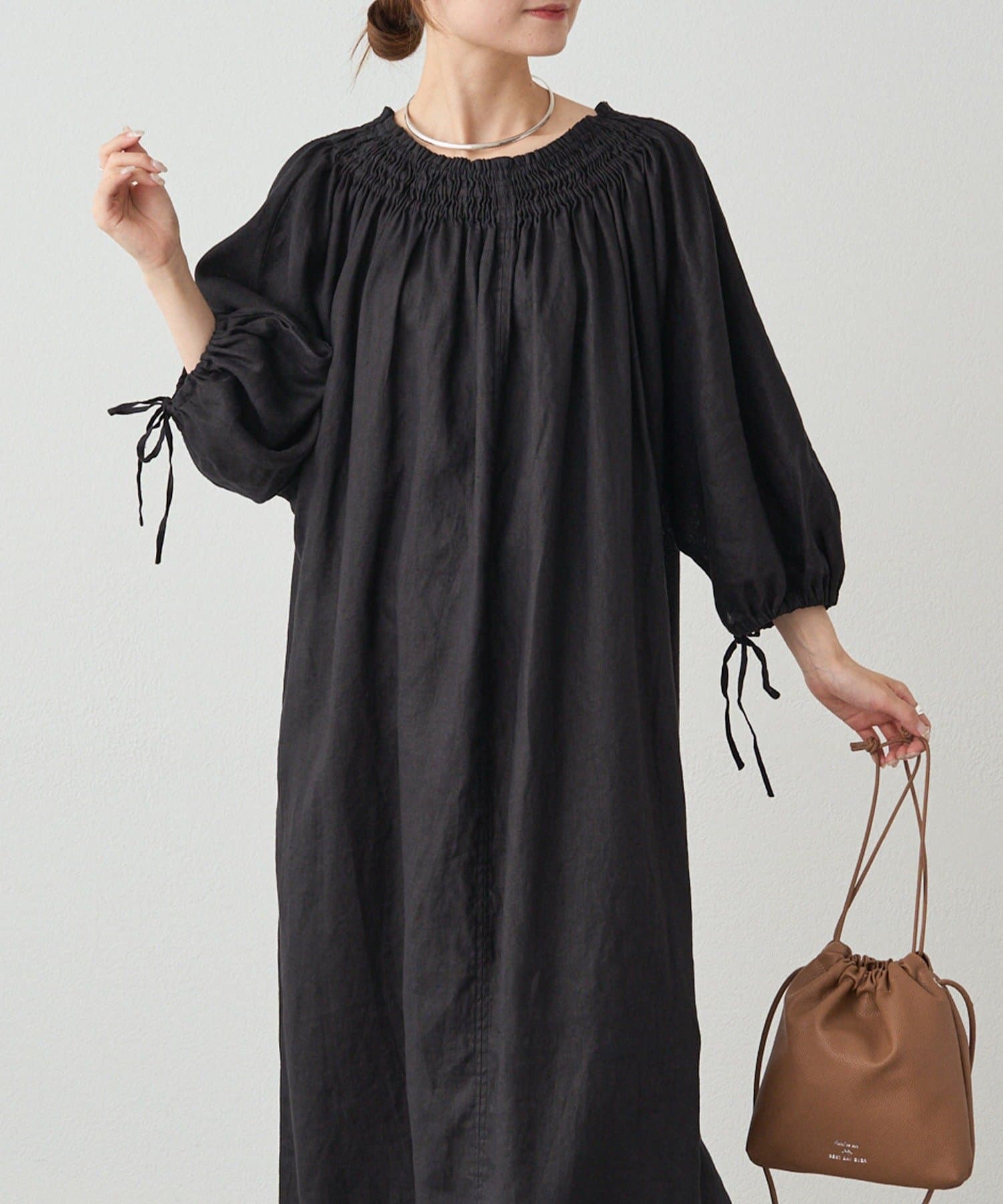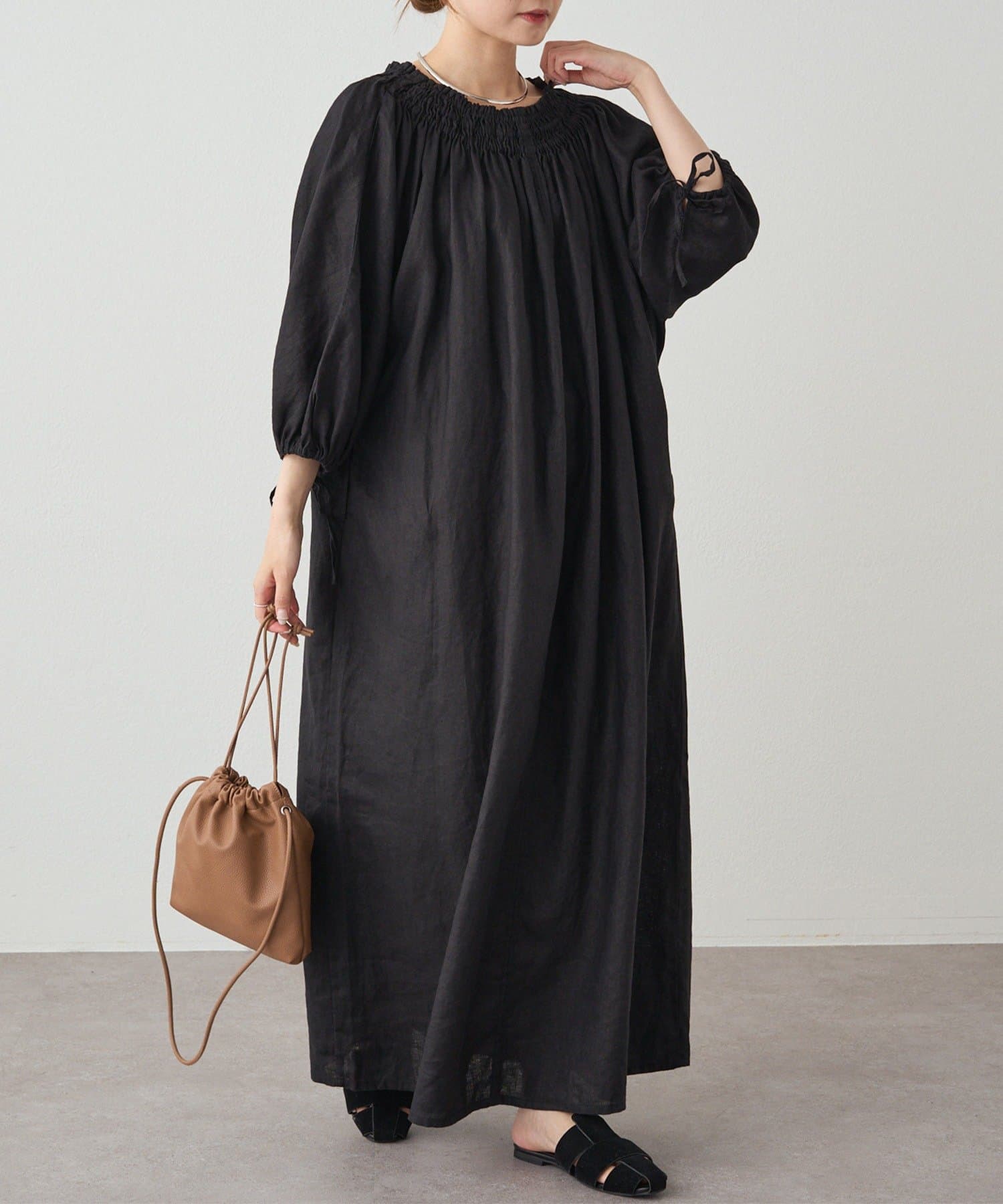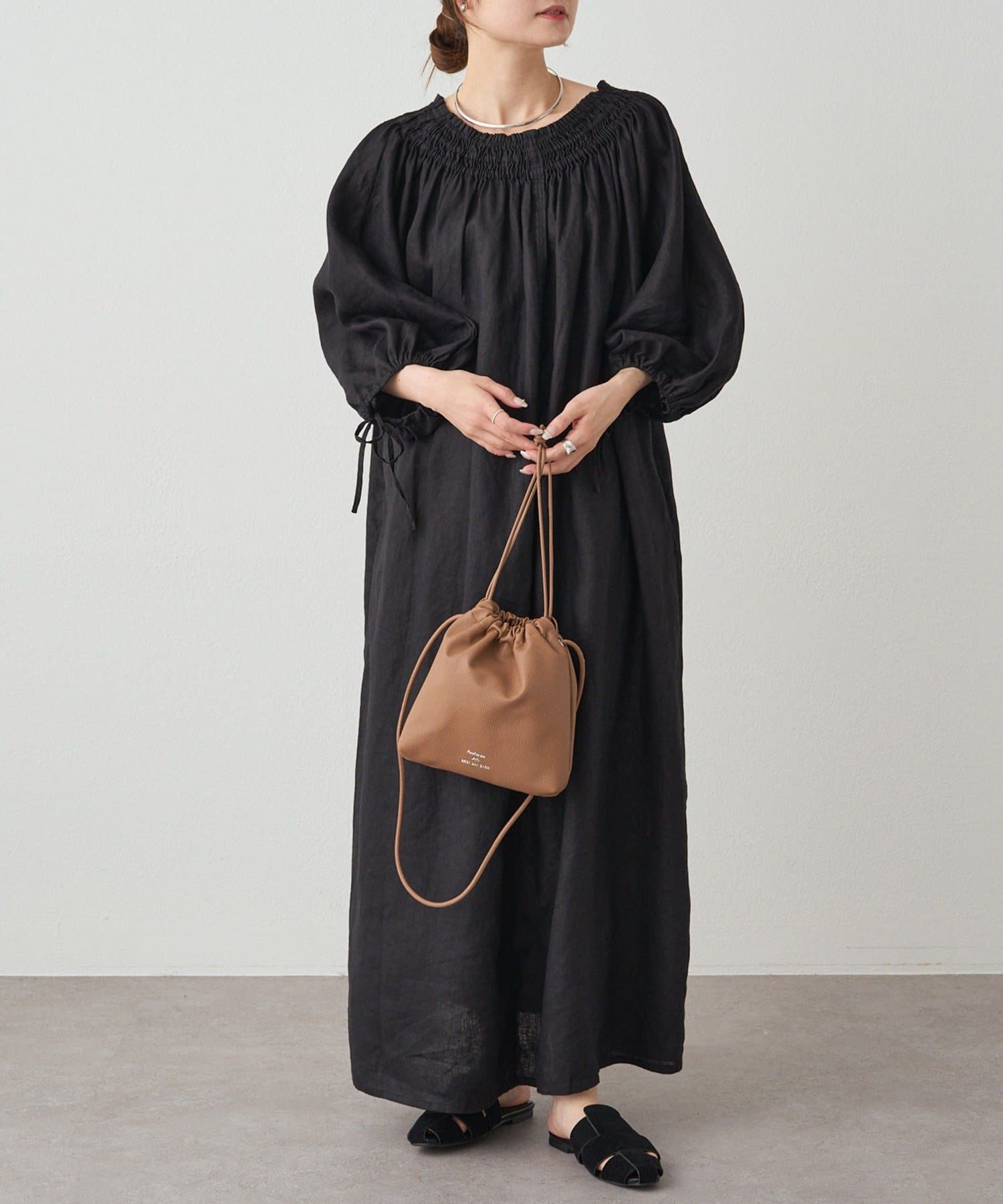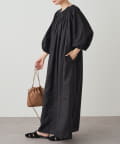 シンプルなワンピースなので、小物使いを楽しむことができ、シルバーアクセサリーで煌めきをプラスしたり、
