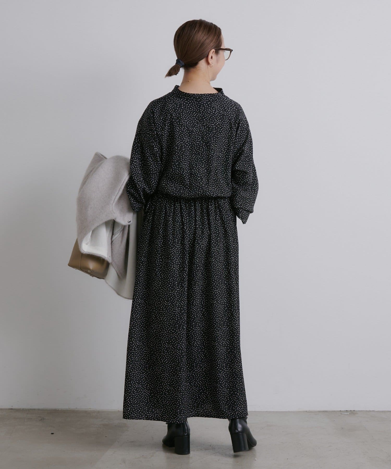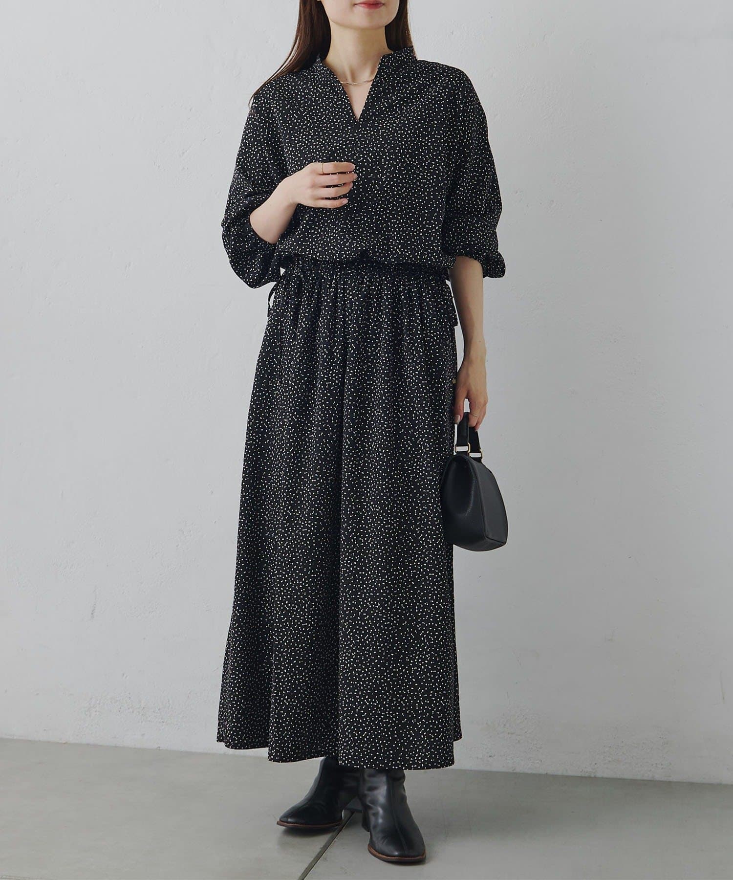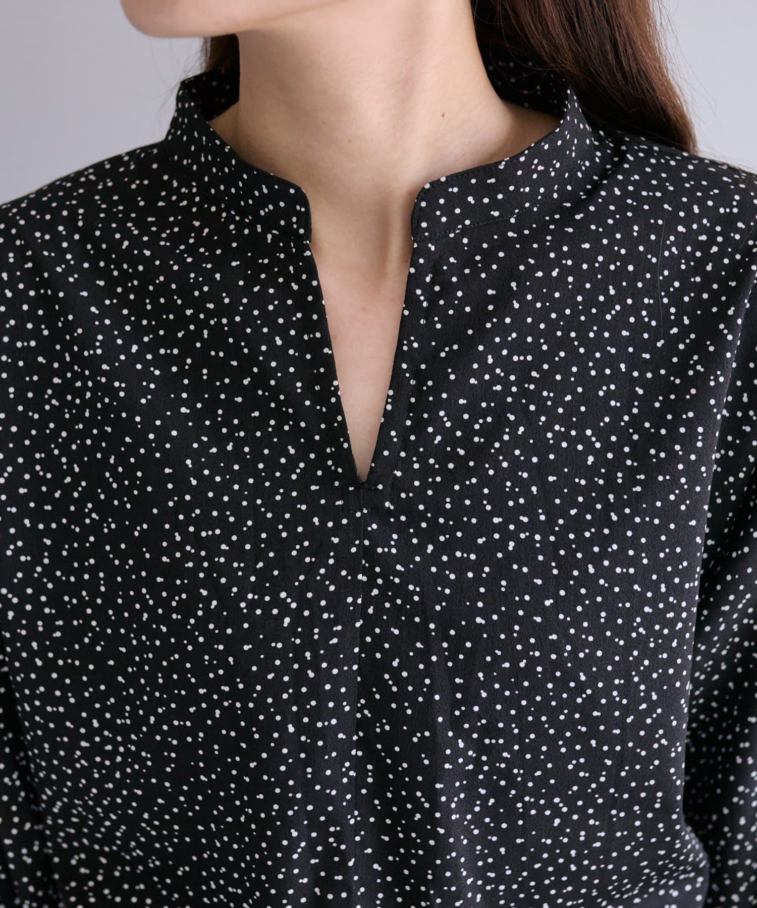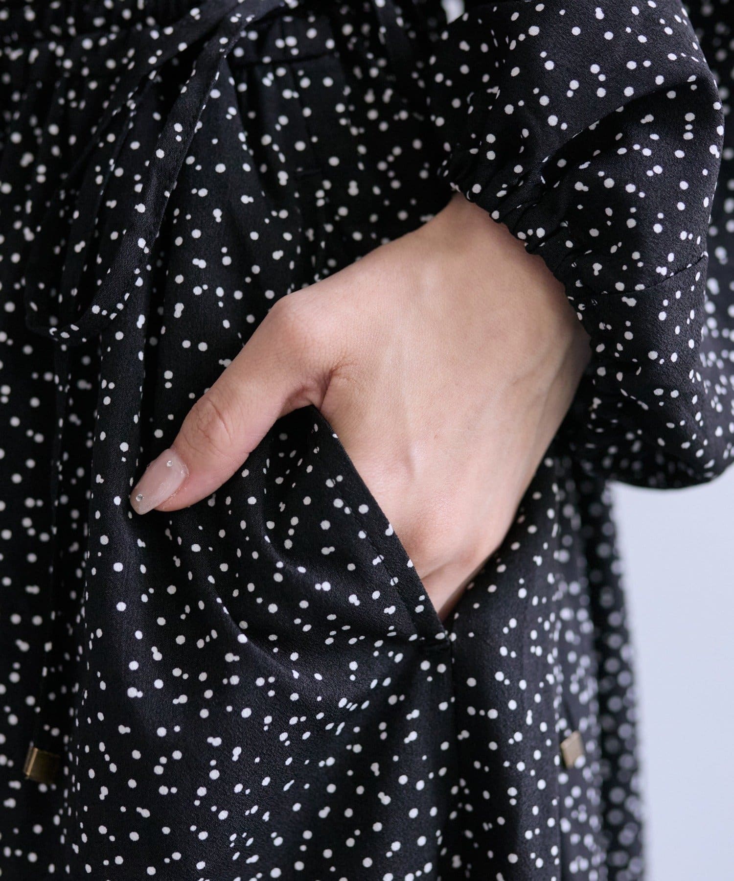 ランダムなドットプリントが控えめに柄物を楽しめる1着。