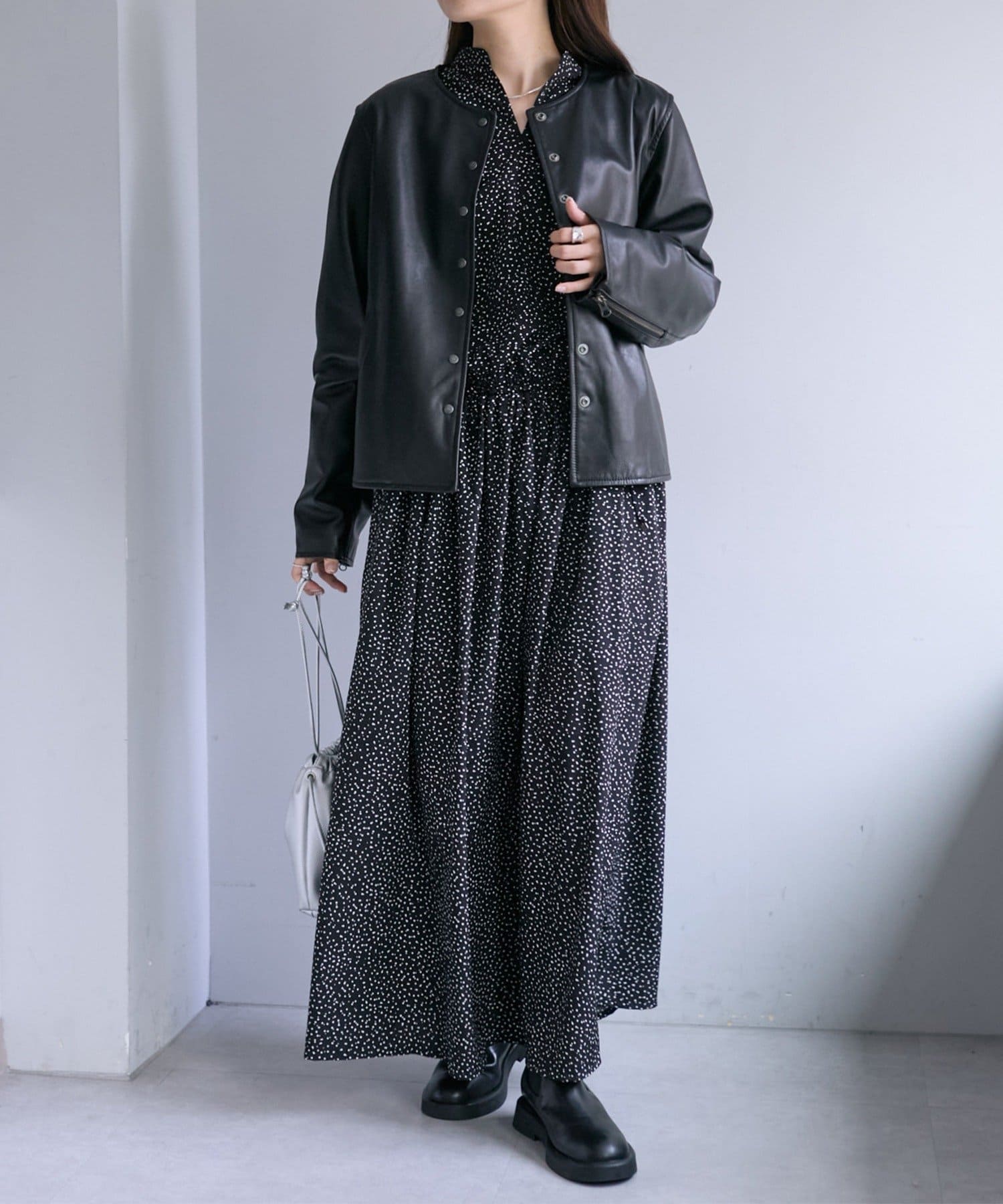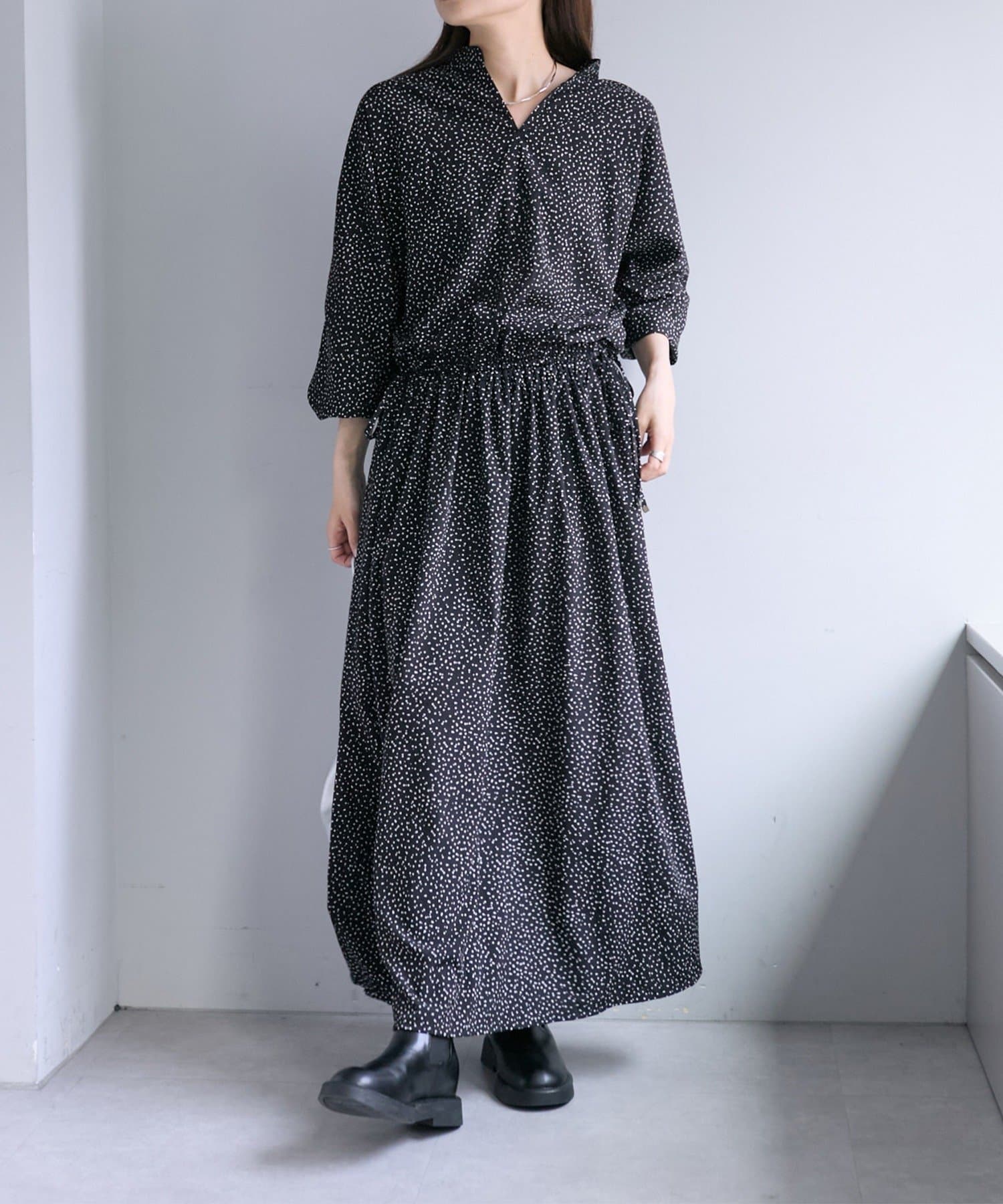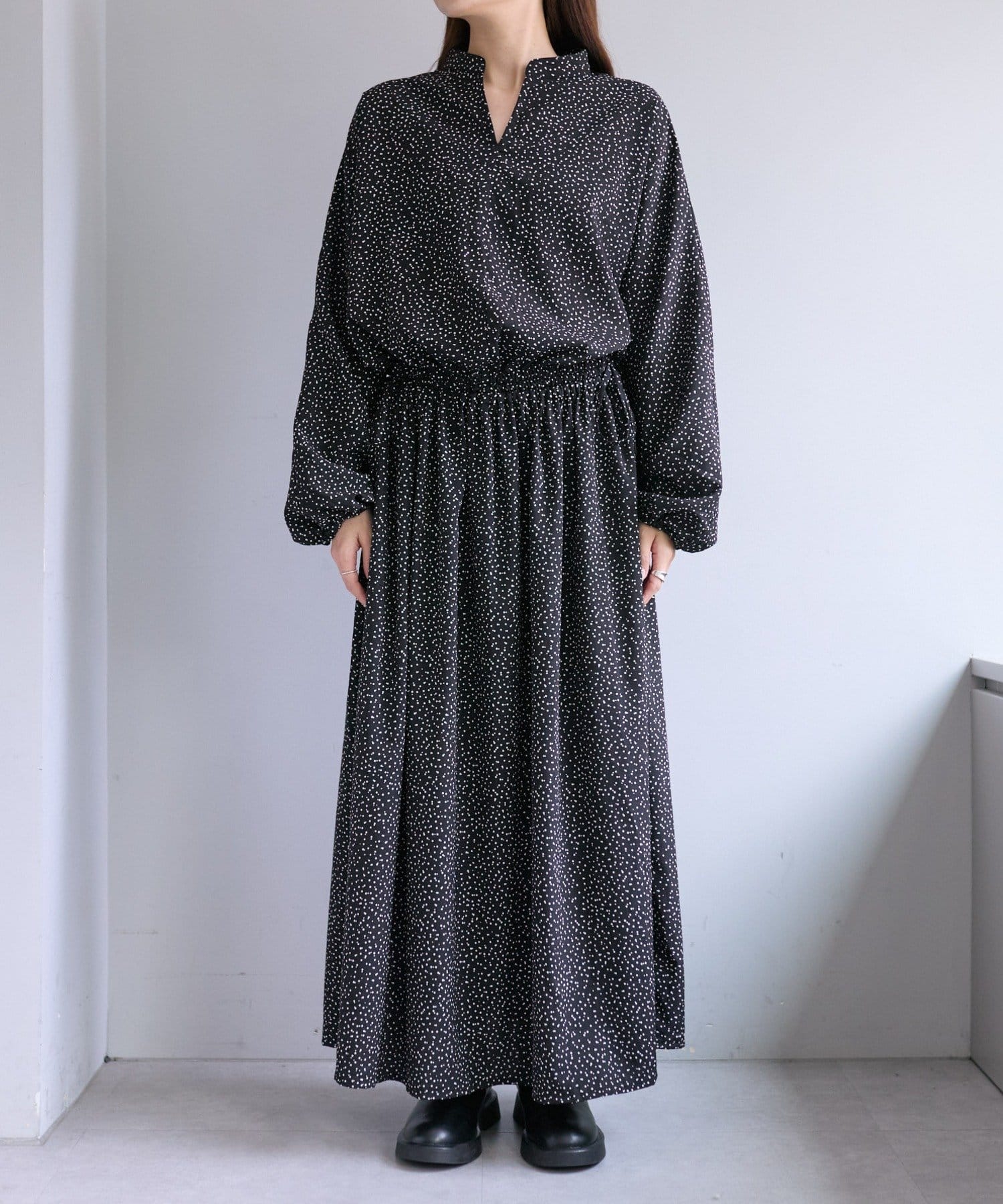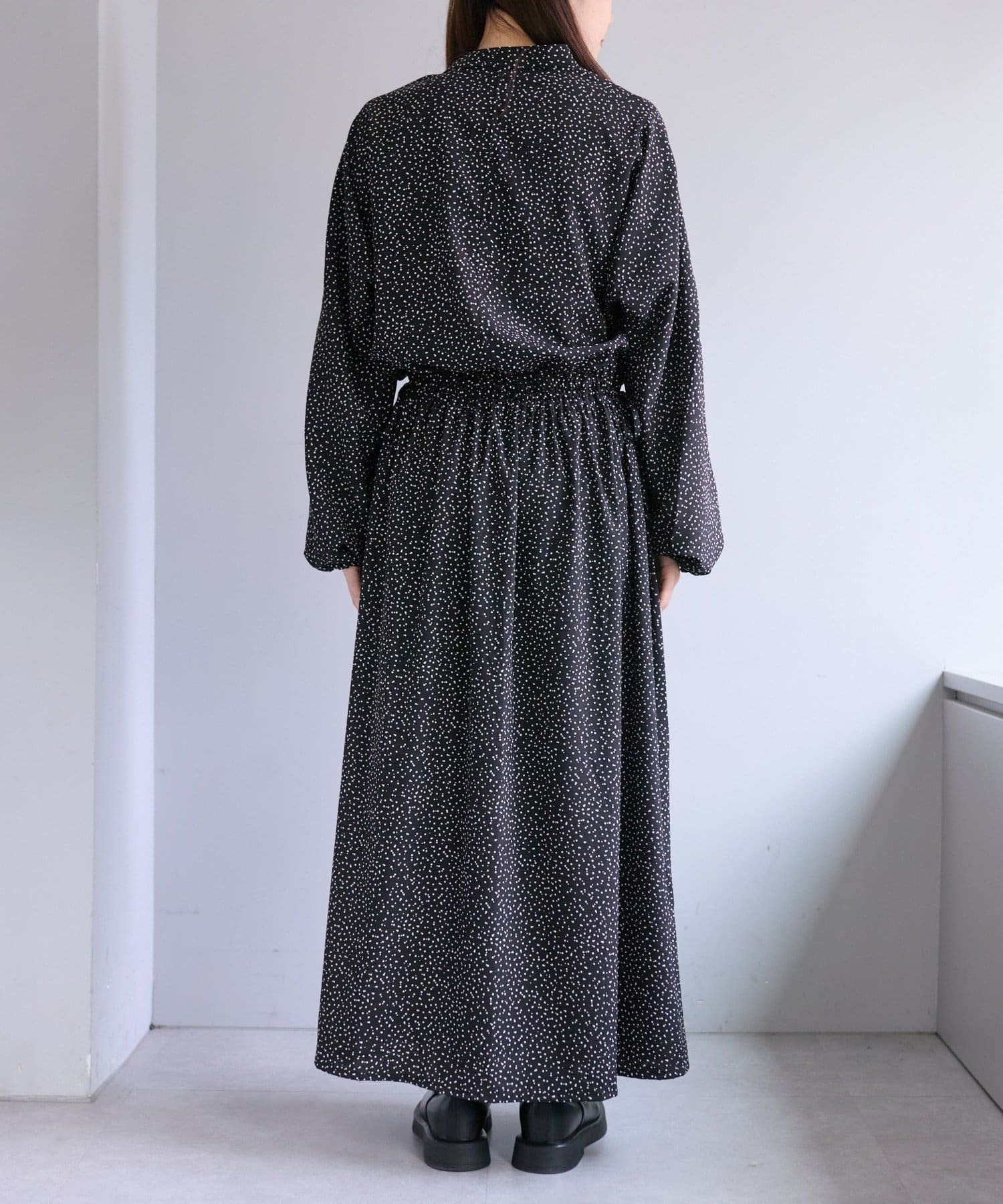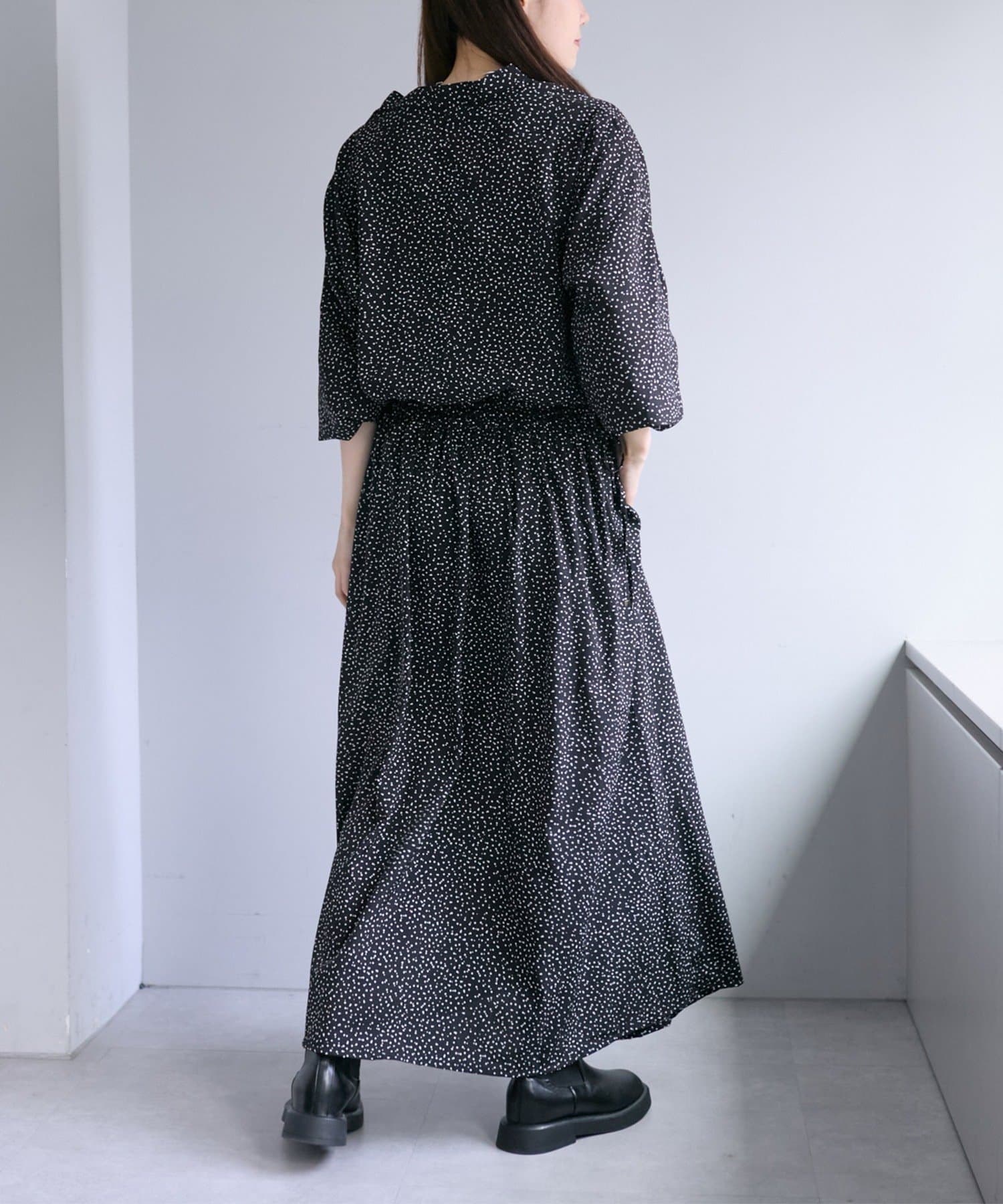 ランダムなドットプリントが控えめに柄物を楽しめる1着。