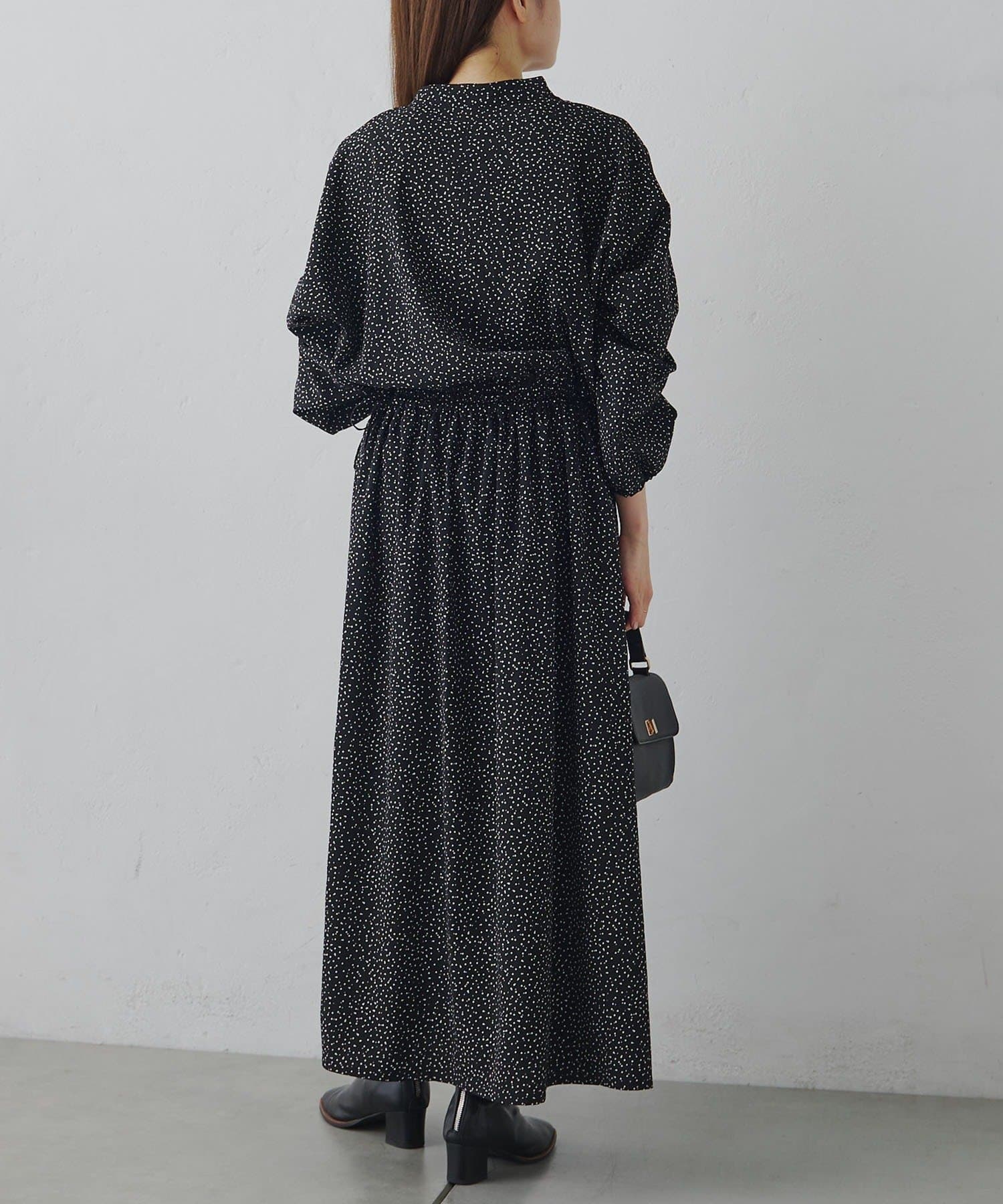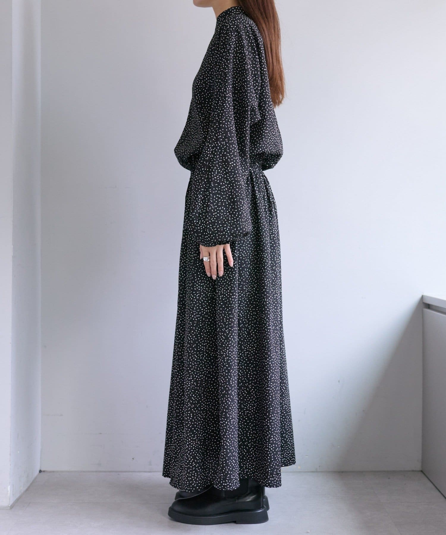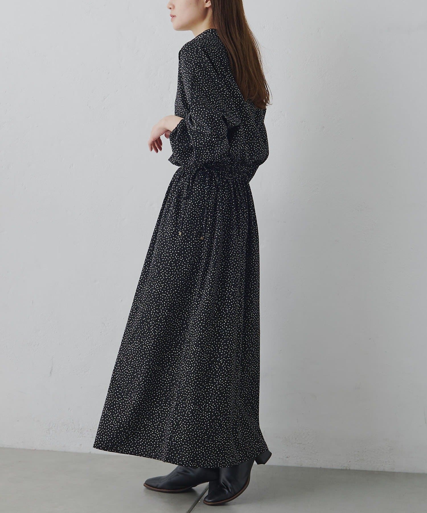 《リバイバル/WEB限定》【Du noir】ドット柄ウエストドロストワンピース