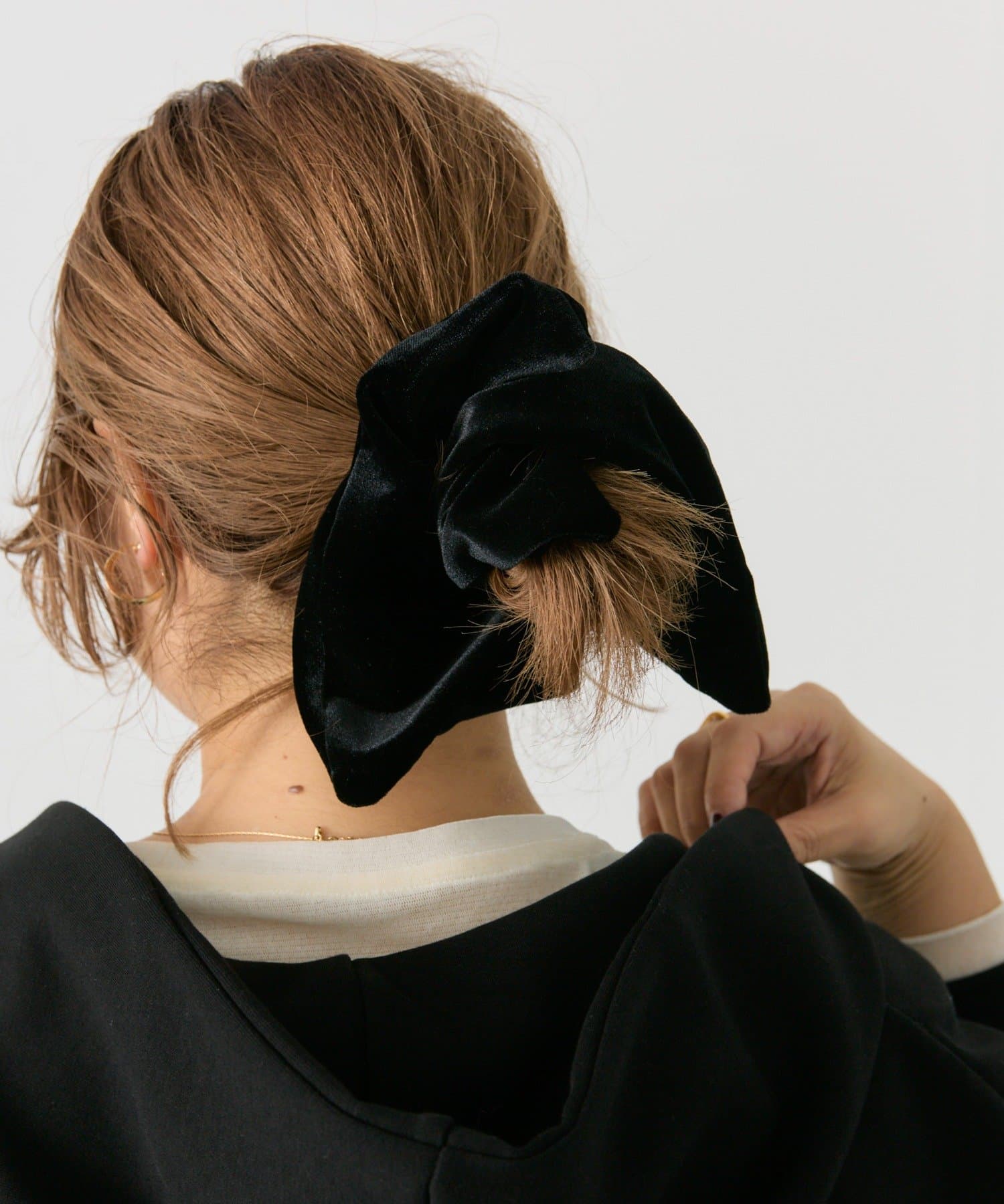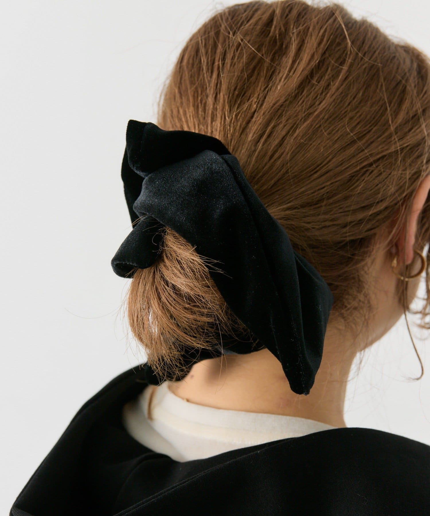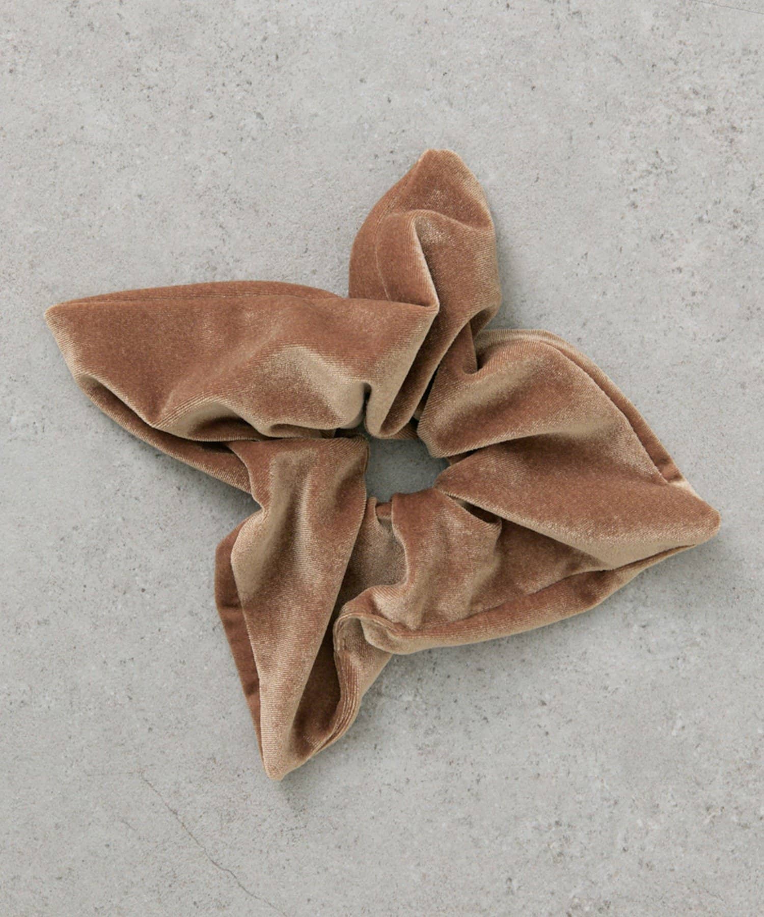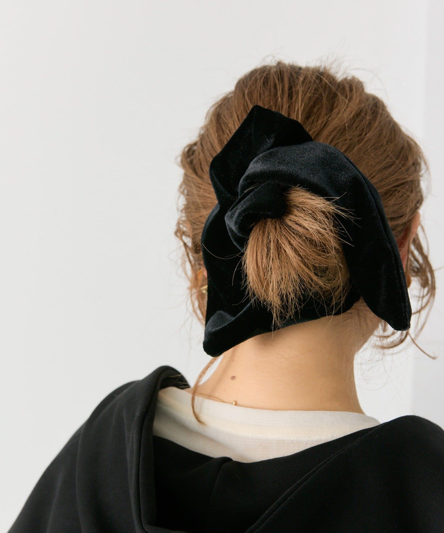 幼く見えがちなシュシュですが、トレンドのベロアの素材で上品な印象に。