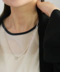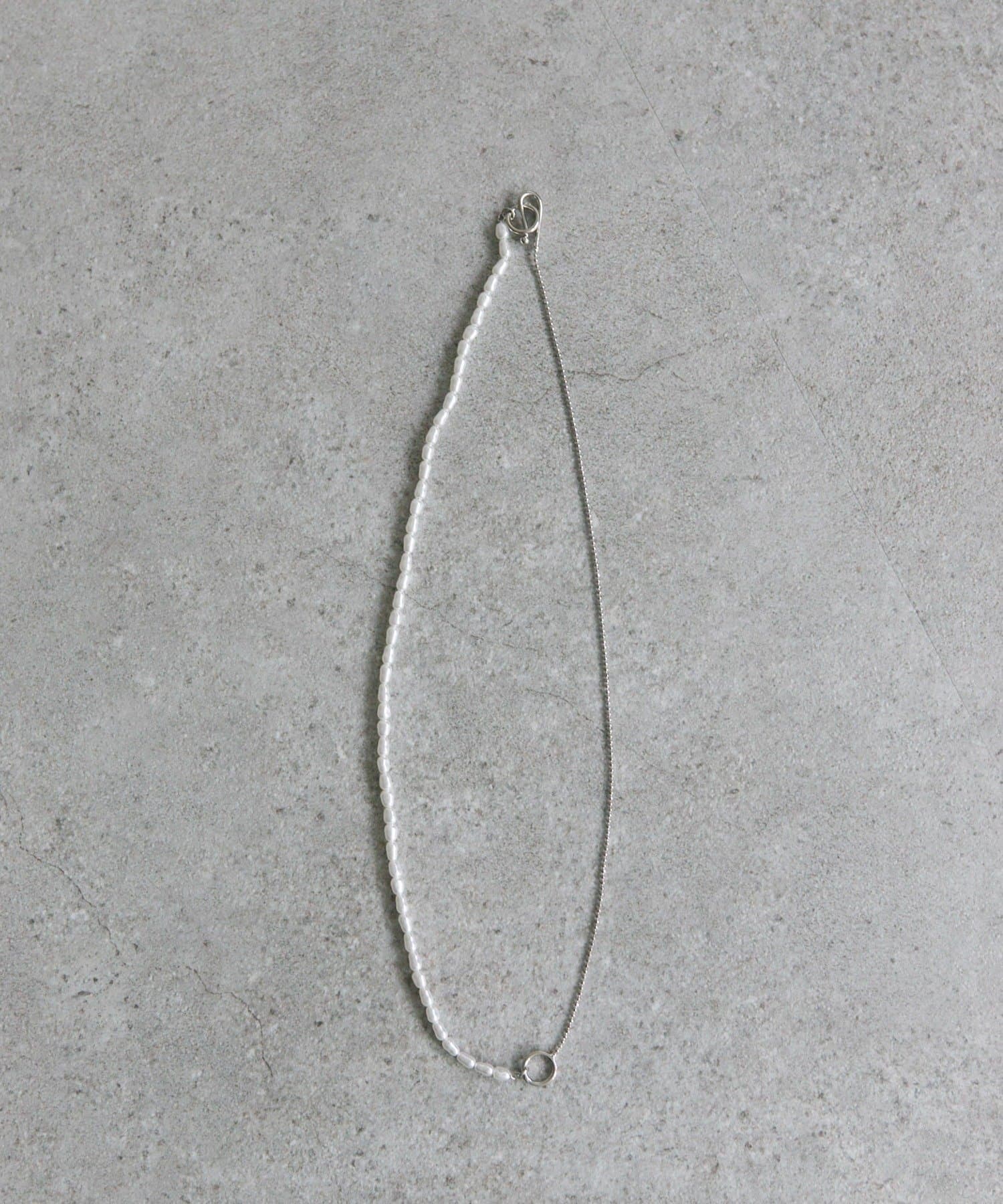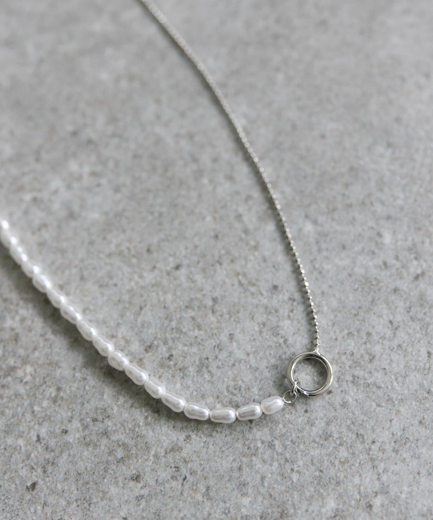 カジュアル使いしやすいよう、チェーンとのコンビネーションのネックレス