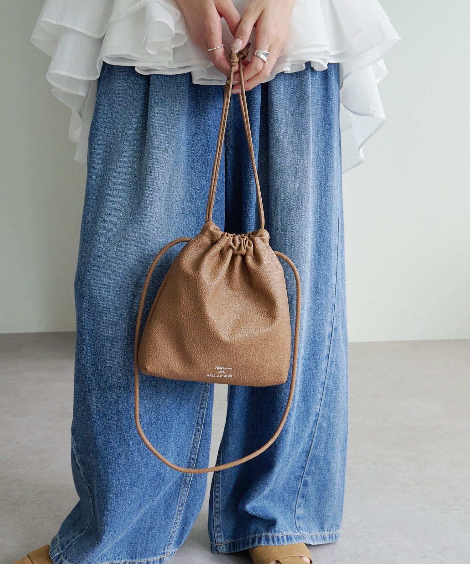 【リバイバル/新色登場】フェイクレザー巾着バッグ
