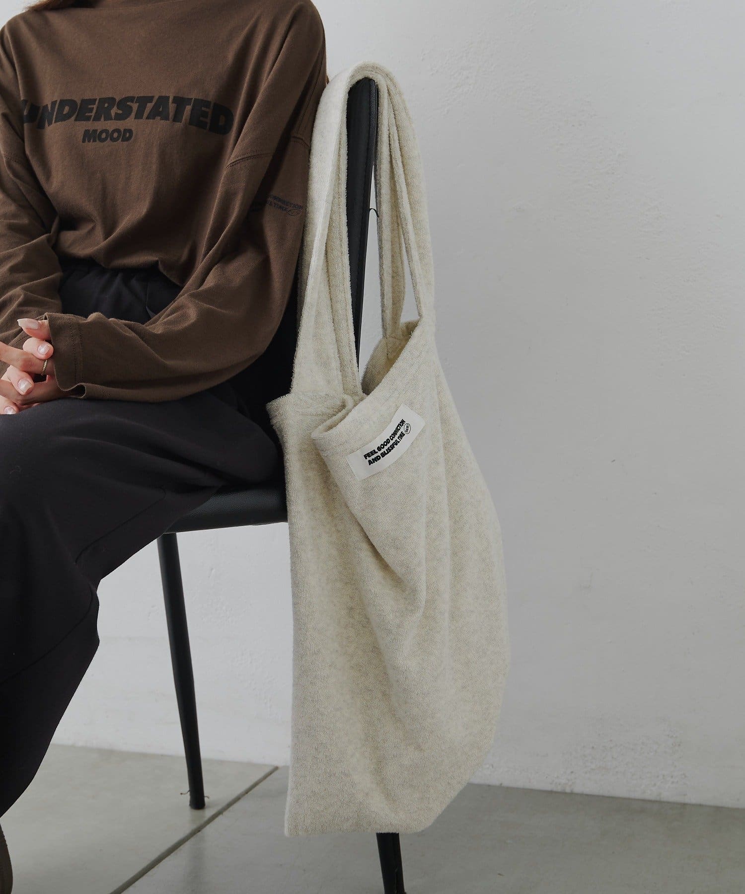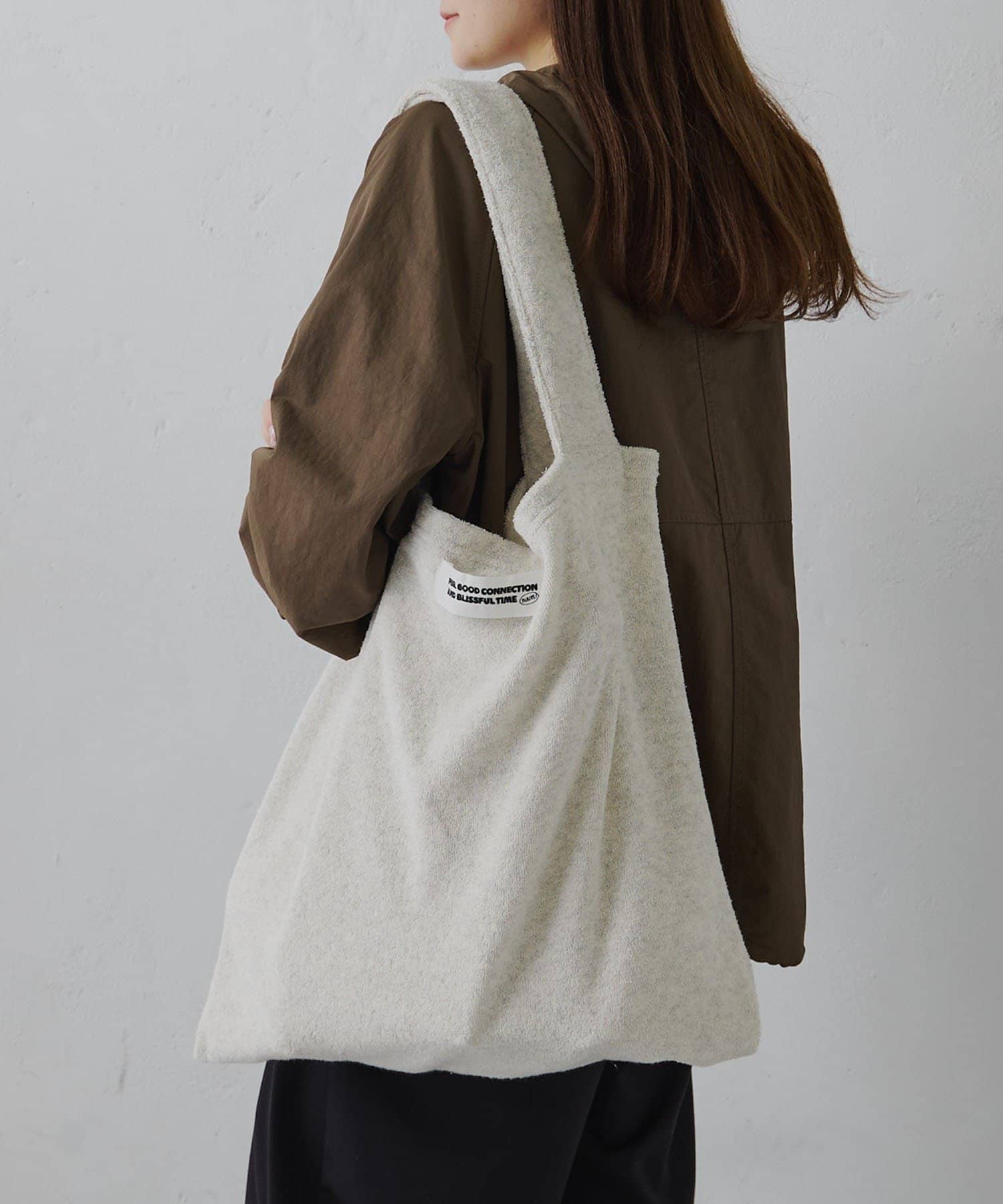 くたっとした柔らかなタオル地が印象的なバッグ。
