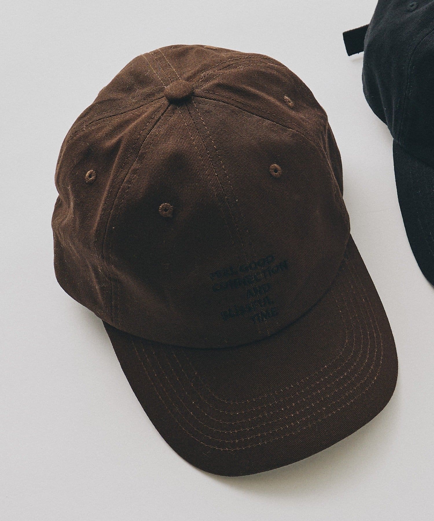 フロントのブランドロゴ刺繍デザインが目を惹くキャップ。
