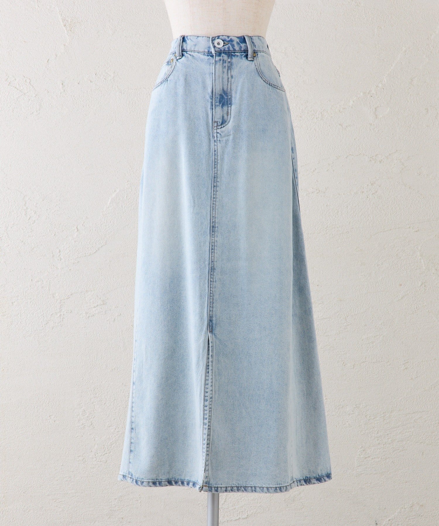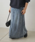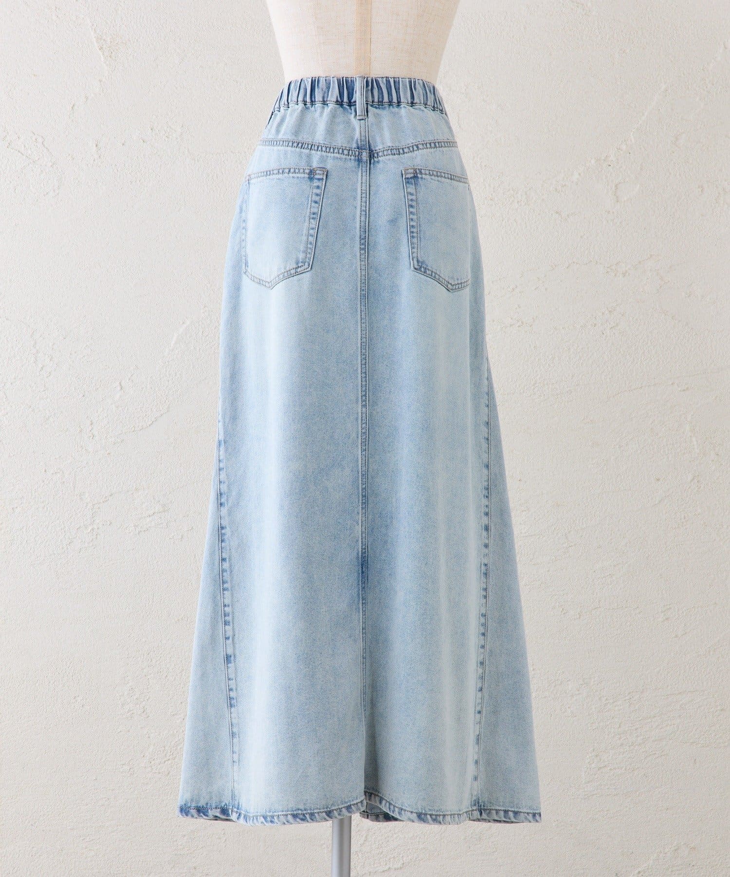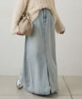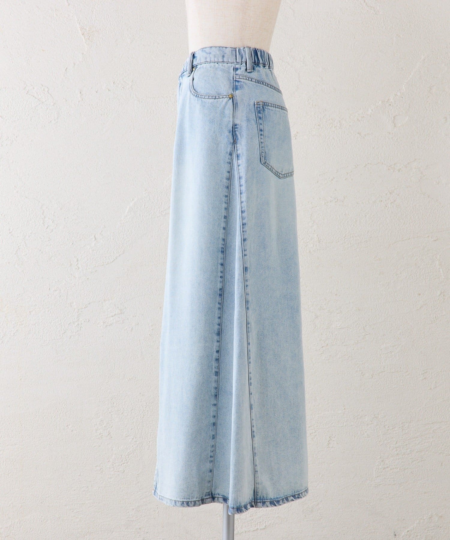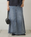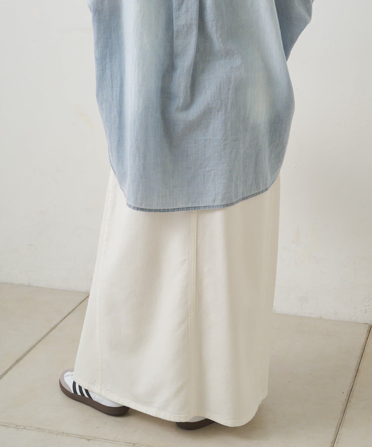 すっきりした台形シルエットと柔らかい履き心地が魅力のデニムロングスカート。