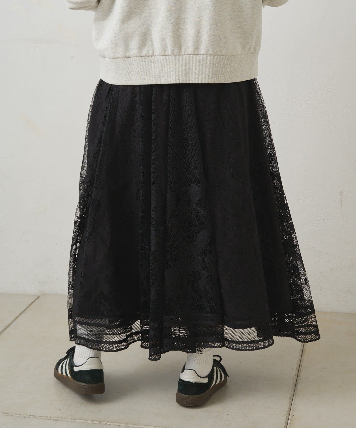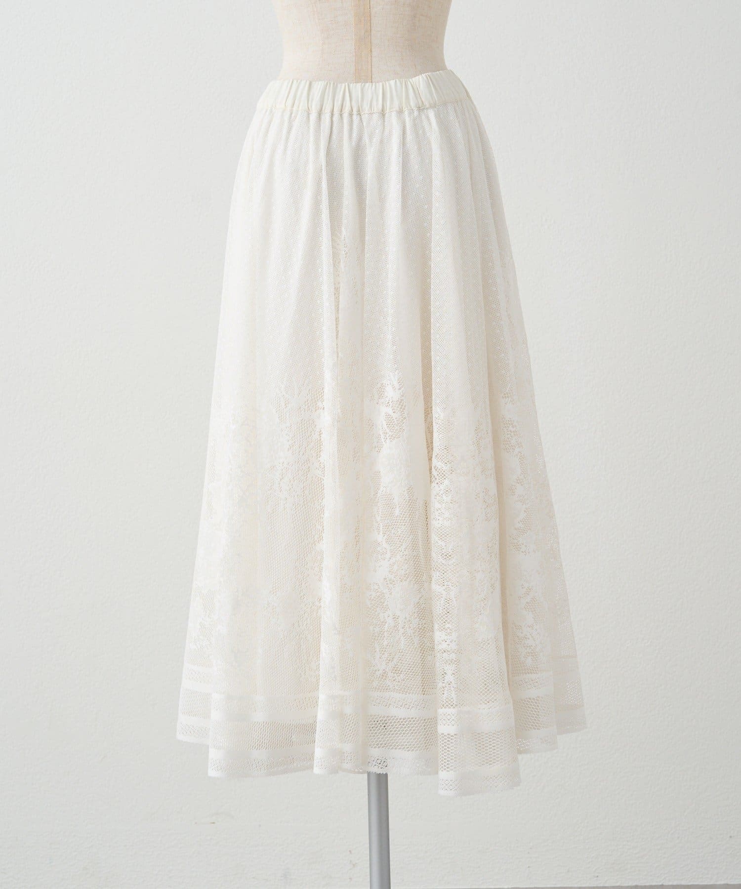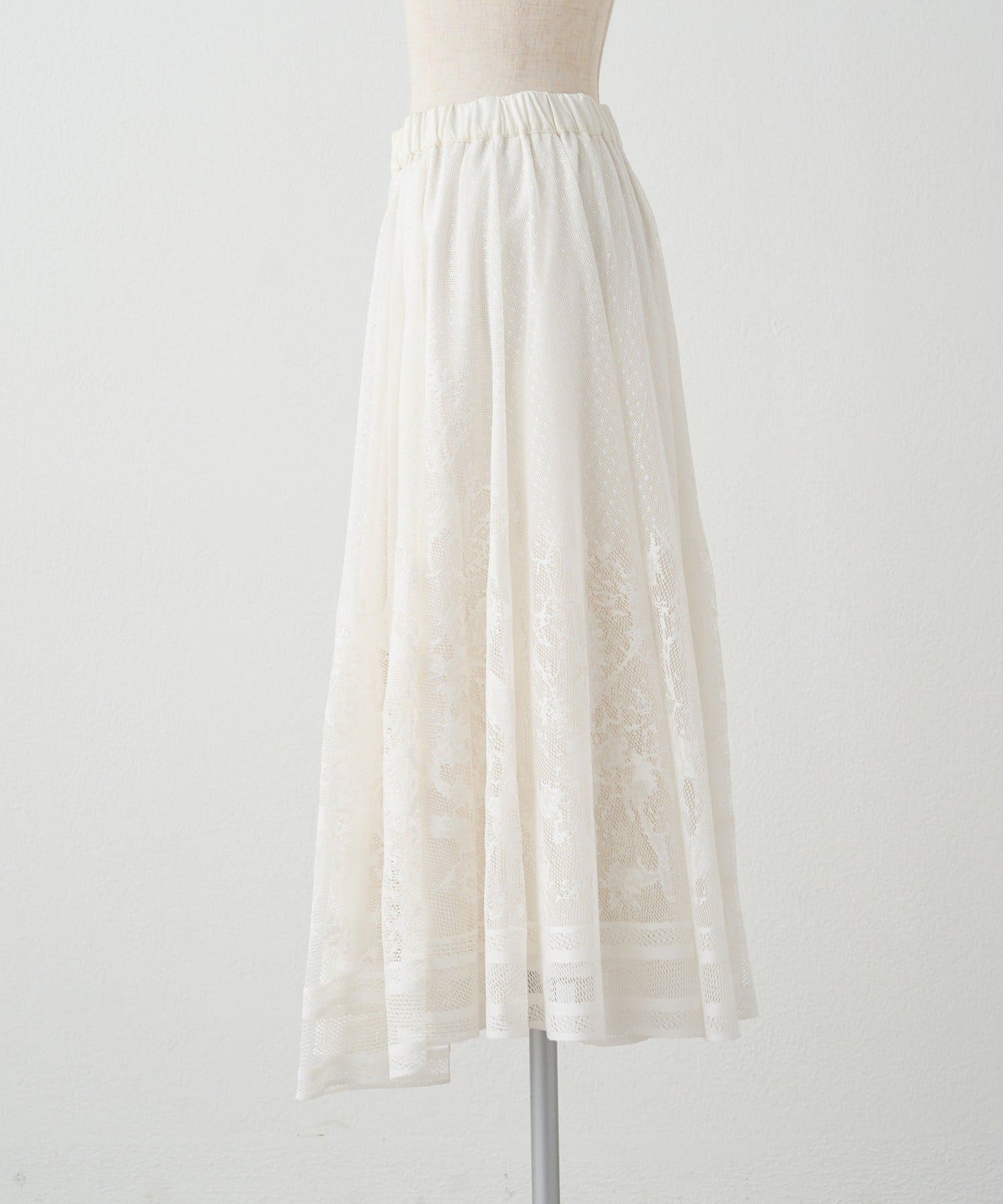 繊細なレース素材を贅沢に使用したフェミニンなロングスカート。