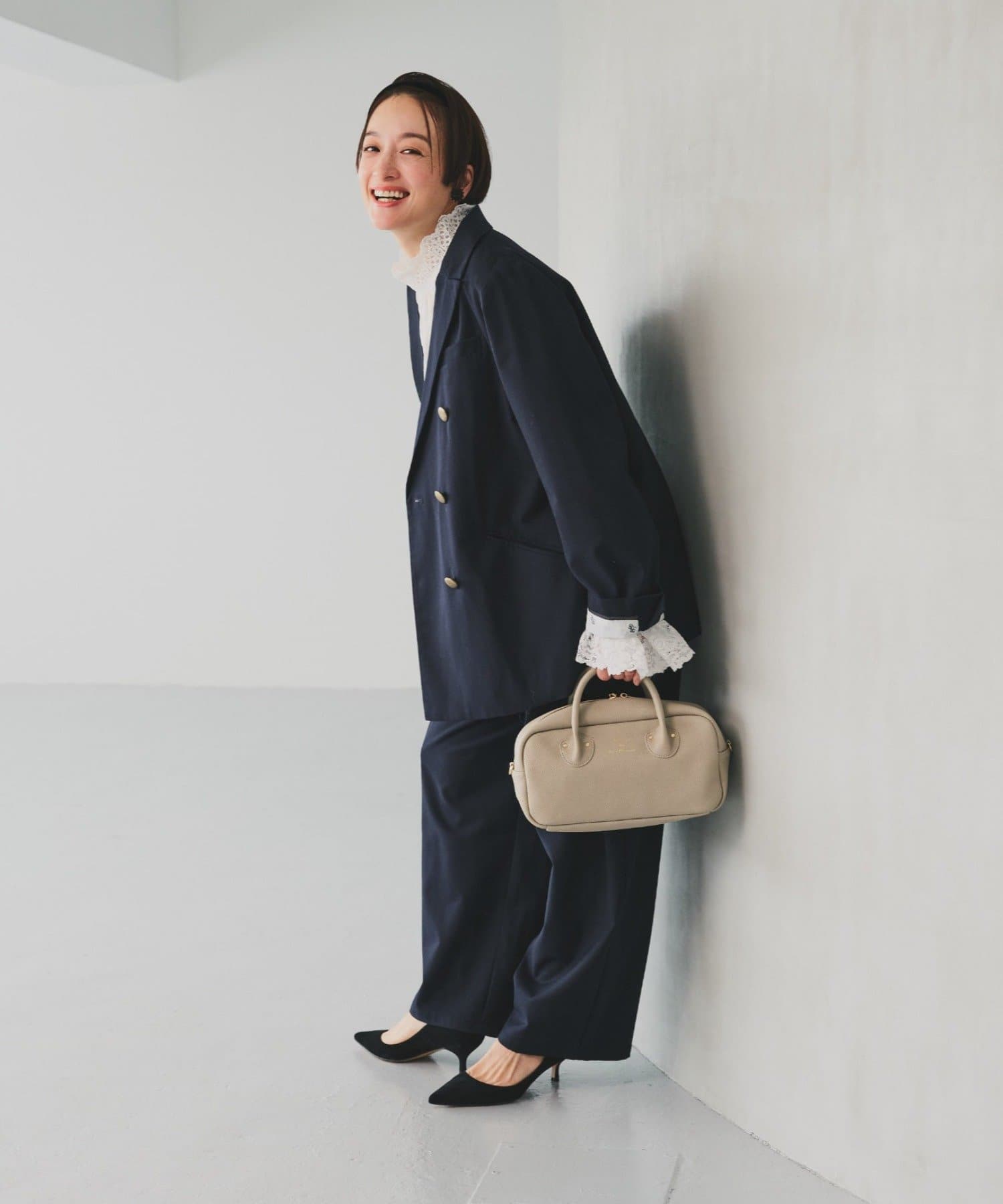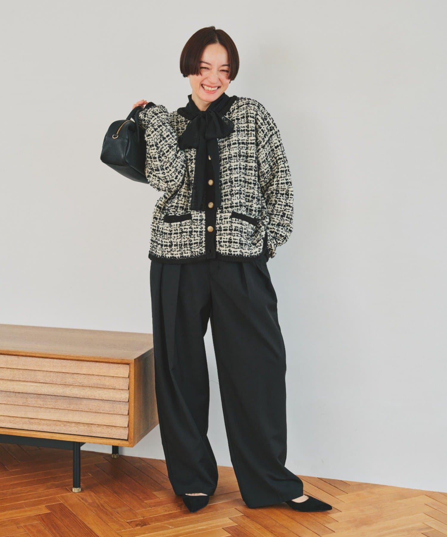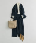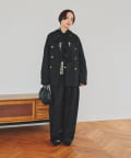 フロントタックのデザインとワイドシルエットでマニッシュな印象に仕上げた一着。