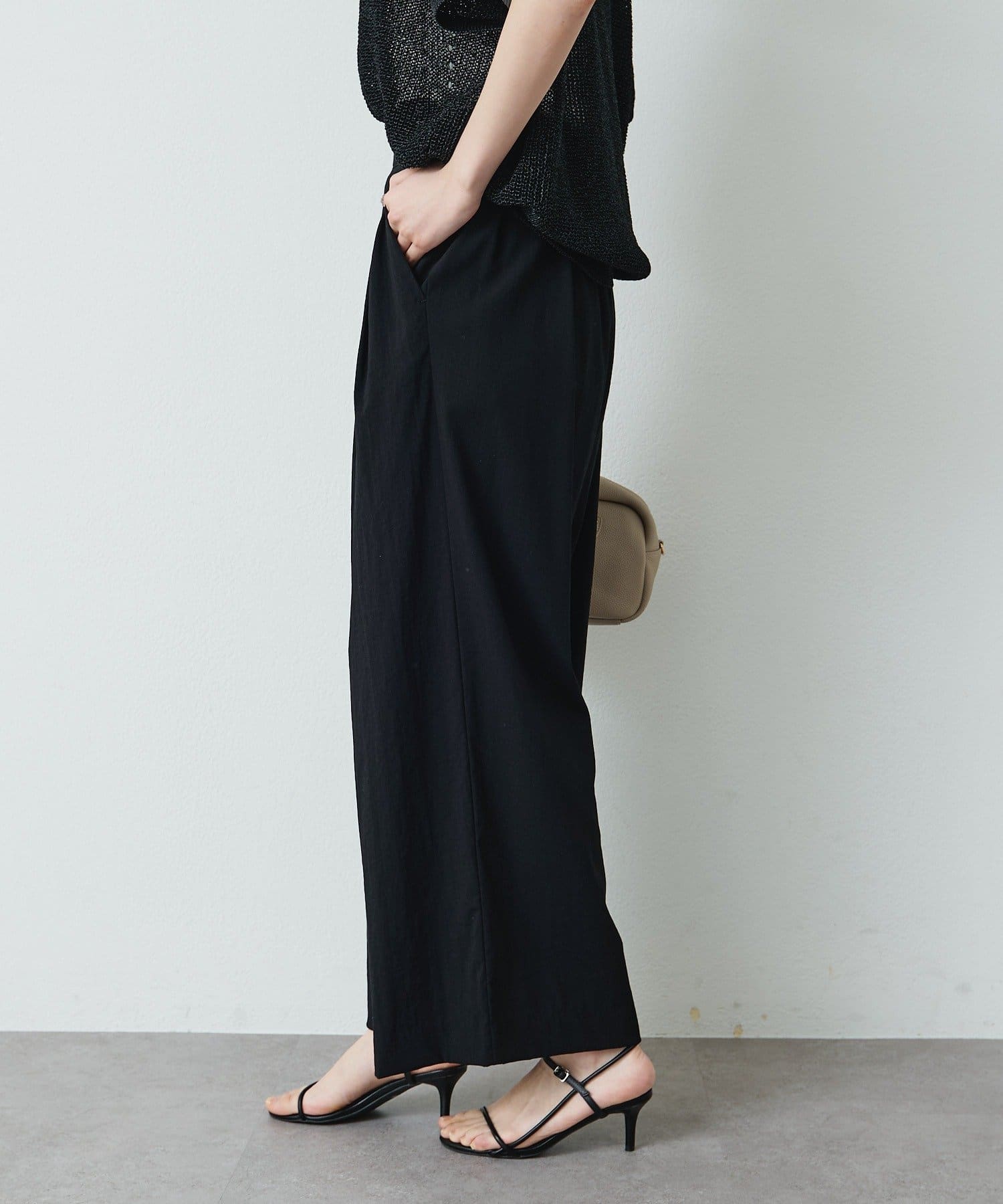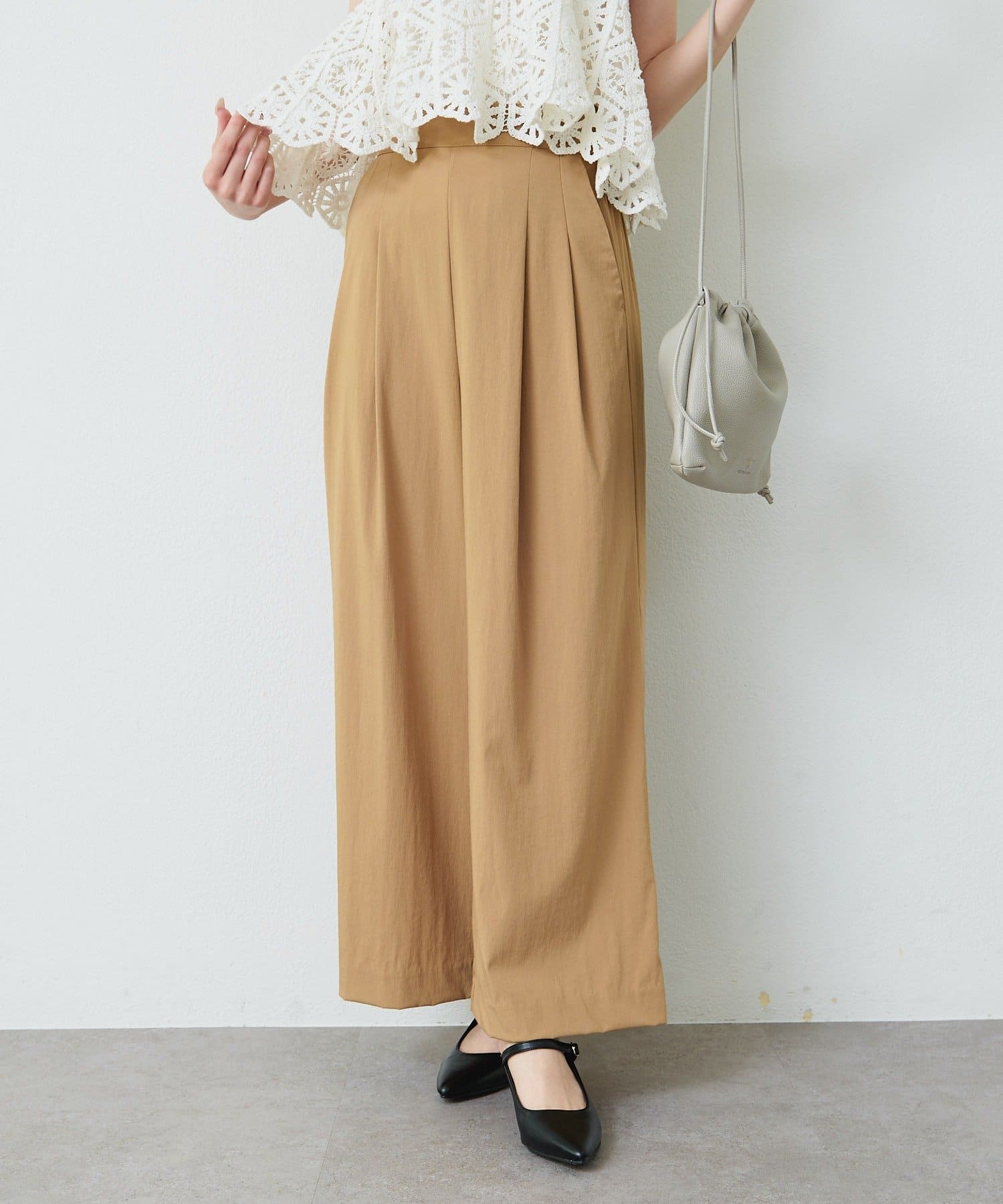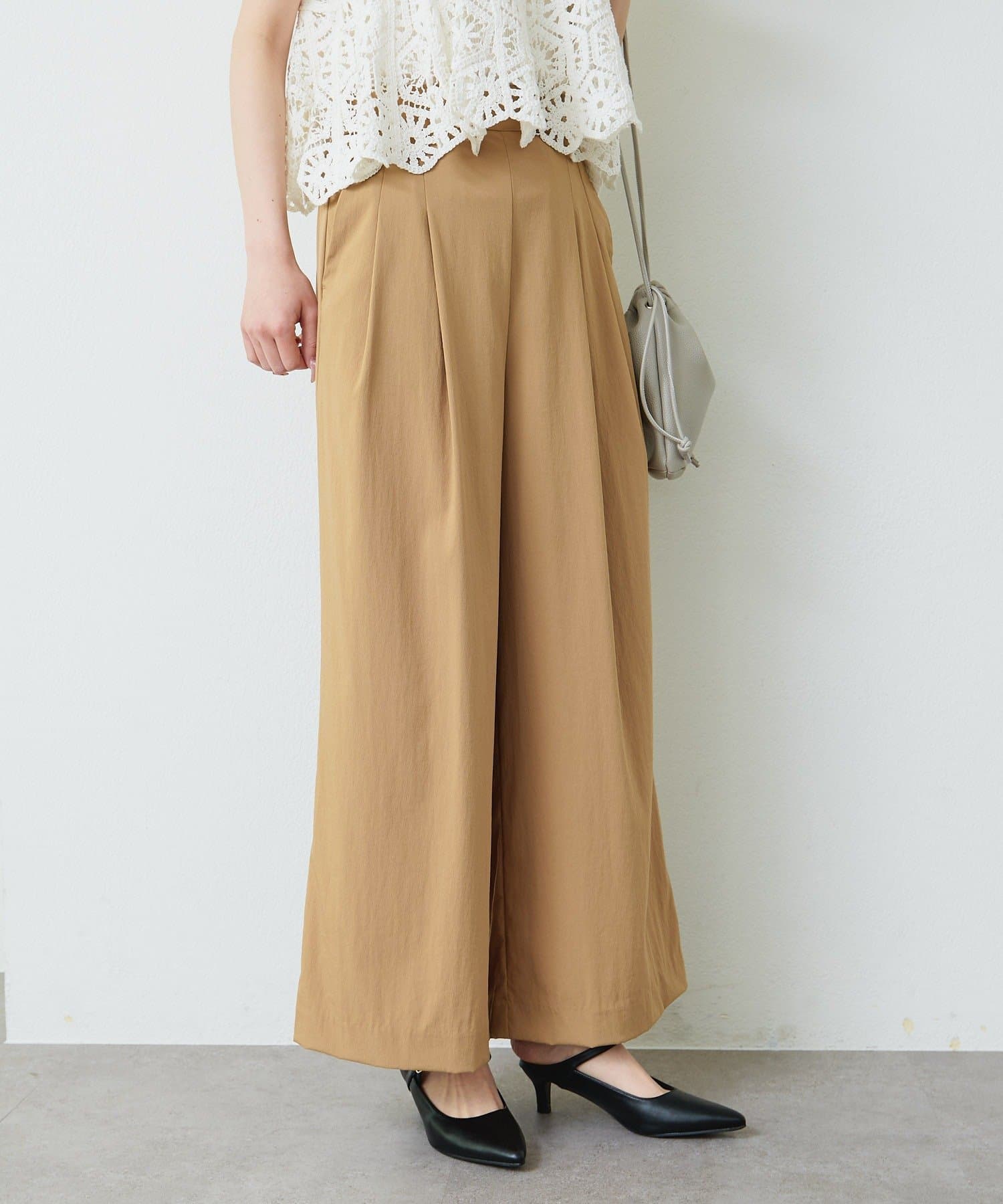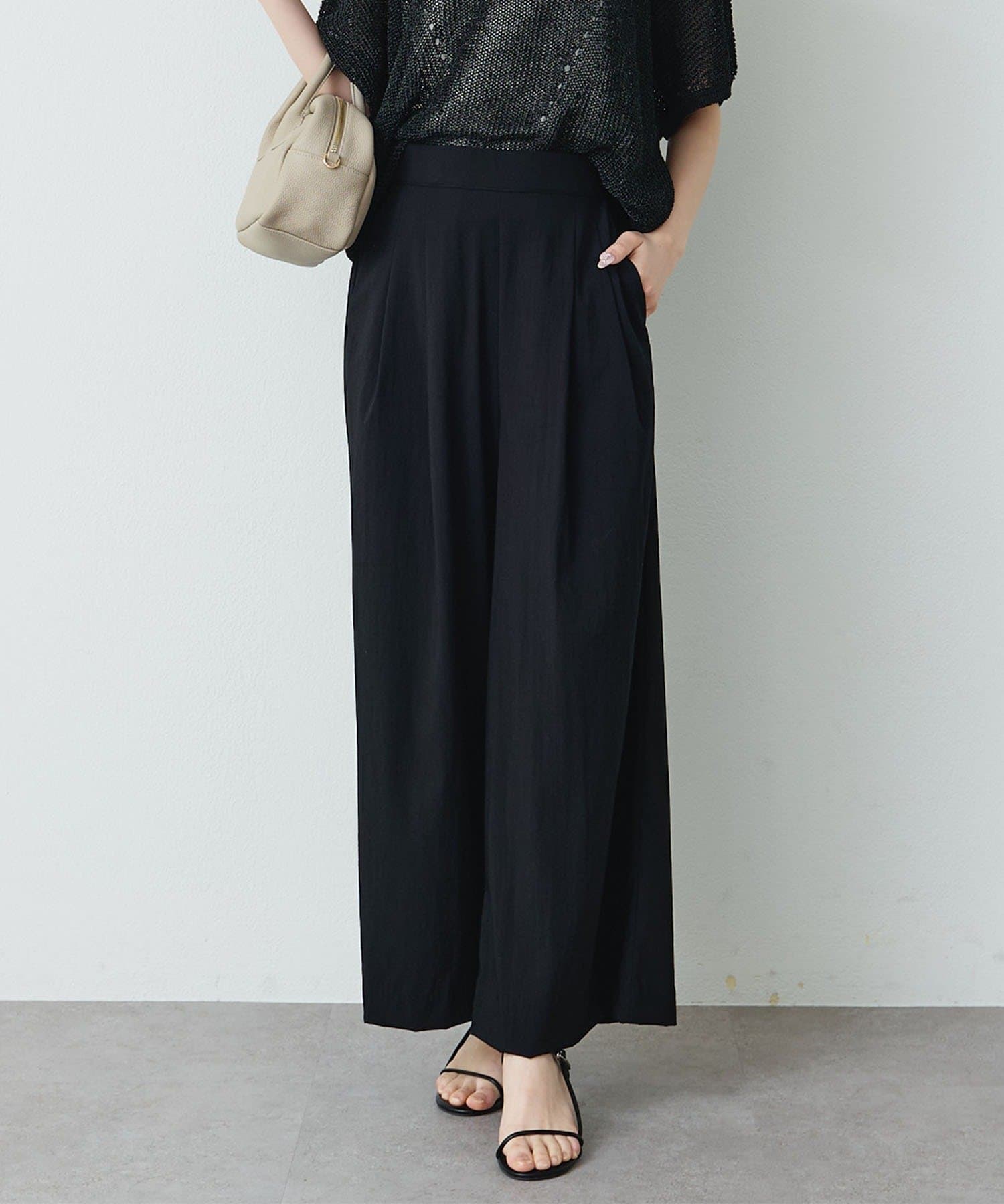 • PUAL CE CIN(ピュアルセシン) レーヨンナイロンストレッチタックワイドパンツ