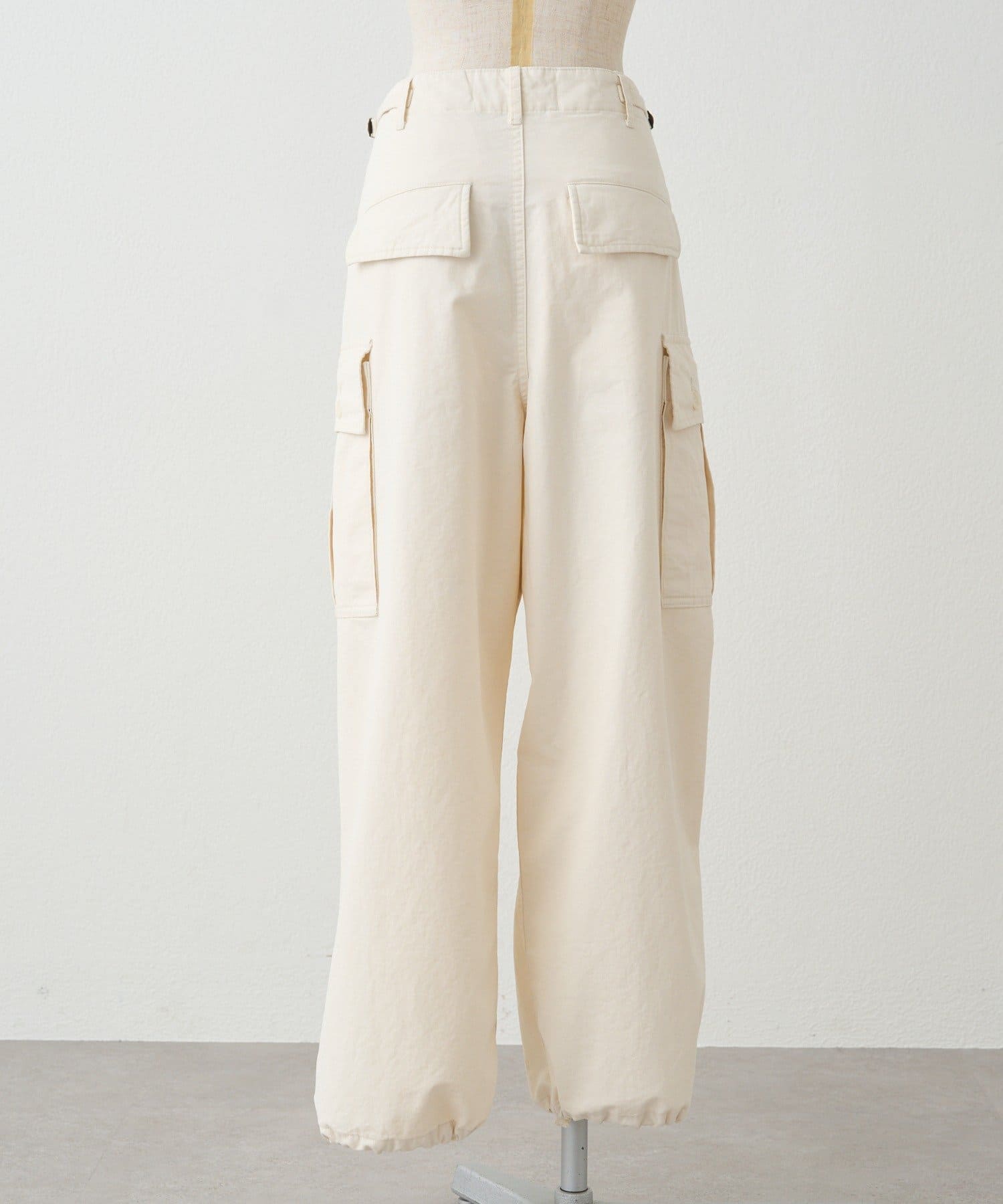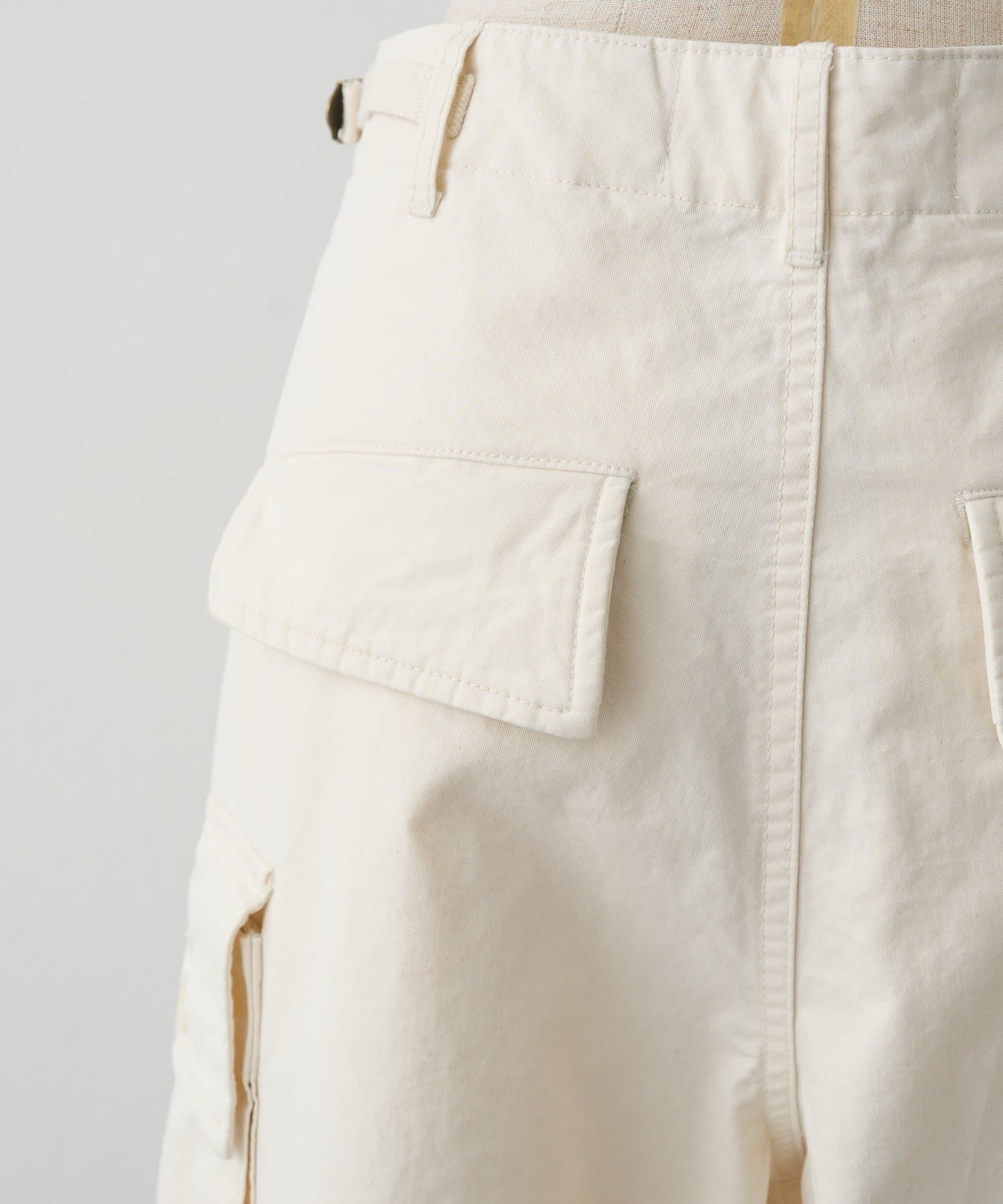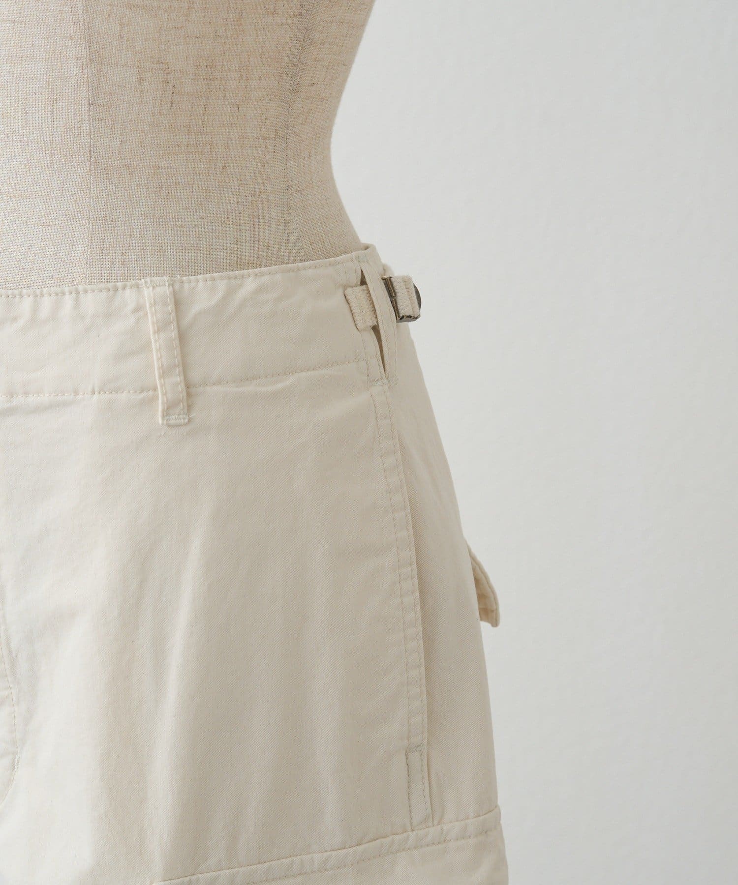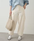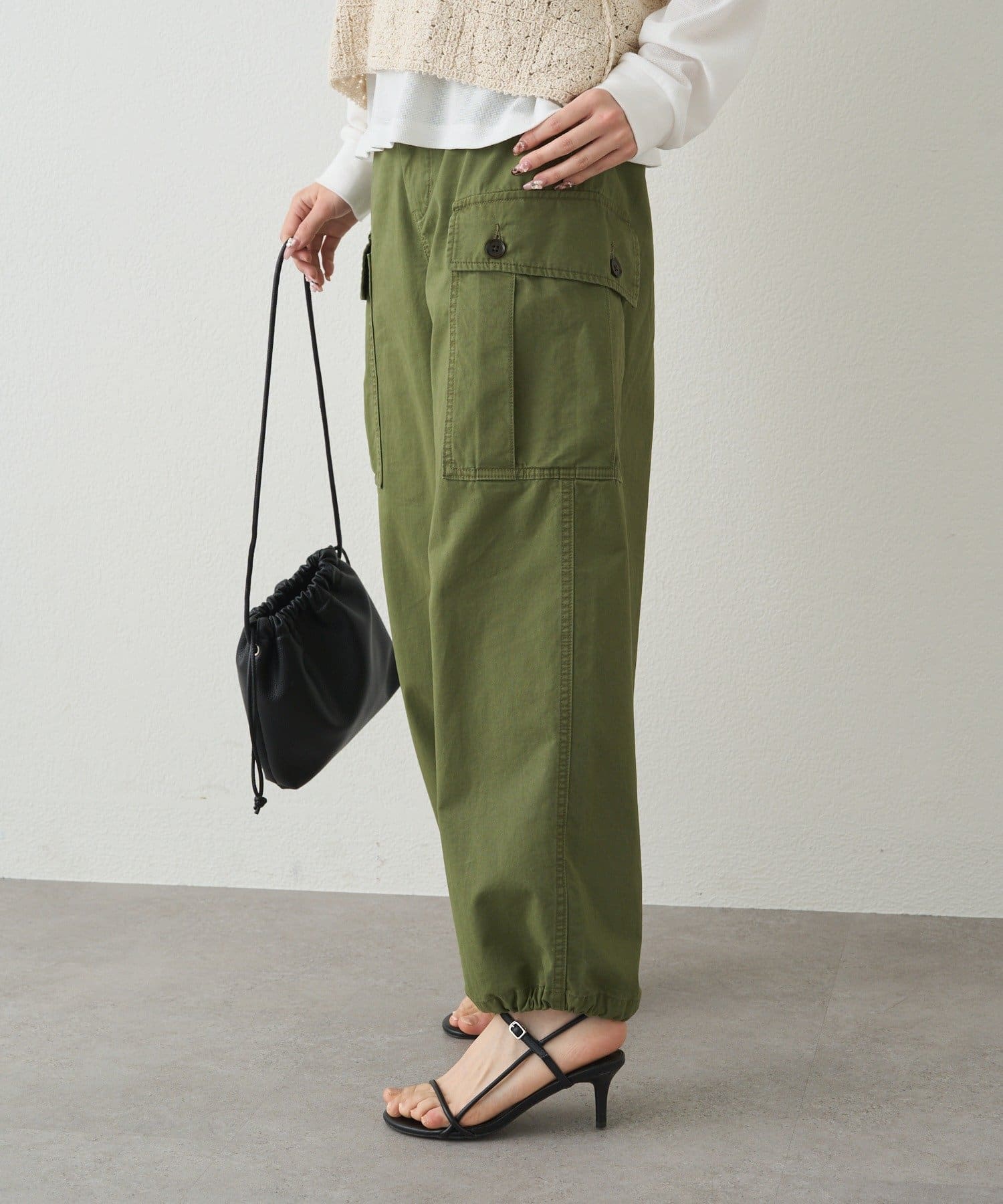 カーゴパンツ特有のサイドポケットを大きめにデザインし、このアイテムのチャームポイントに。