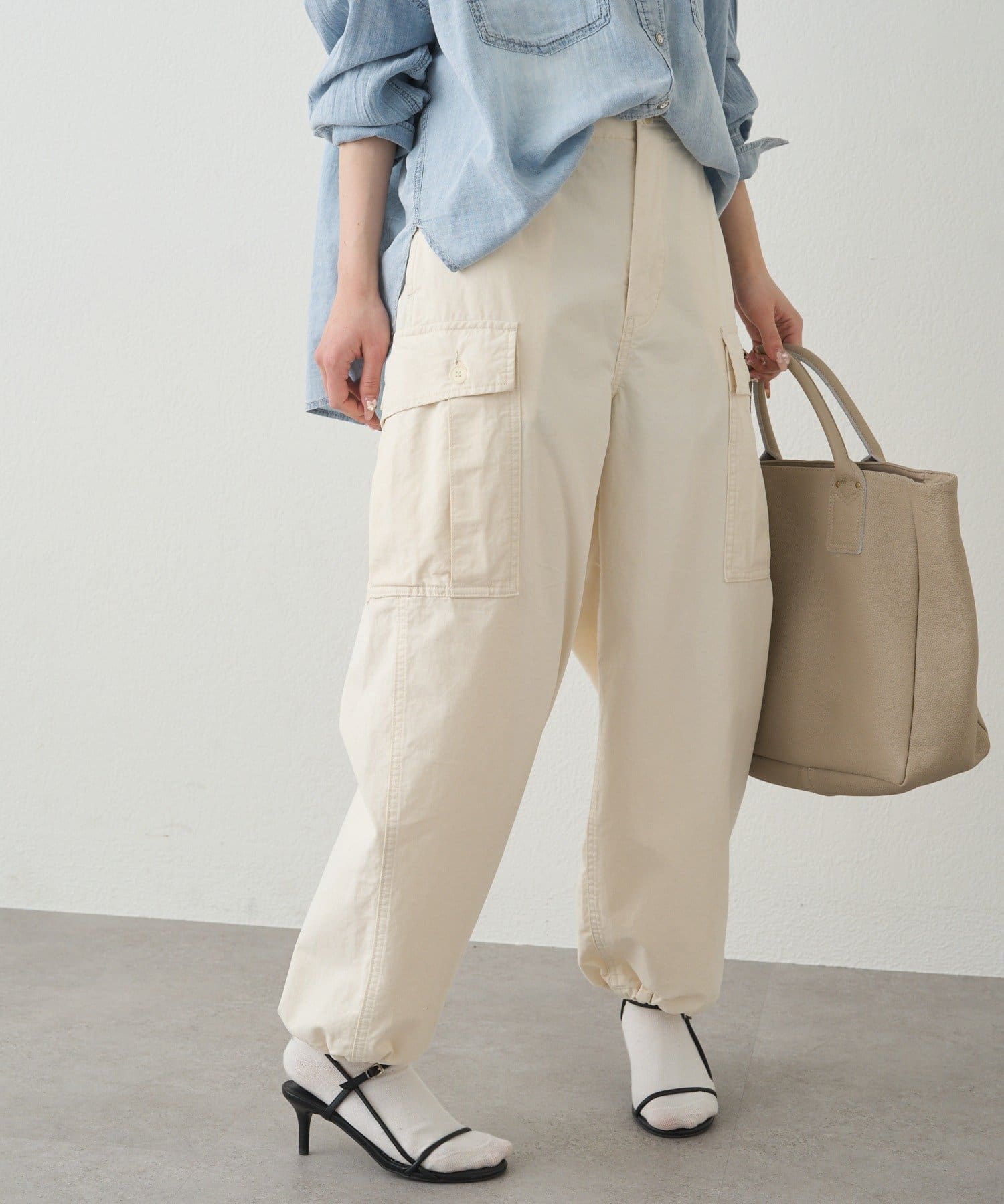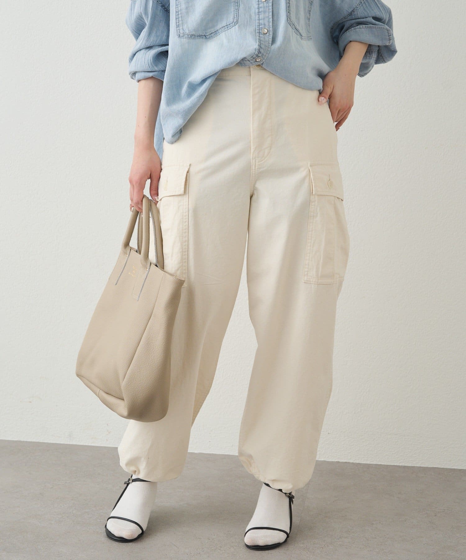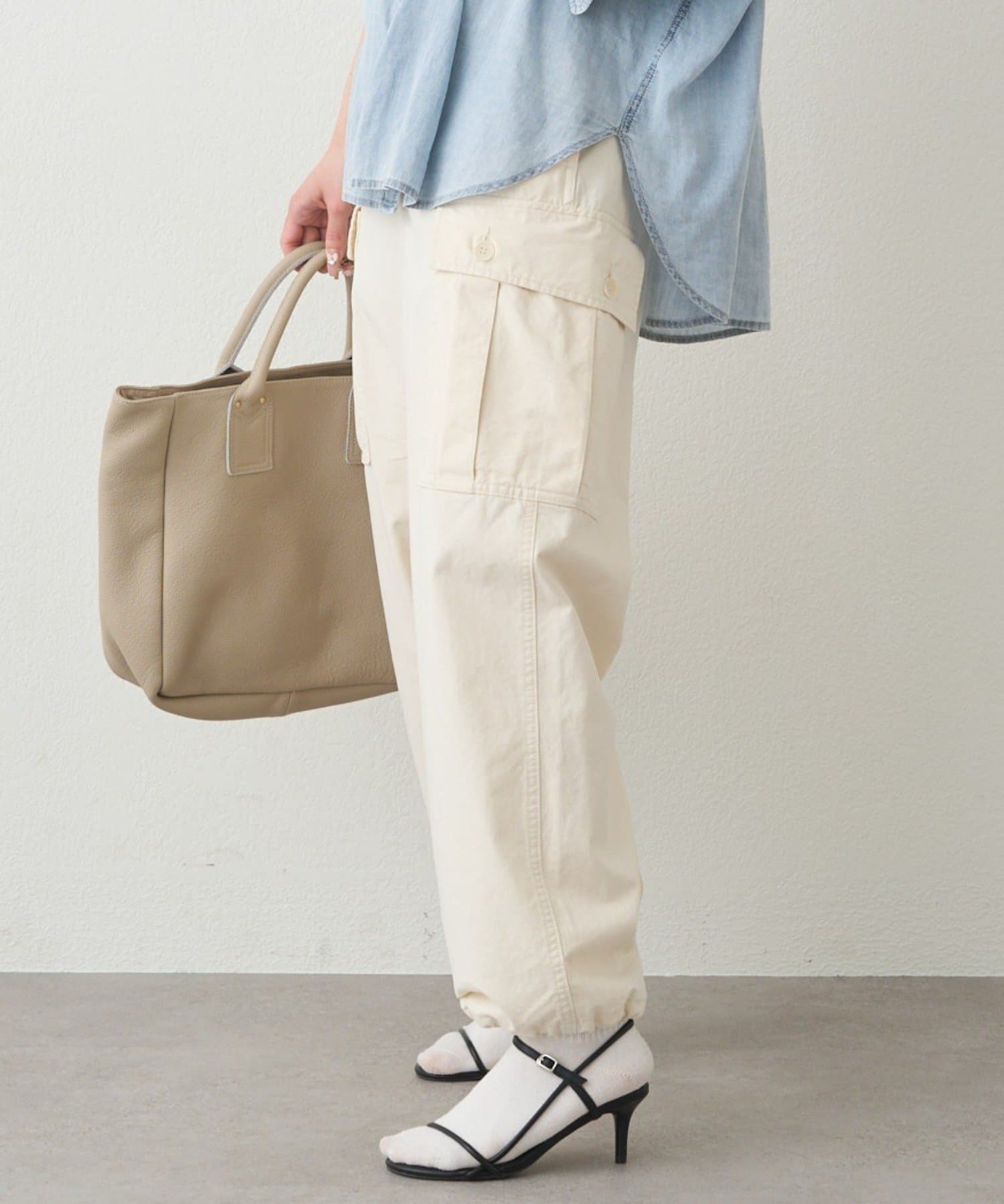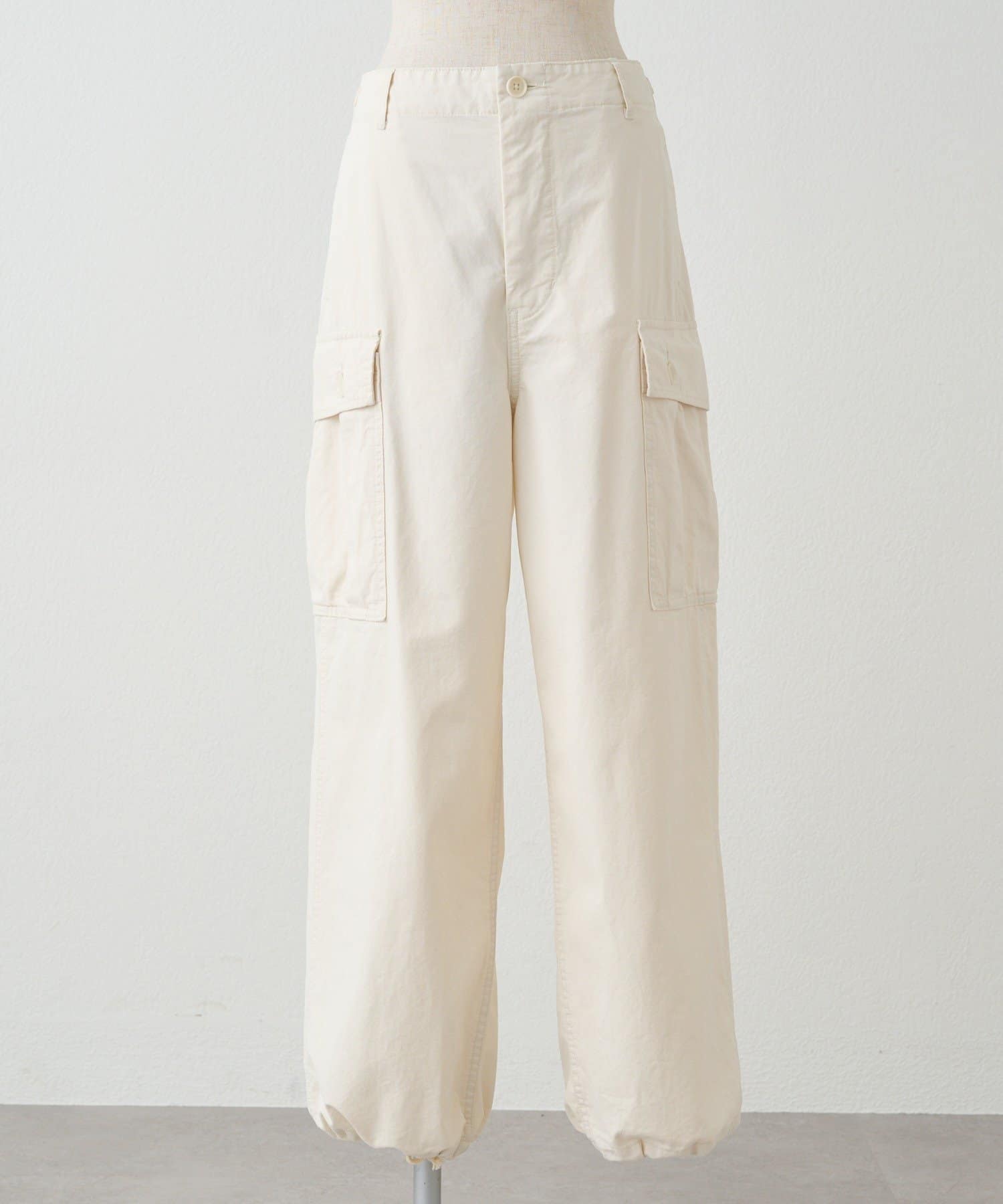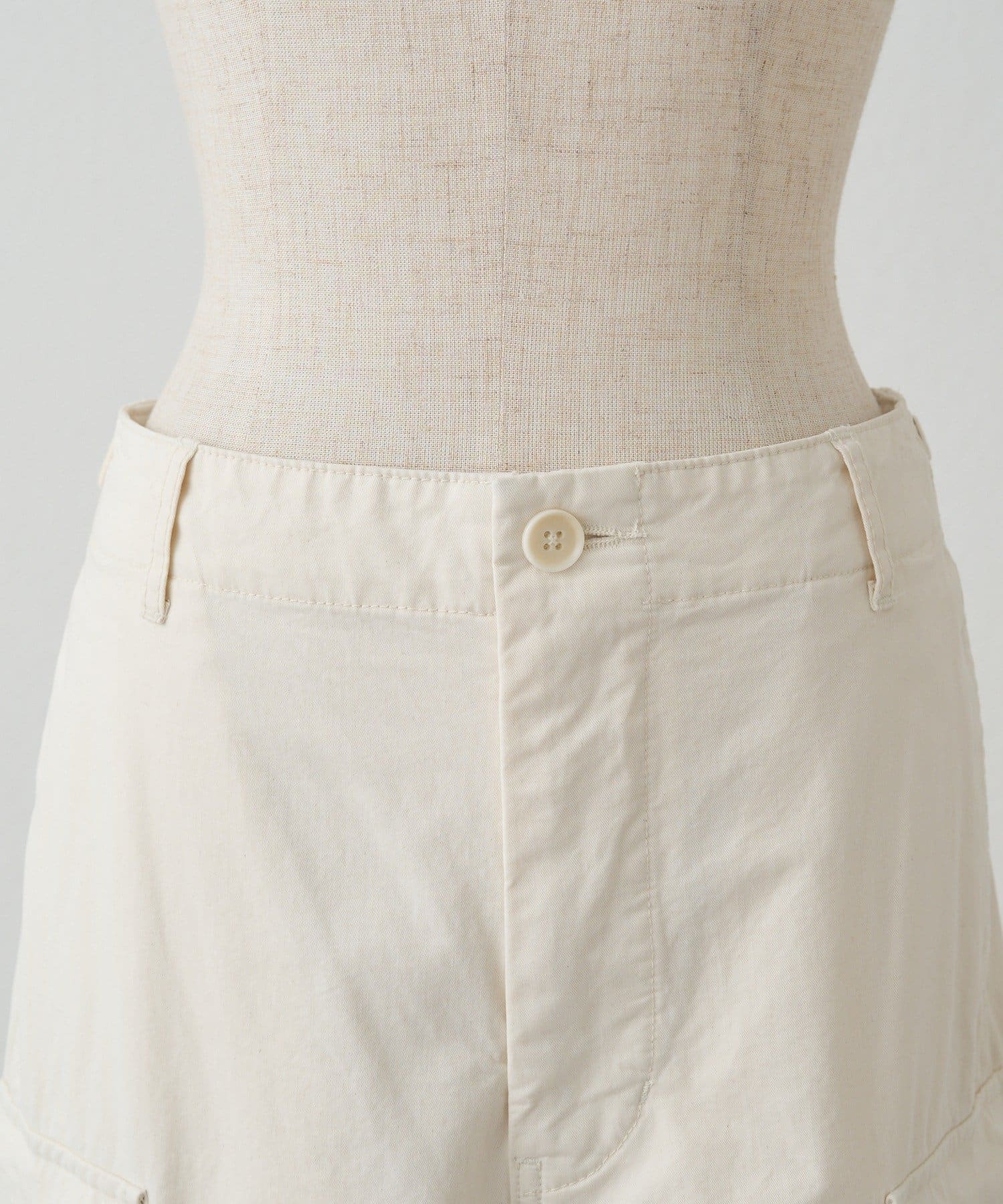 カーゴパンツ特有のサイドポケットを大きめにデザインし、このアイテムのチャームポイントに。
