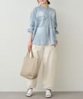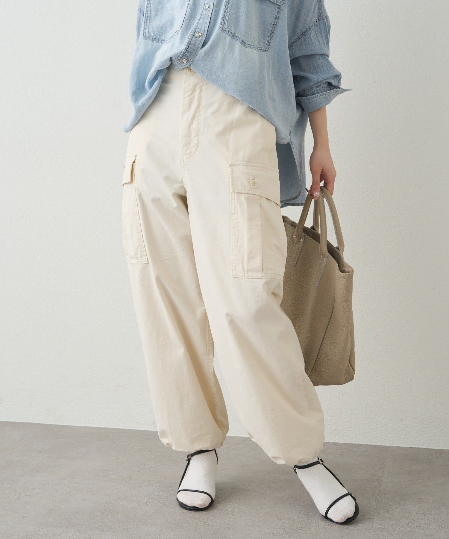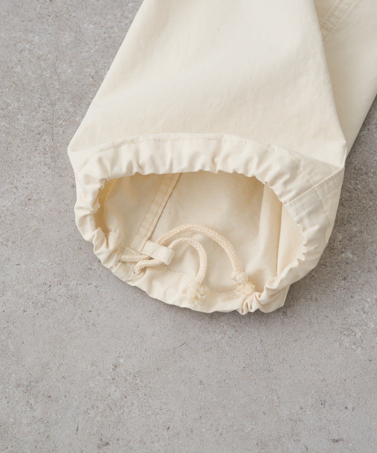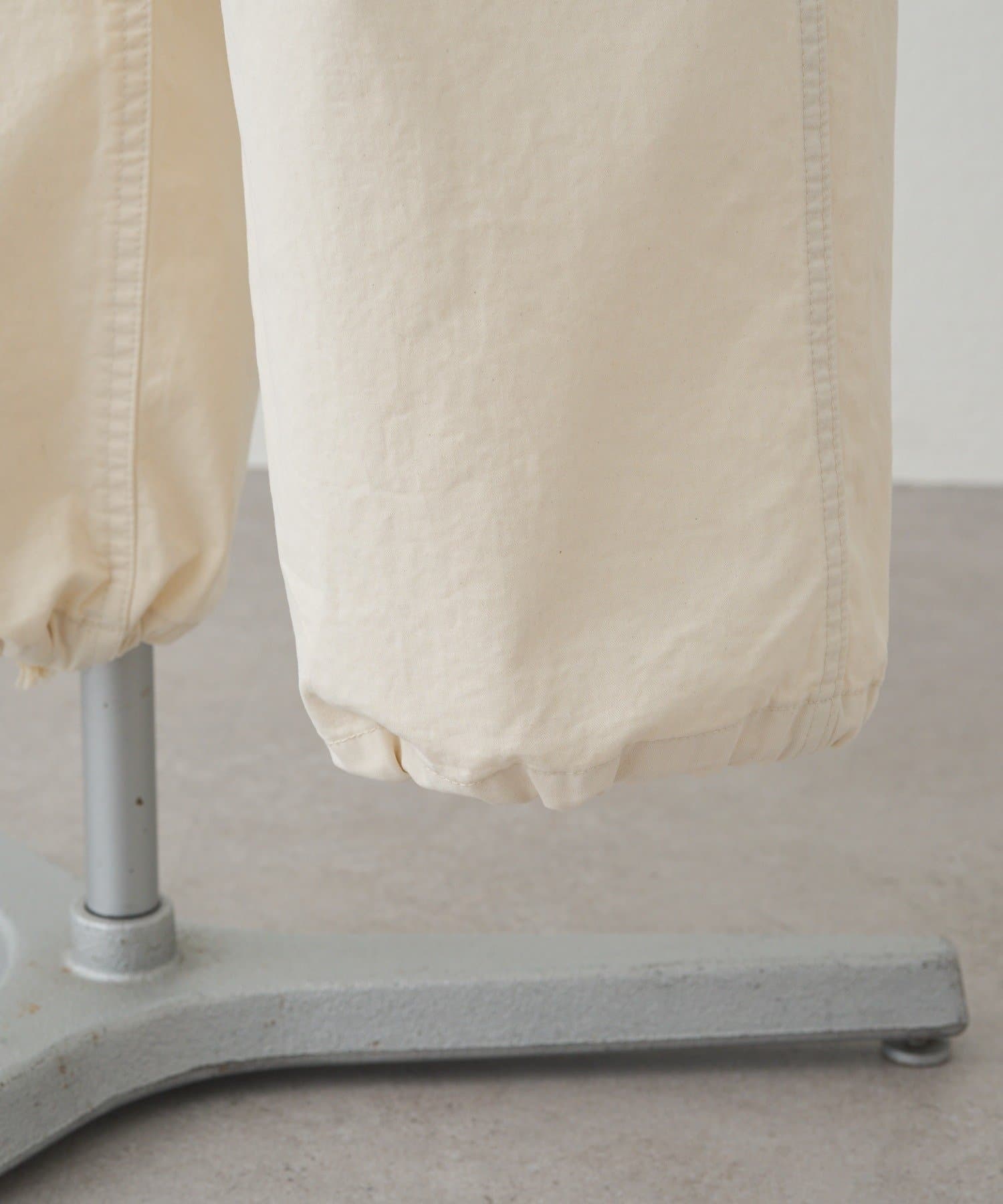パンツ裾に通した紐をギュっと絞れば、バルーンシルエットに、