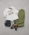カレッジロゴやビッグロゴのカットソーとのカジュアルなスタイリングには、