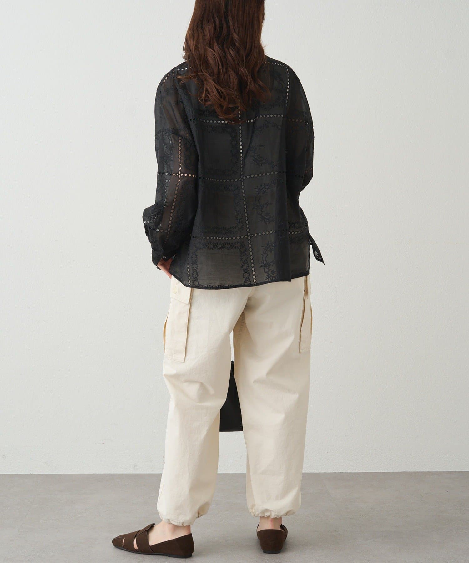透け感のあるメッシュニットやシアーブラウスと合わせると、これからの時期にピッタリの爽やかな着こなしに。