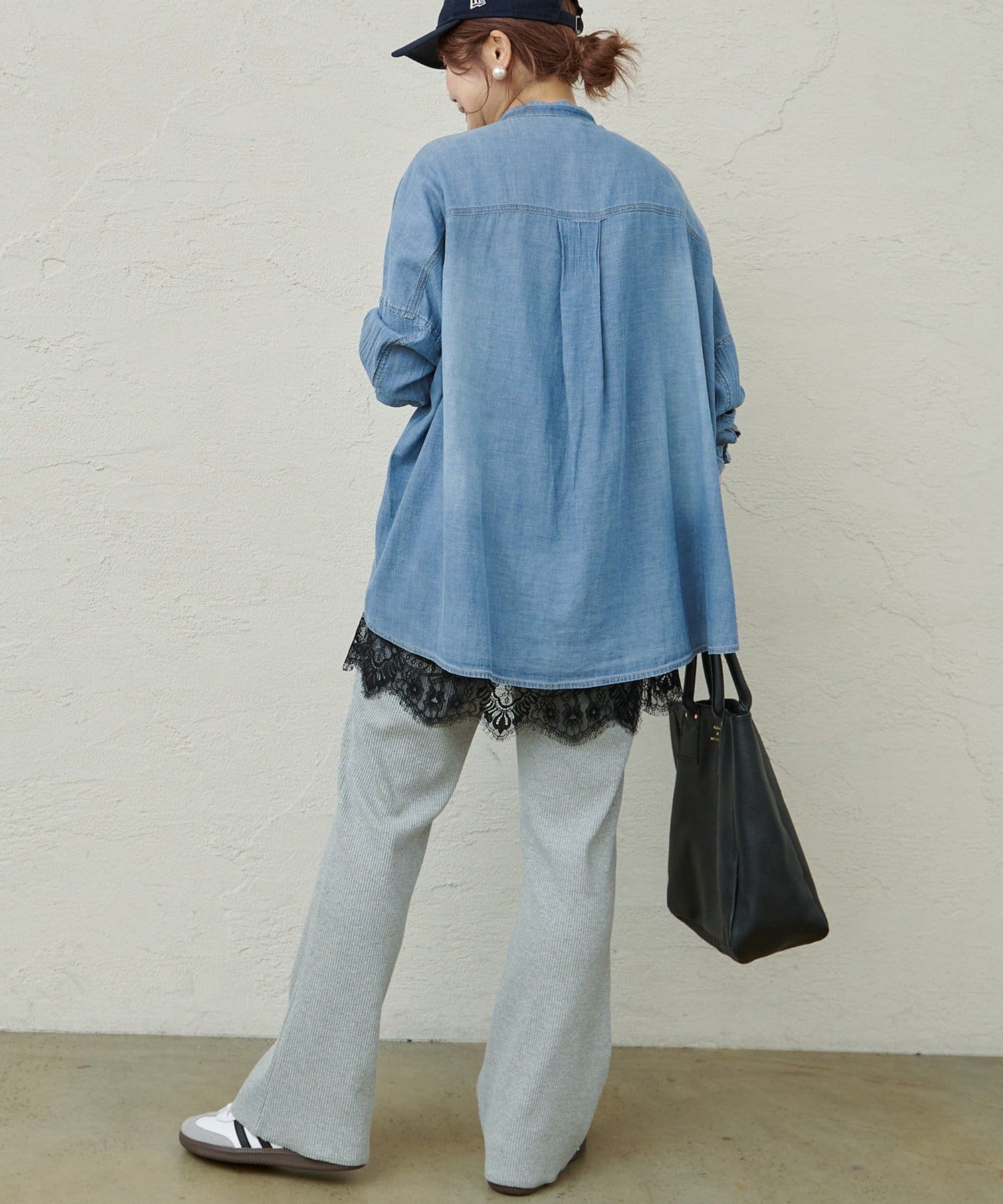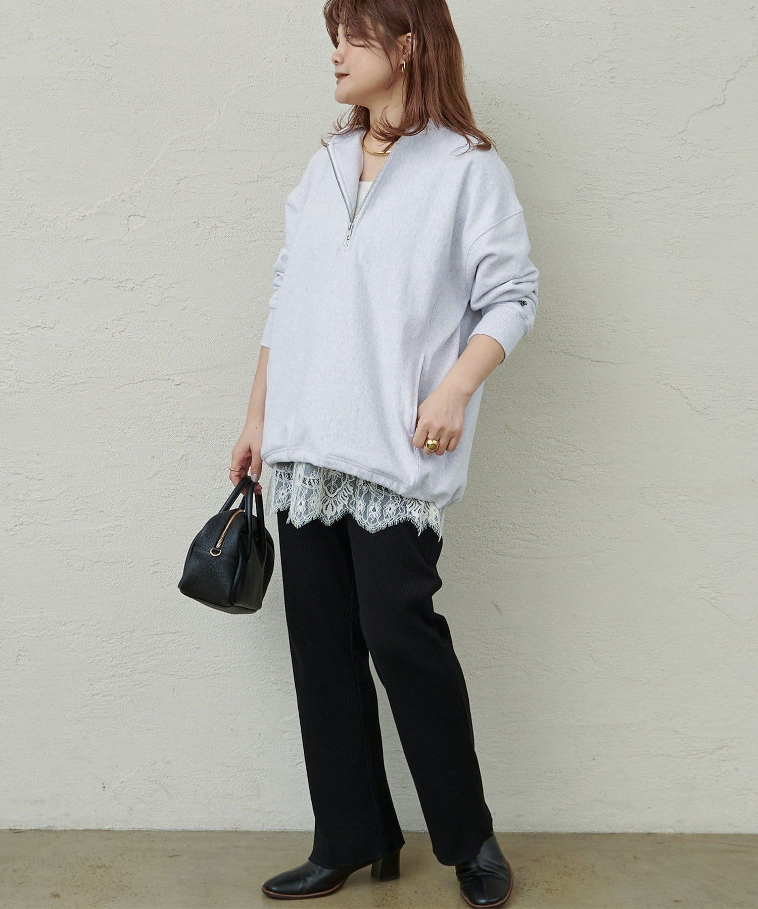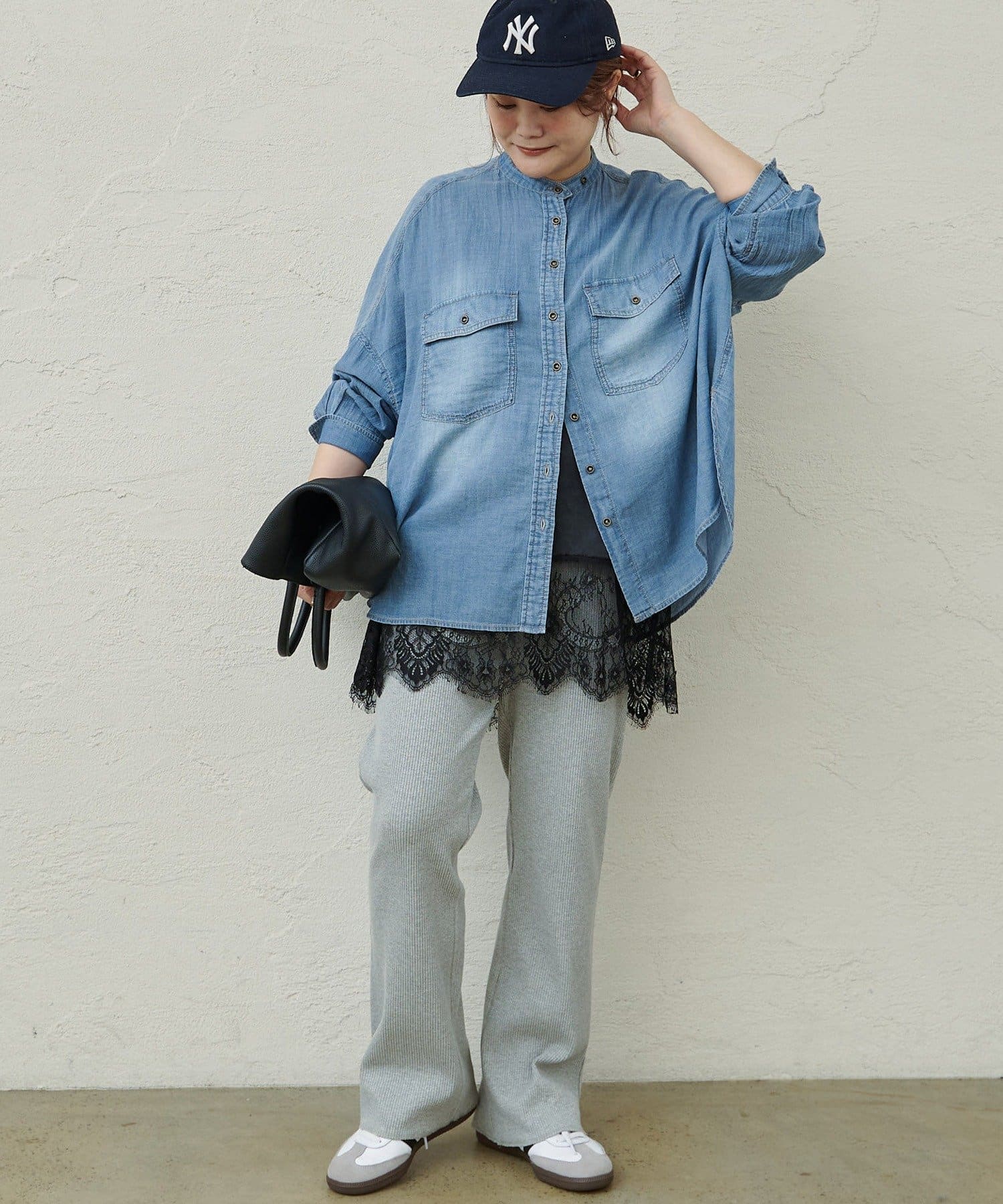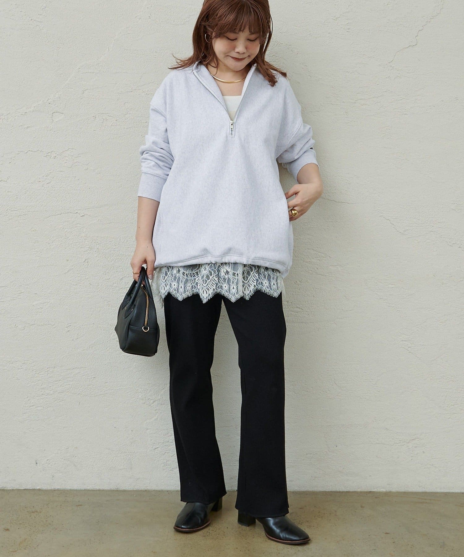 ボトム選びに悩みがちなオーバーサイズのトップスと相性良く、バランスの取れたスタイリングに。
