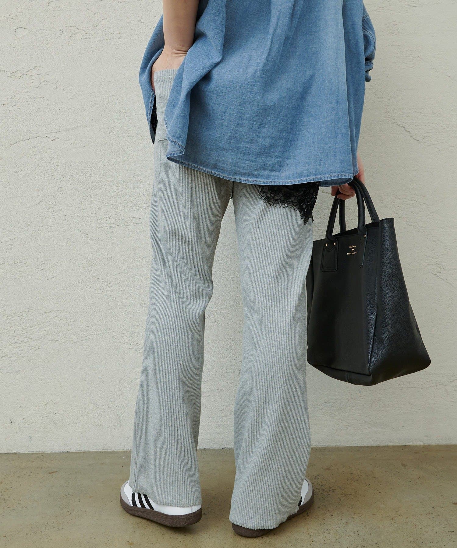 カジュアルながらもどこか上品さが漂う履き心地の良いリブパンツは、