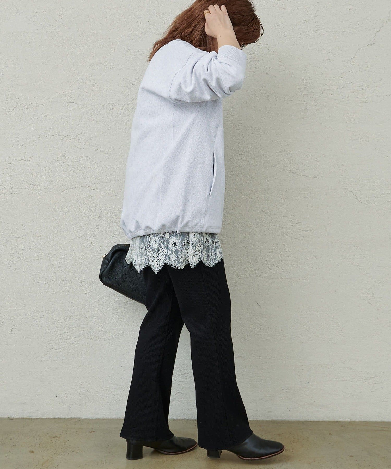 着用感:低身長でも、リブ生地の微フレアシルエットで縦見えしすっきりと着用できました。