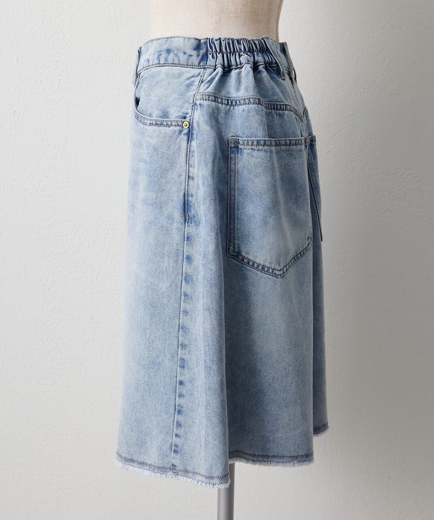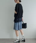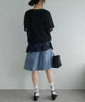 膝にかかる短すぎない絶妙な丈感は、肌見せに抵抗がある方も取り入れやすいポイント。