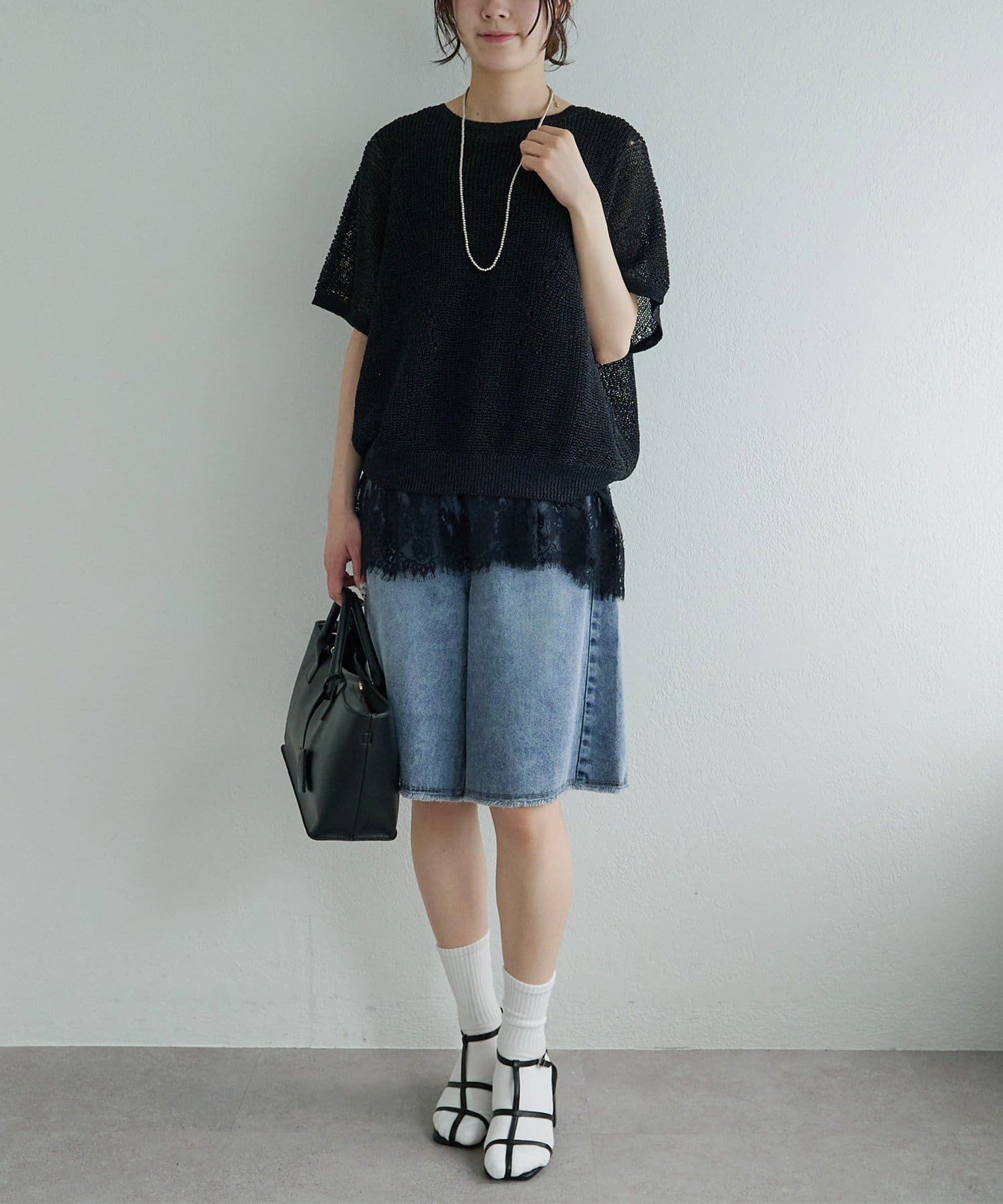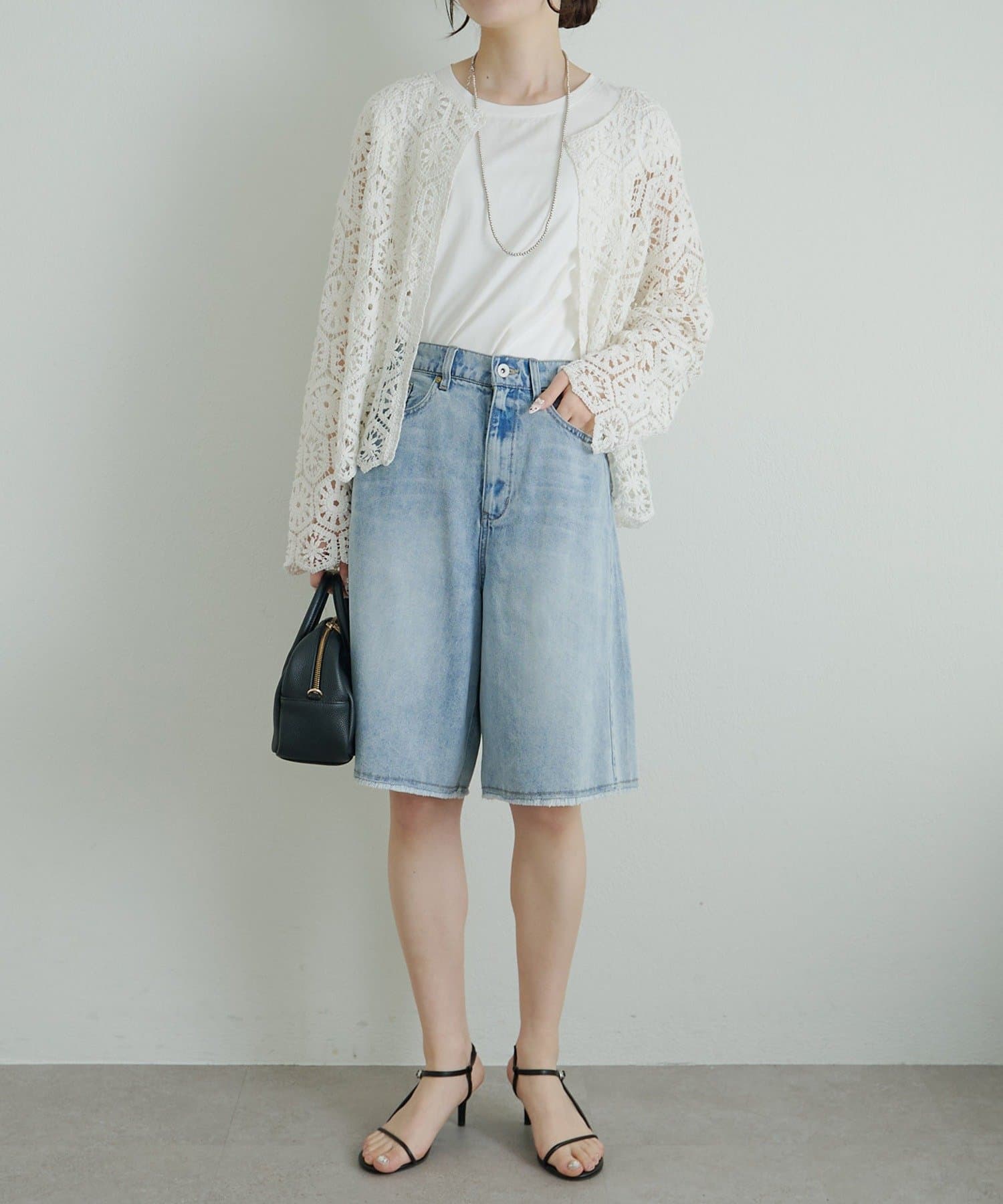 トレンドのデニムハーフパンツを大人スタイルにブラッシュアップ。