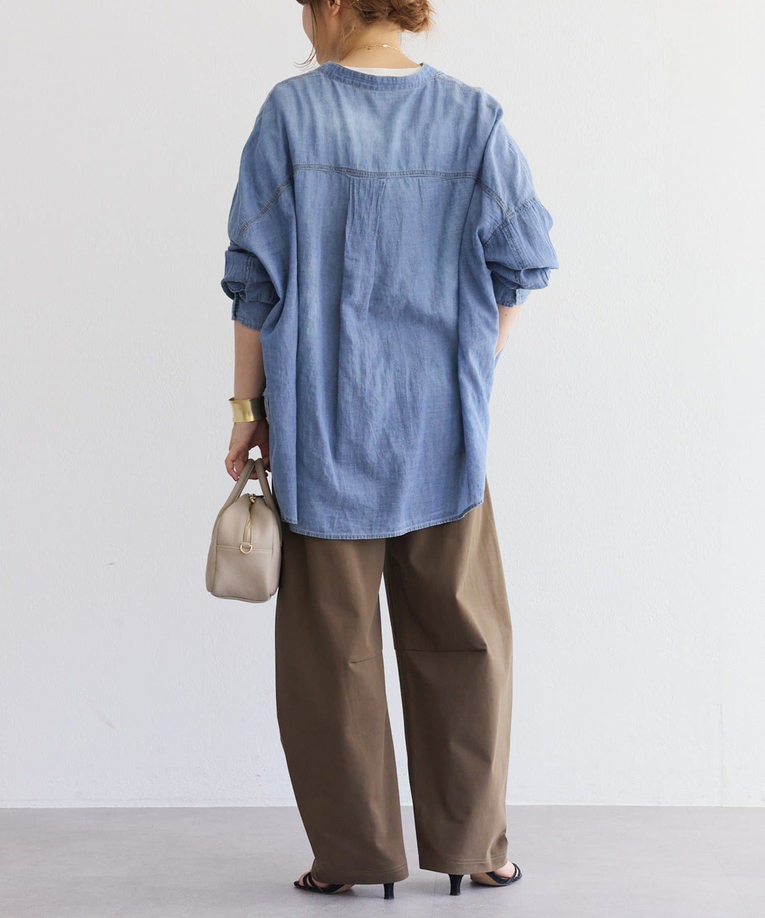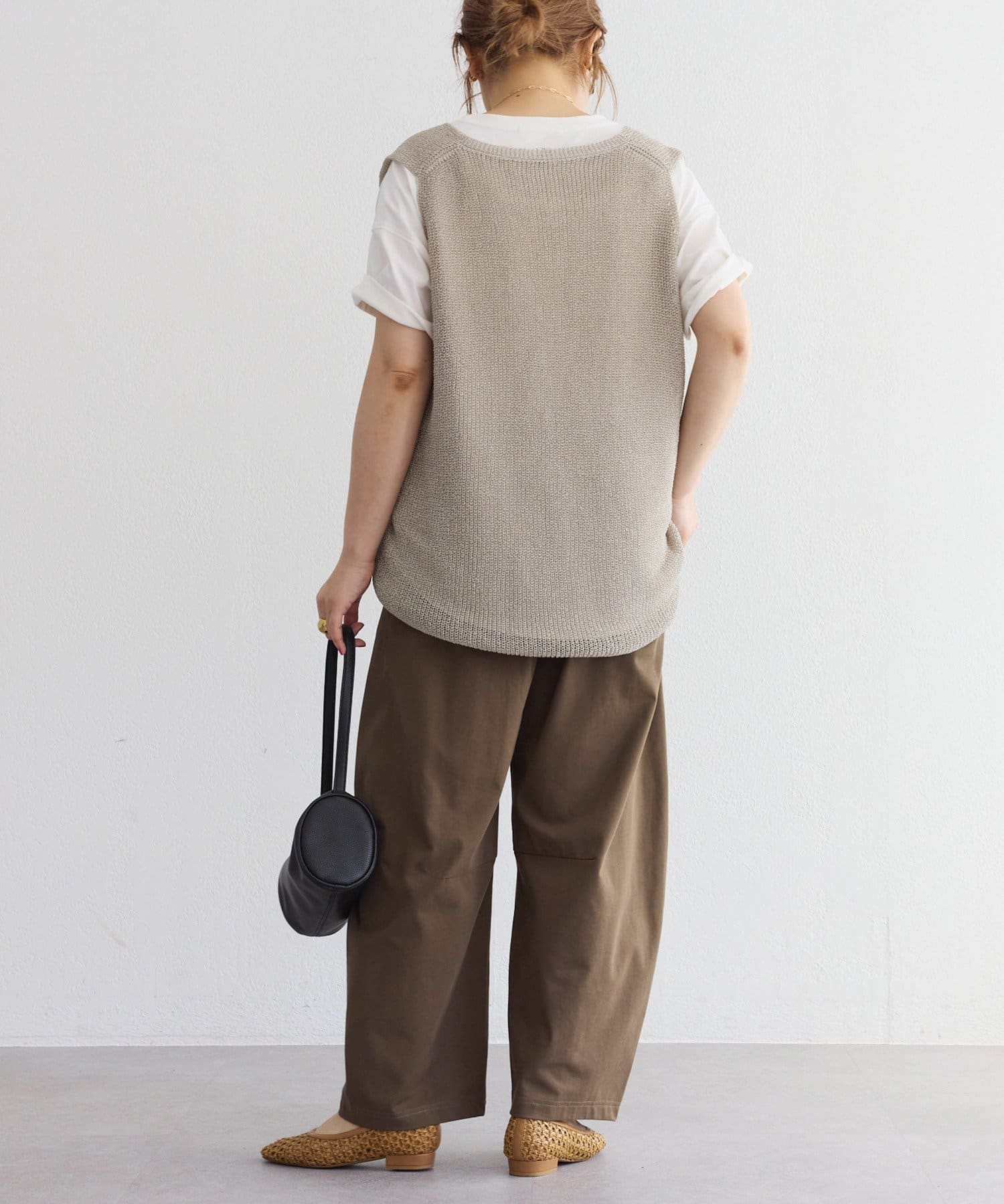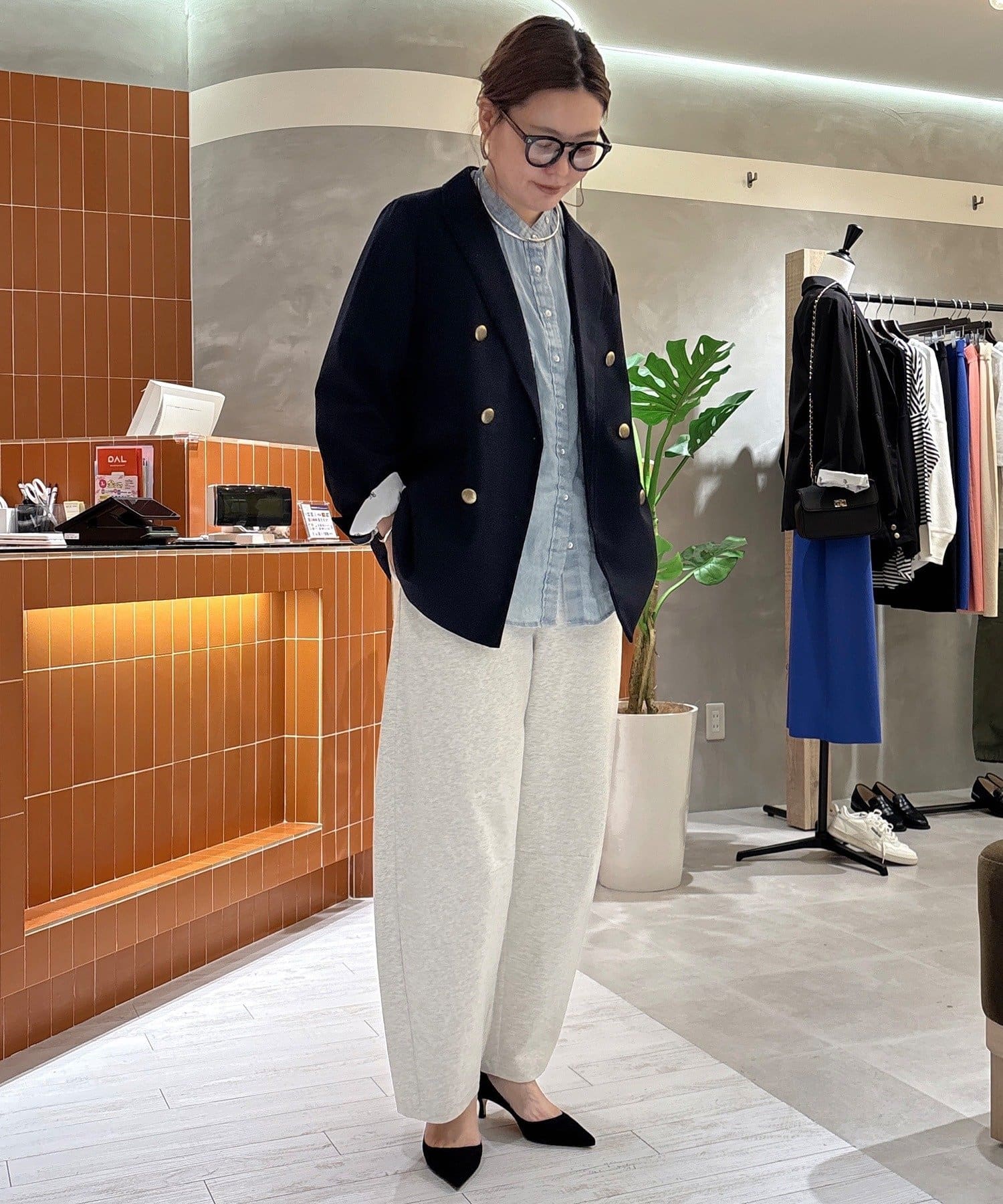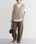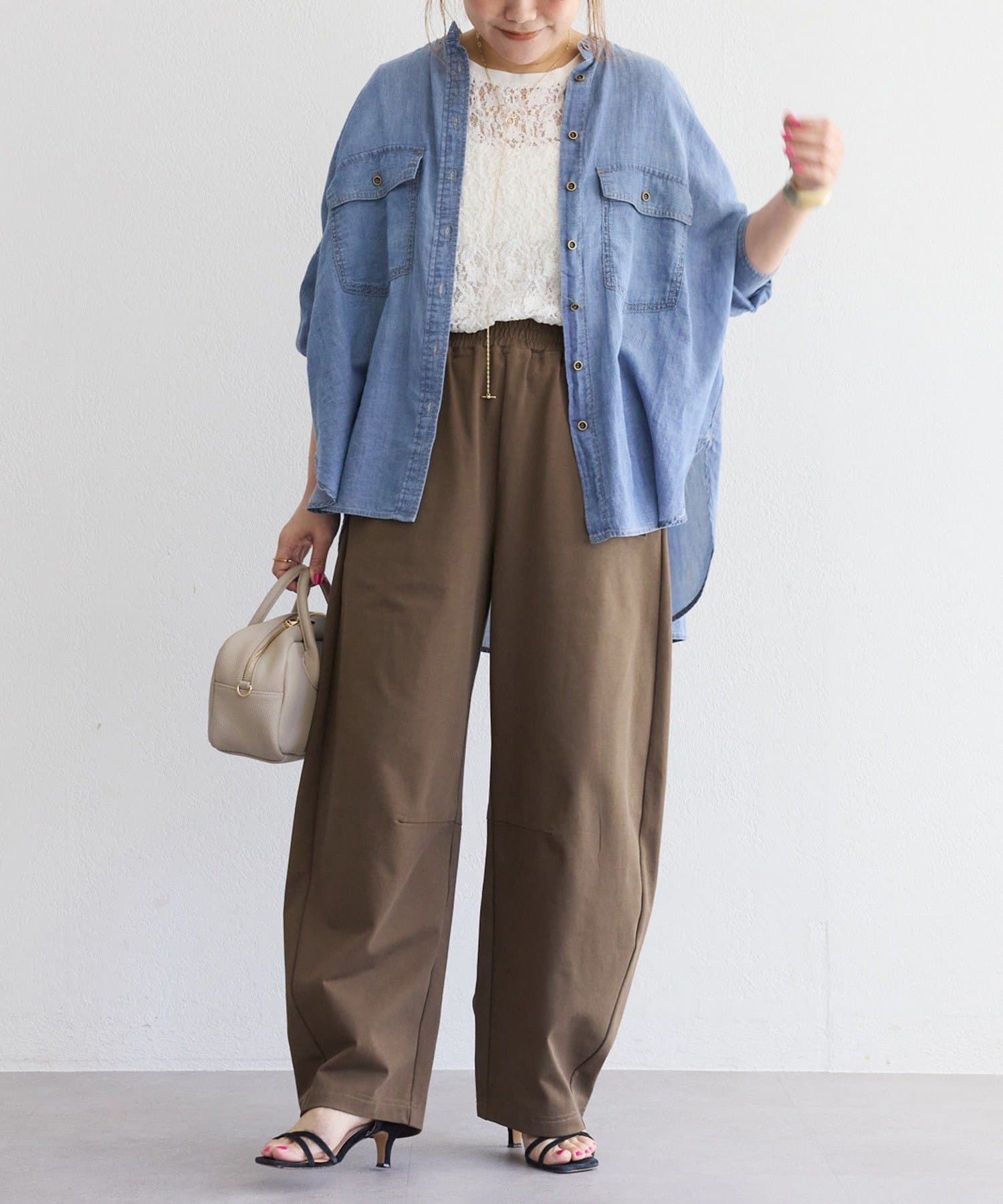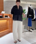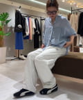 ボリューム感のあるパンツには、インスタイルやショート丈のトップス合わせが好バランス。