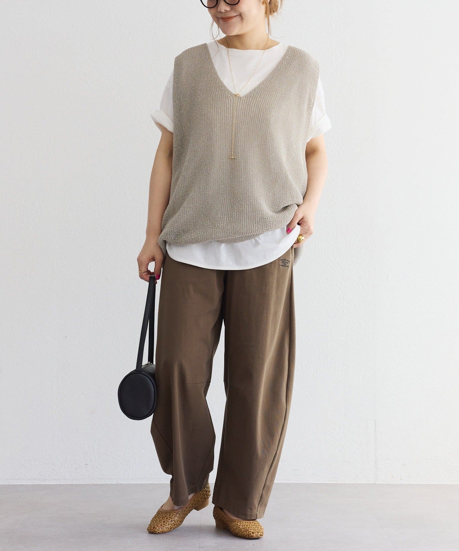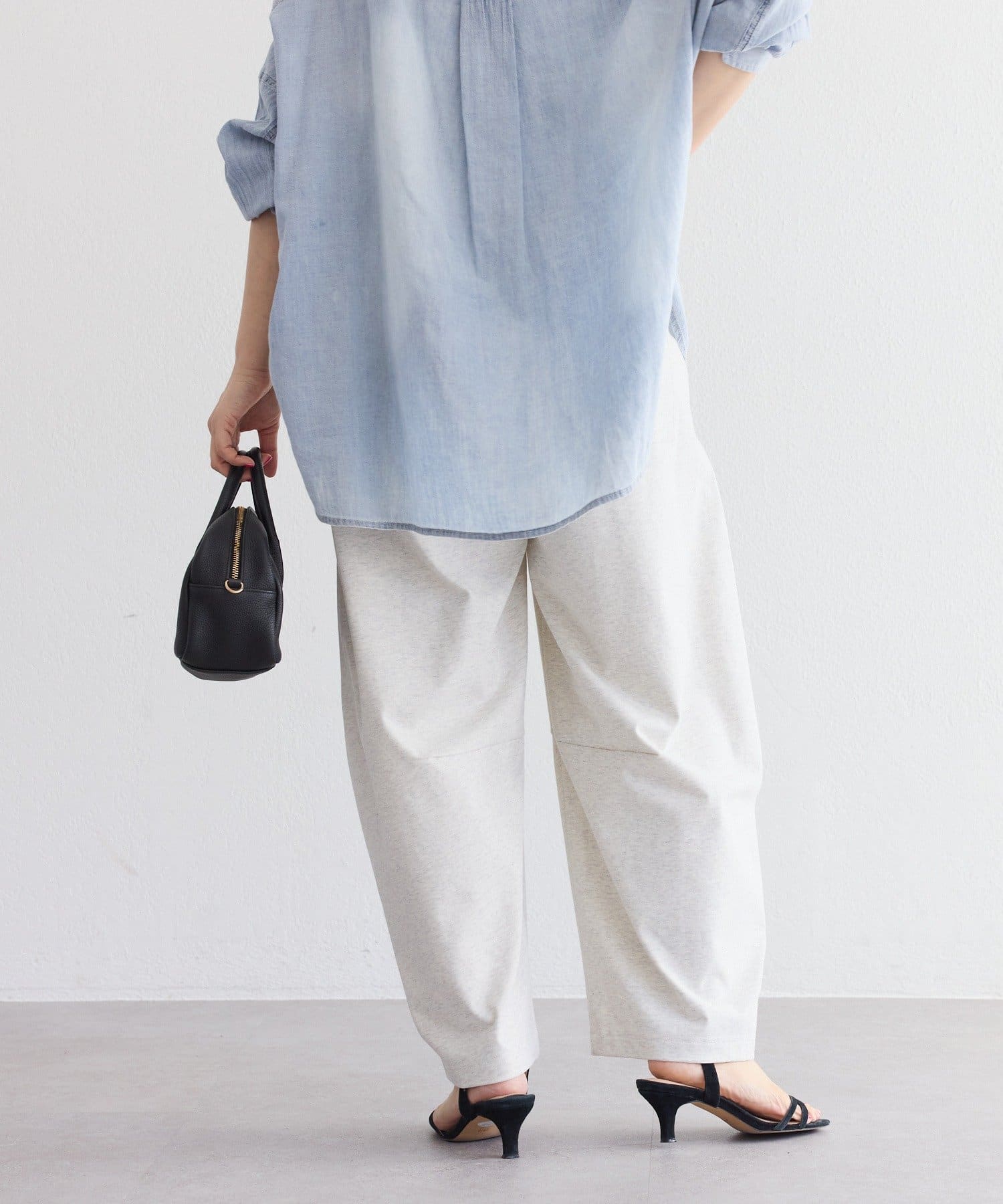 ラフなカットソーパンツながら綺麗見えするディテールを施したボトムスは、