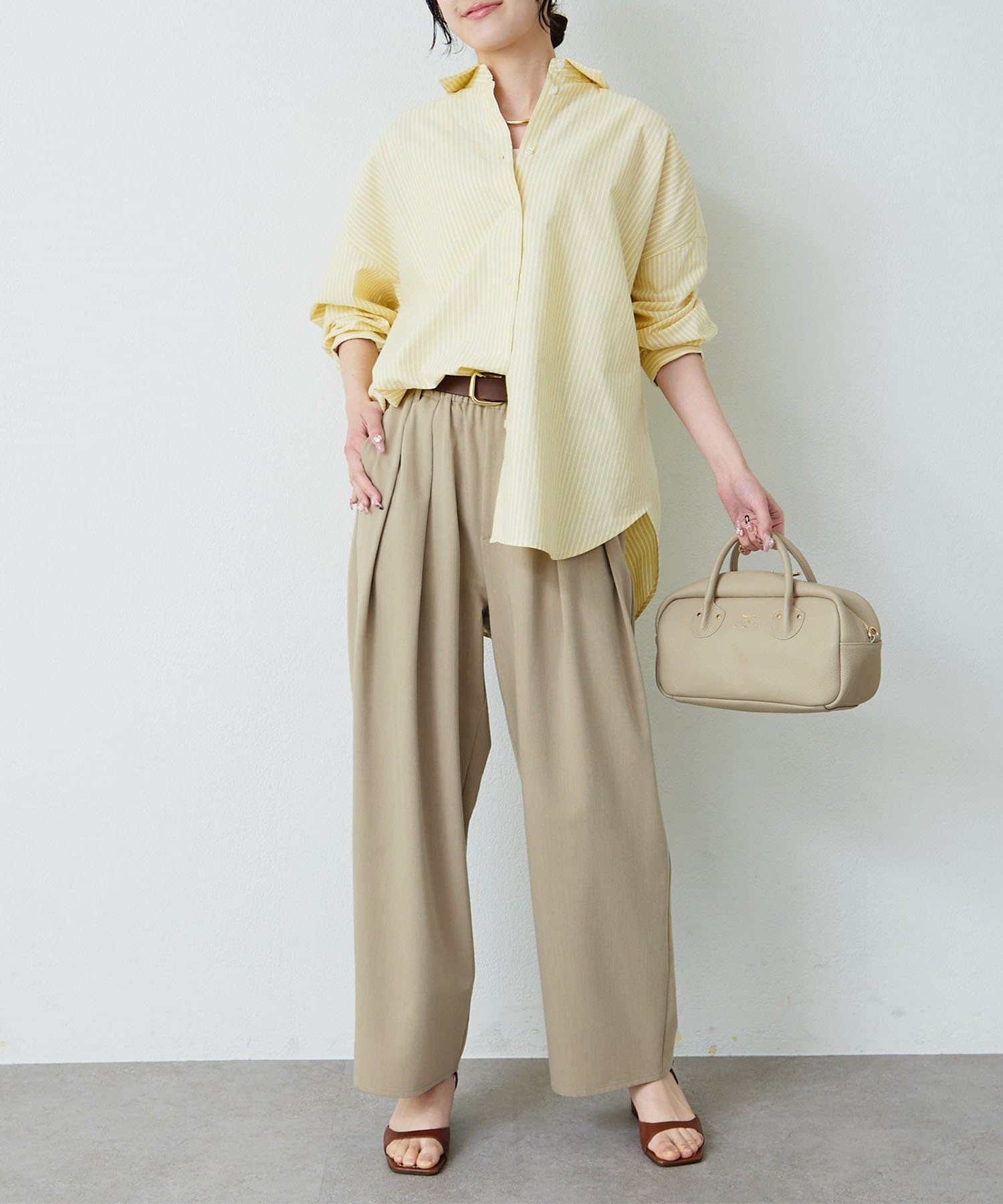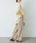 テーラードジャケットのインナーに合わせ、スラックスパンツでオフィスカジュアルにも着まわせます。