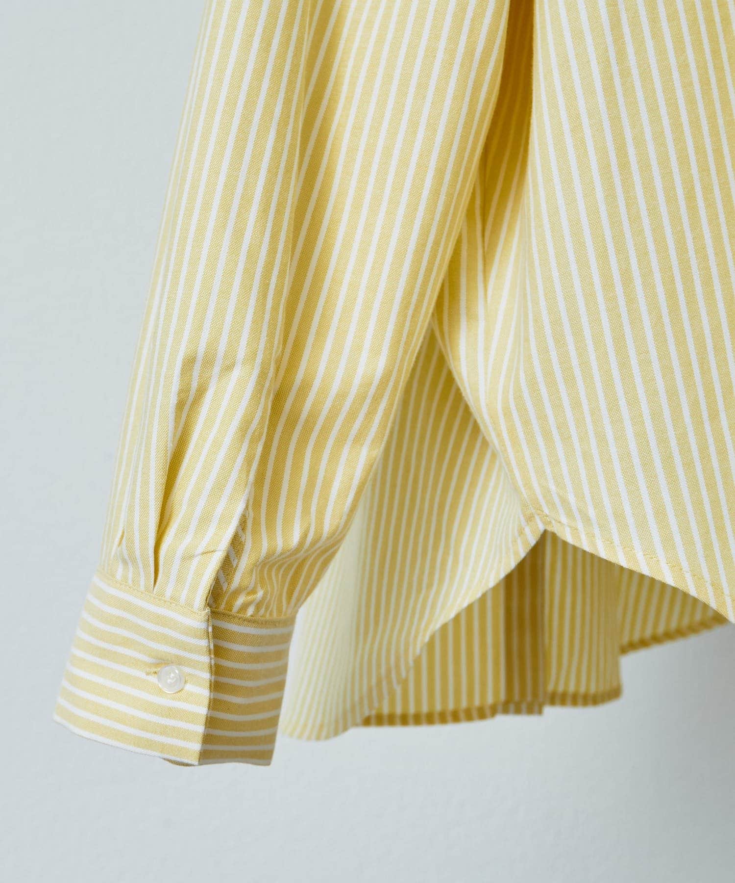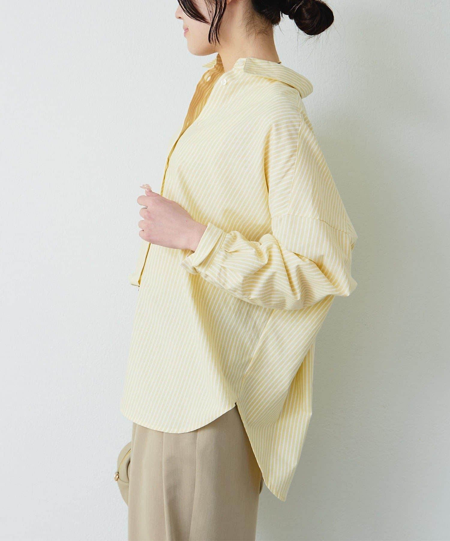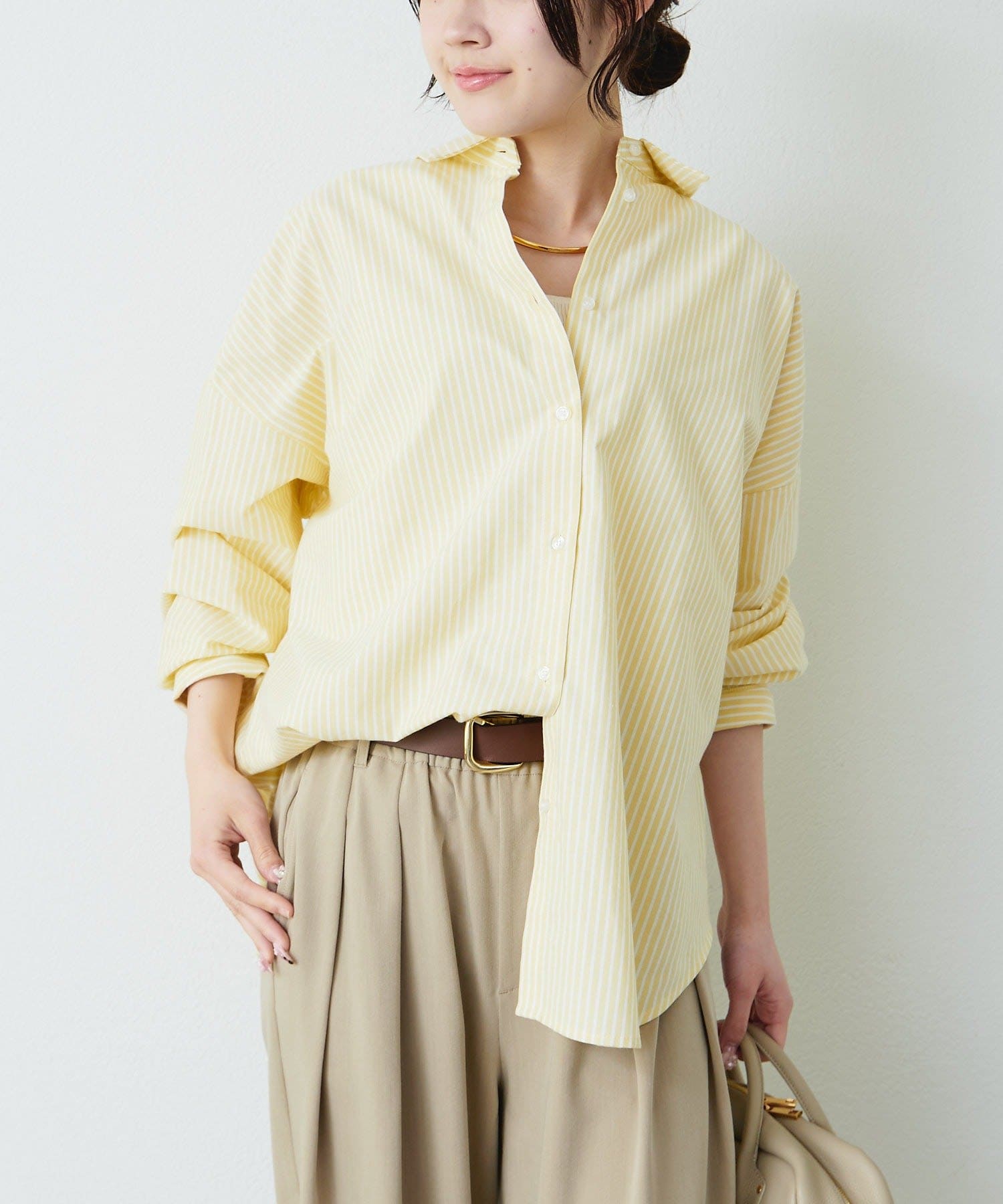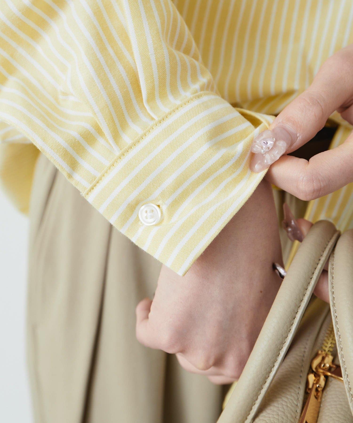 春らしい色合いで、コーディネートに取り入れるだけで気分の上がるストライプシャツ。